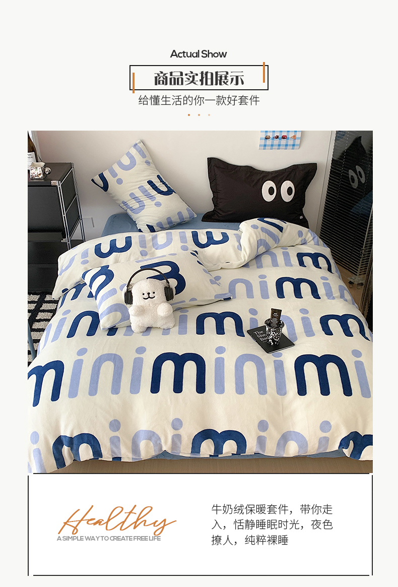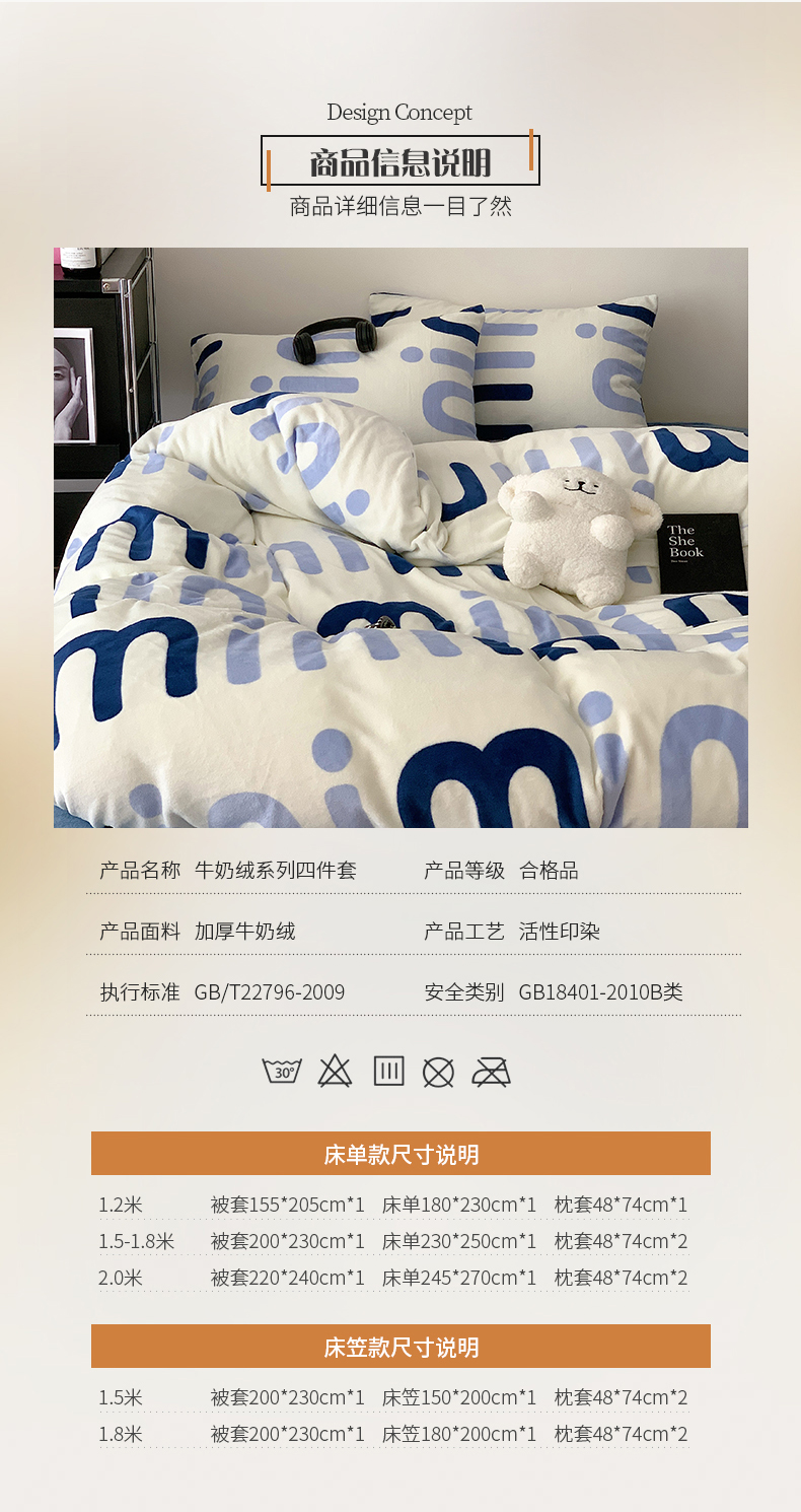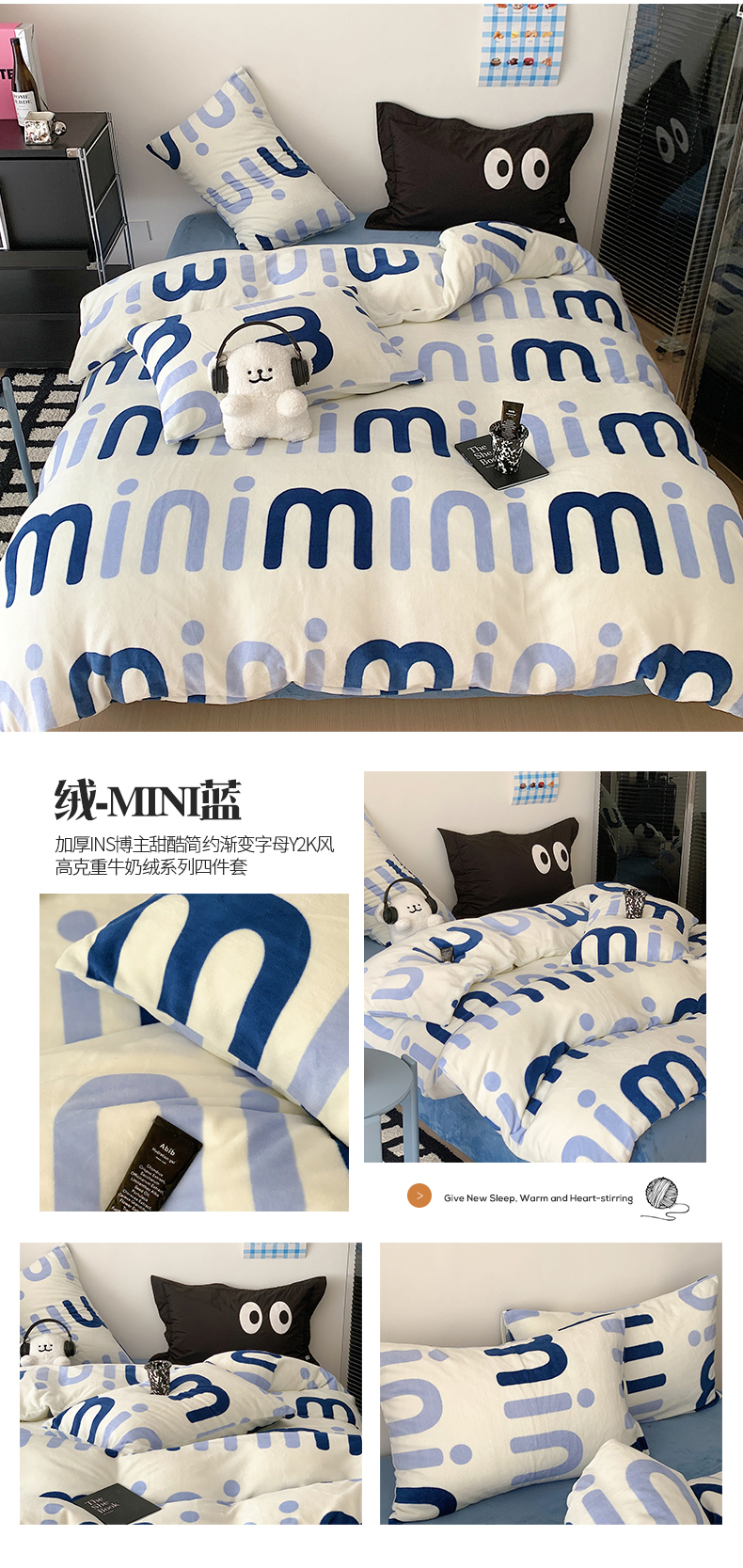 当前位置: 91家纺网 > 商品网购 > 床品套件 > 四件套 > 牛奶绒四件套 > 桃子家居 2023新款ins甜酷渐变字母y2k风高克重牛奶绒四件套 绒-mini蓝