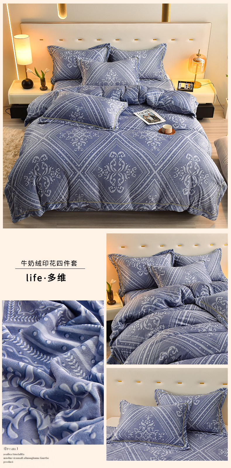 商品名称:同田家纺 2023新款加厚保暖牛奶绒印花四件套 多维