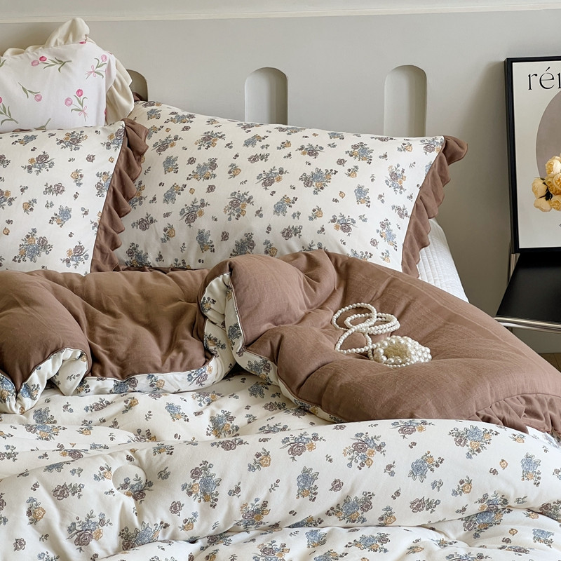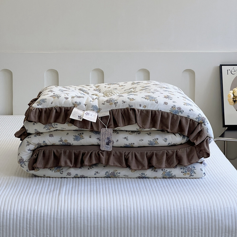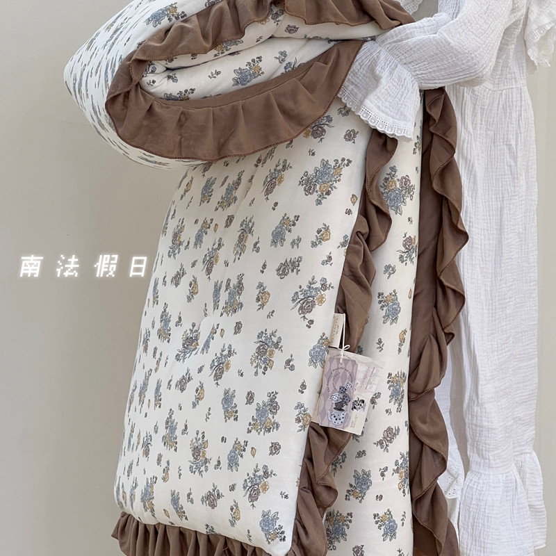 安莱生活 2023秋冬新品有氧双层纱法式一体蚕丝被抗菌被 南法假日
