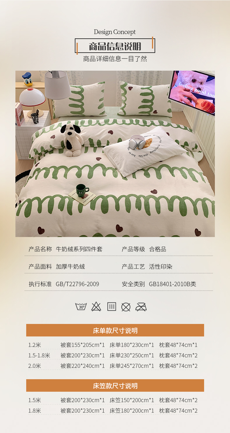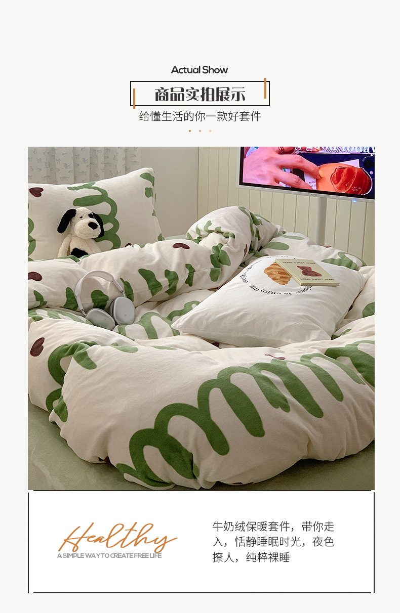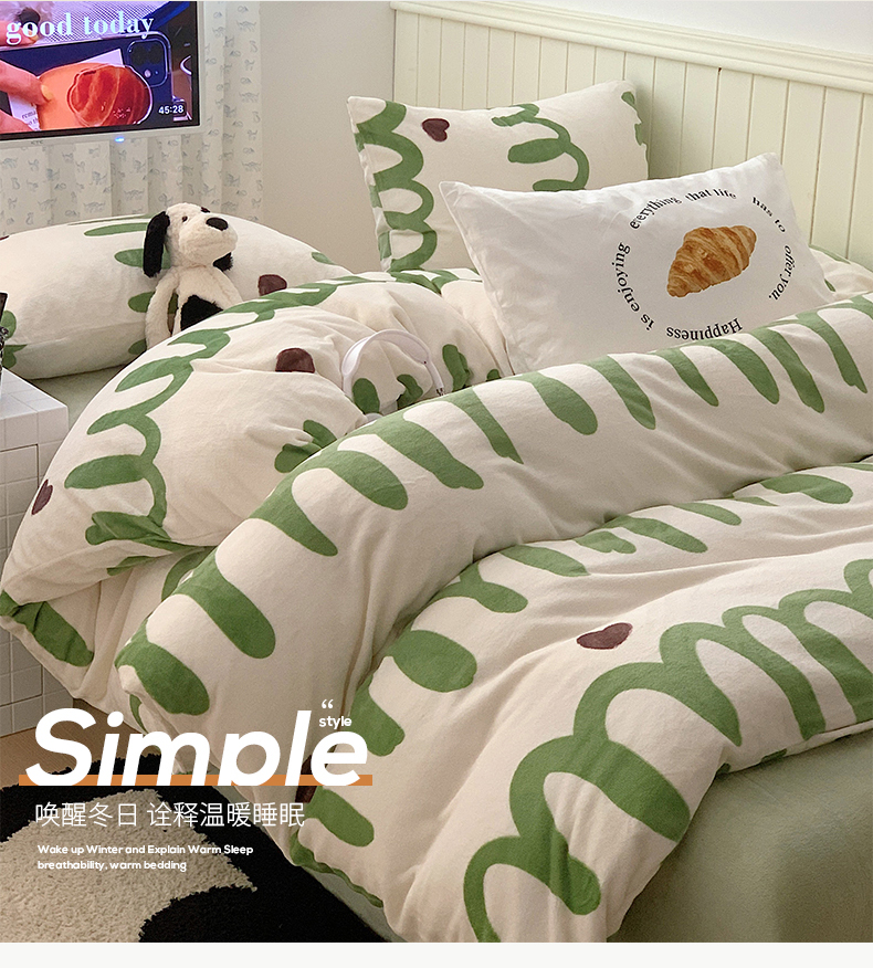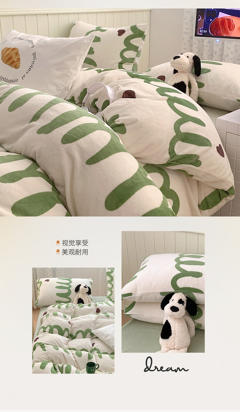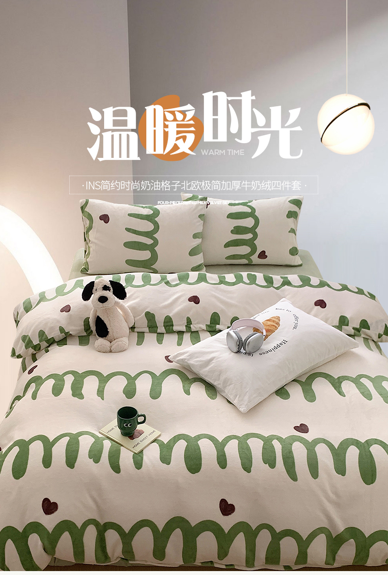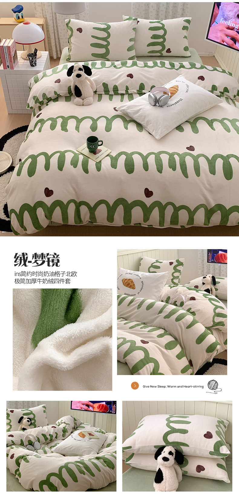 商品名称:桃子家居 2023新款ins简约时尚奶油格子北欧极简加厚牛奶绒四件套 梦镜