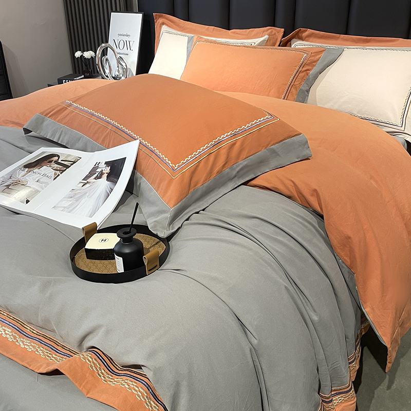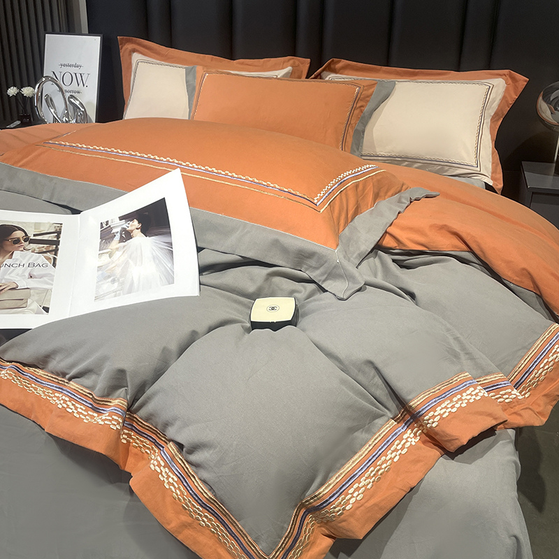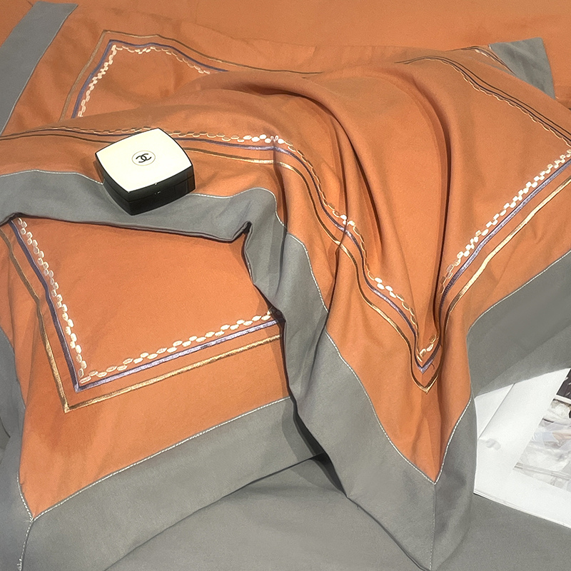 (总)懒猫家纺 2025新款A类贝壳绣纯色海獭绒四件套,橘子红,落霞紫,玫瑰粉,拿铁咖,暖茶棕,清水绿,柔雾灰,桃喜粉,杏仁白
