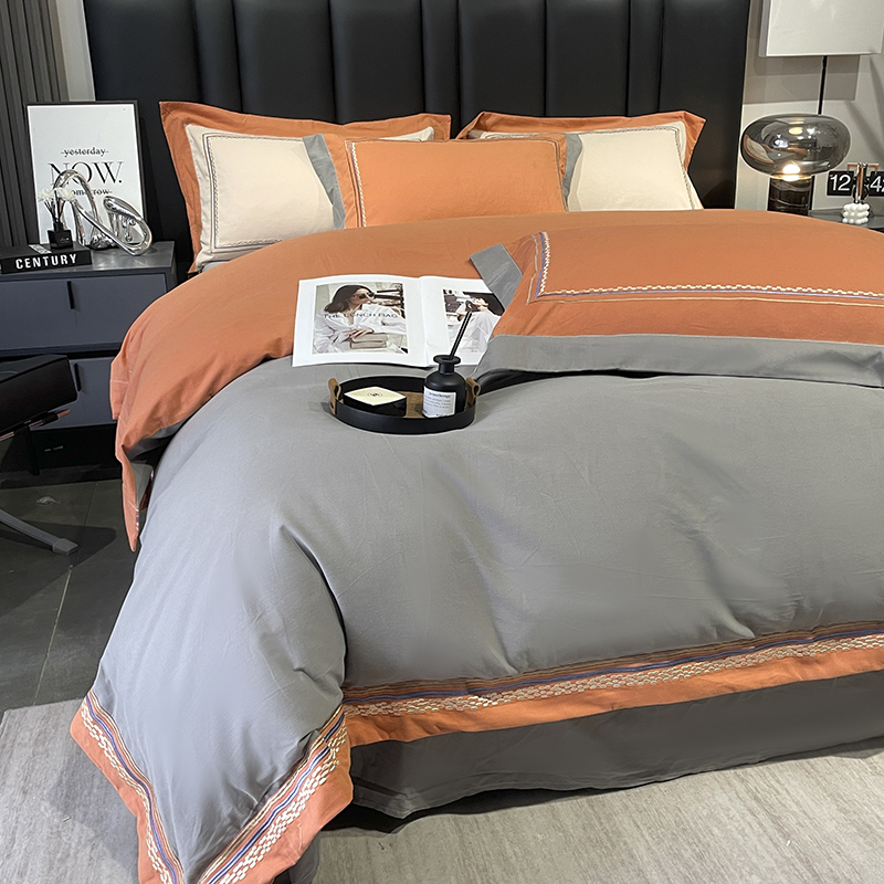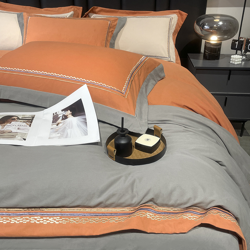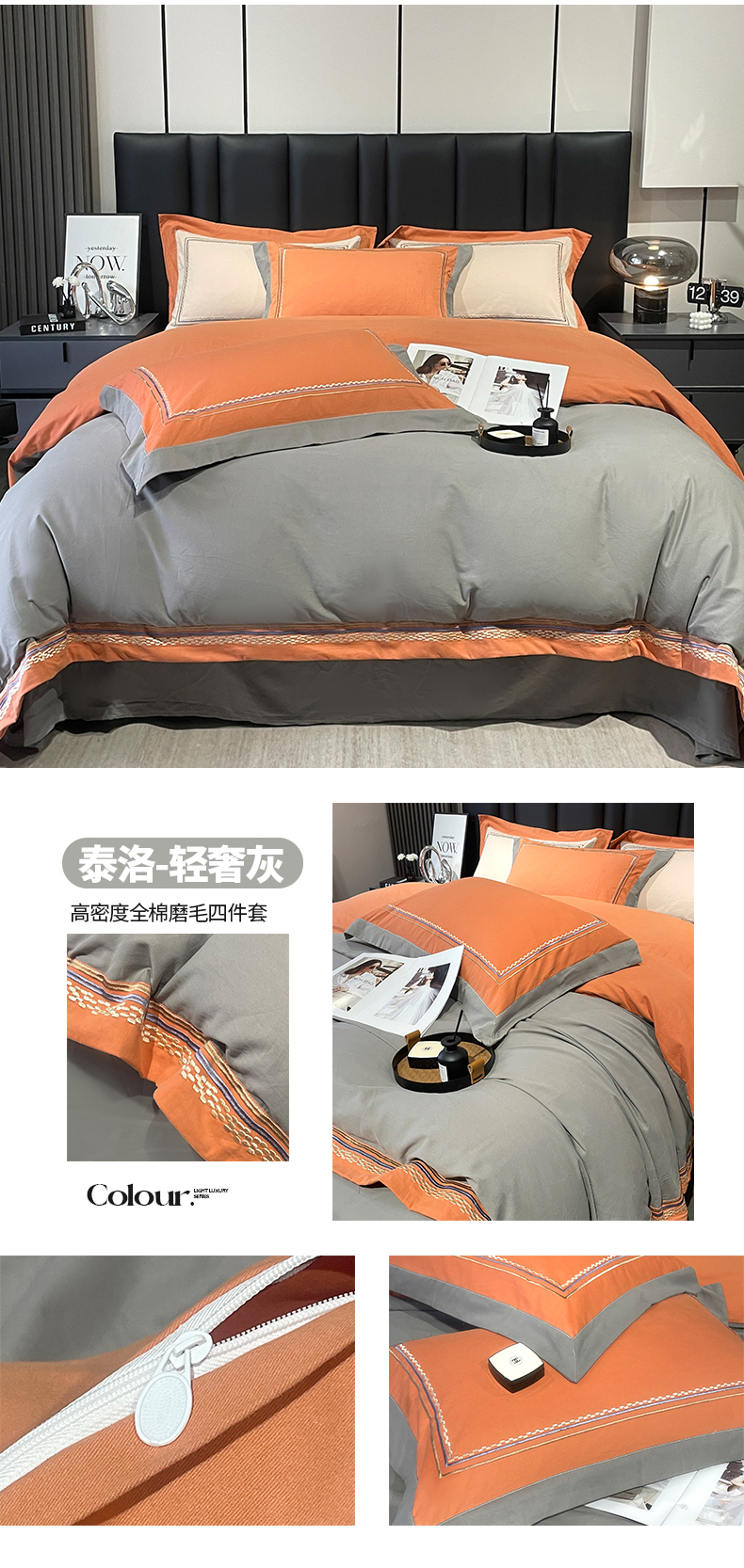 商品名称:懒猫 2024新款高精密全棉磨毛绣花四件套 泰洛-轻奢灰