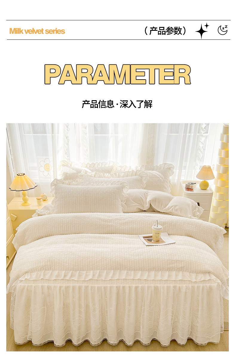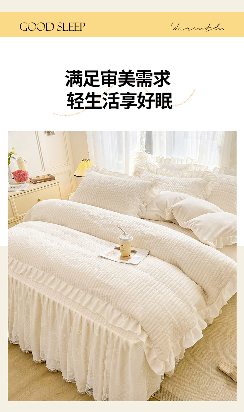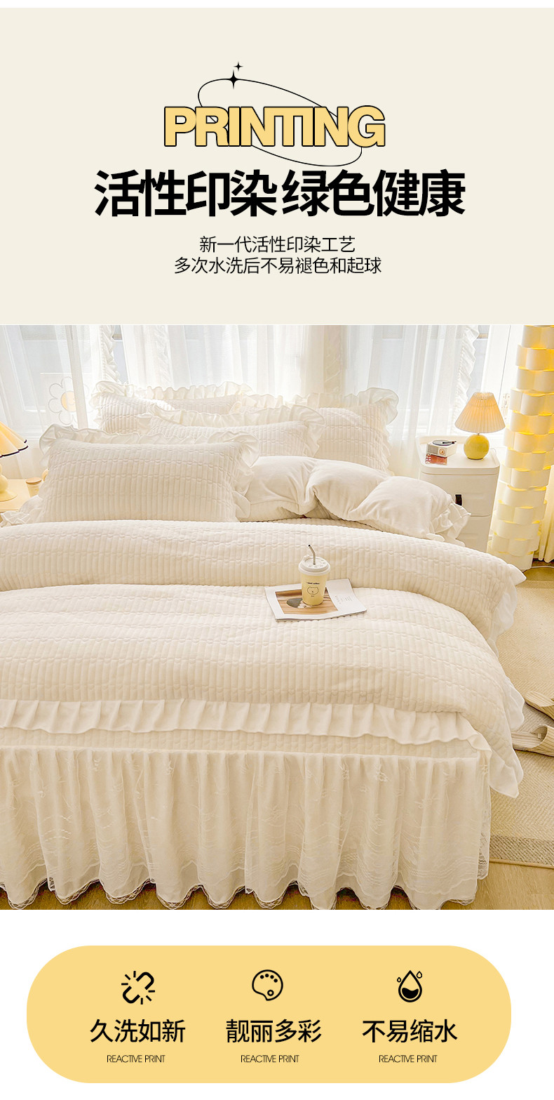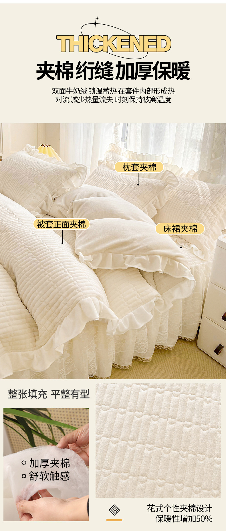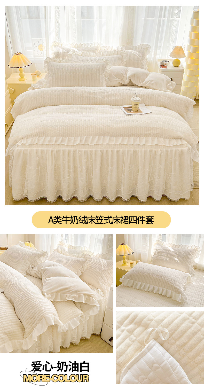 当前位置: 91家纺网 > 商品网购 > 床品套件 > 四件套 > 牛奶绒四件套 > 宜凡家纺 2023新款牛奶绒印花夹棉被套床笠式床裙四件套 爱心-奶油白