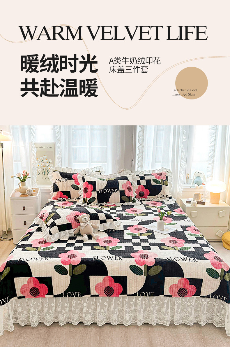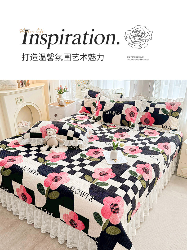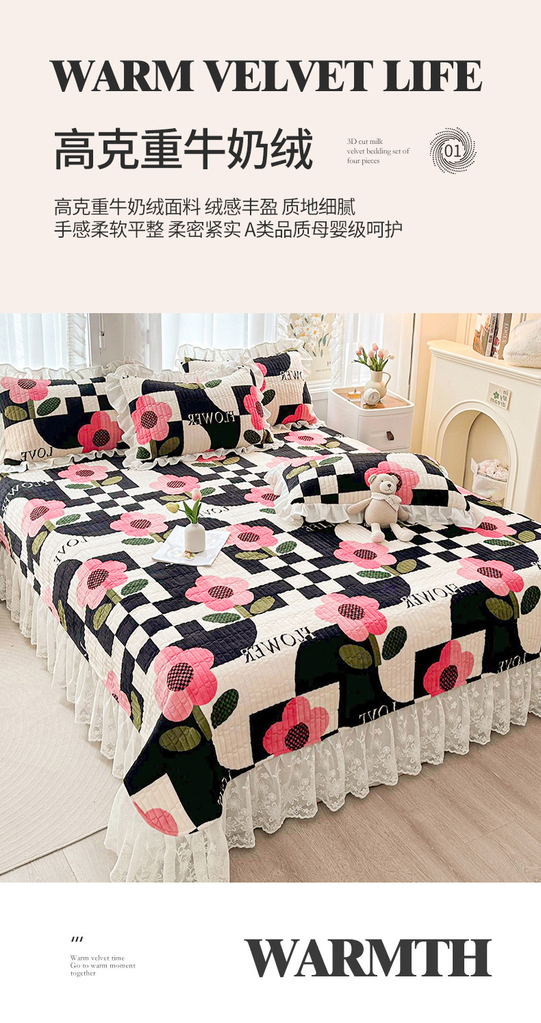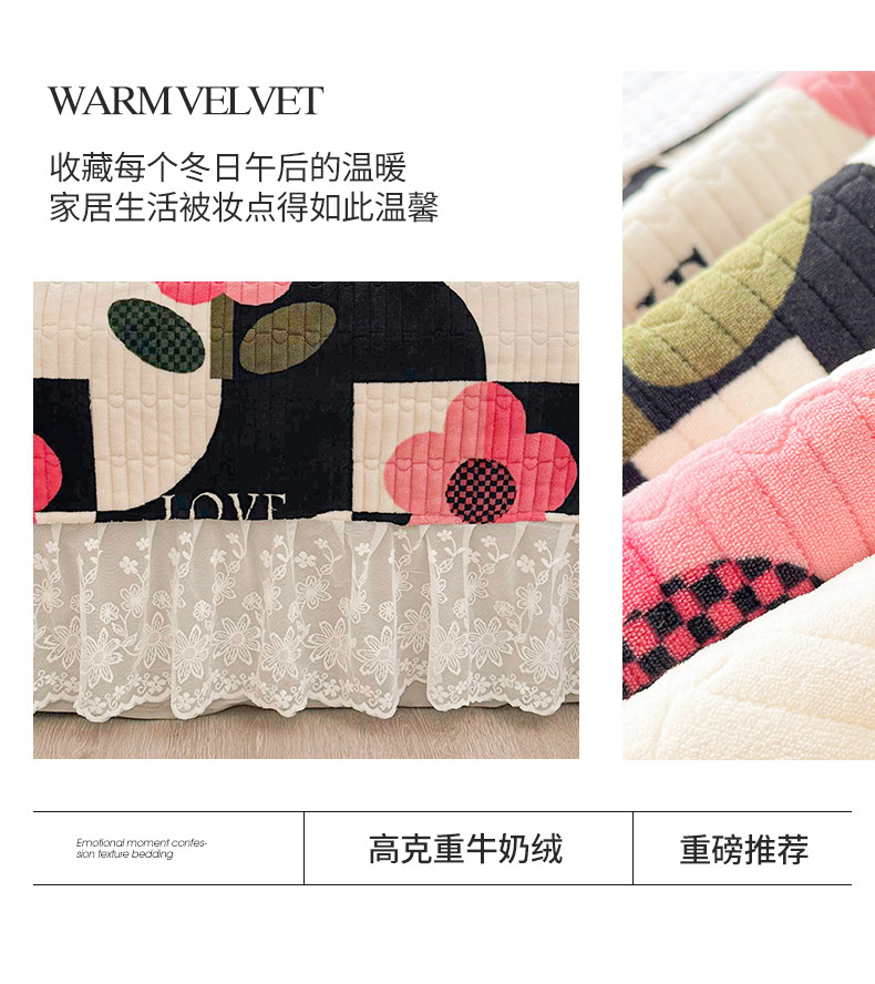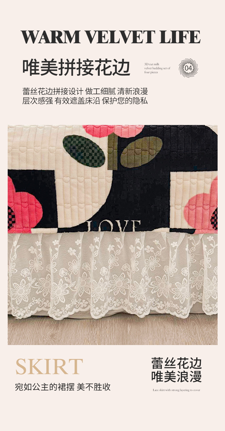 (总)宜凡家纺 2025新款兔绒提花牛奶绒夹棉床裙四件套,爱心 少女粉,爱心 粉紫,爱心 驼色,蝶舞 大红,蝶舞 米色,蝶舞 浅紫,蝶舞 玉色,简爱 苍青,简爱 豆沙紫,简爱 玉色,樱桃 苍青,樱桃 豆沙紫,樱桃 奶油白