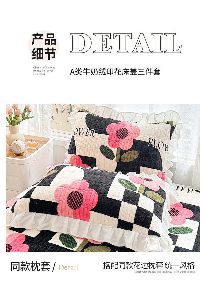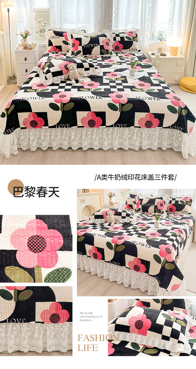 商品名称:宜凡家纺 2023新款牛奶绒印花夹棉被套床盖三件套 巴黎春天