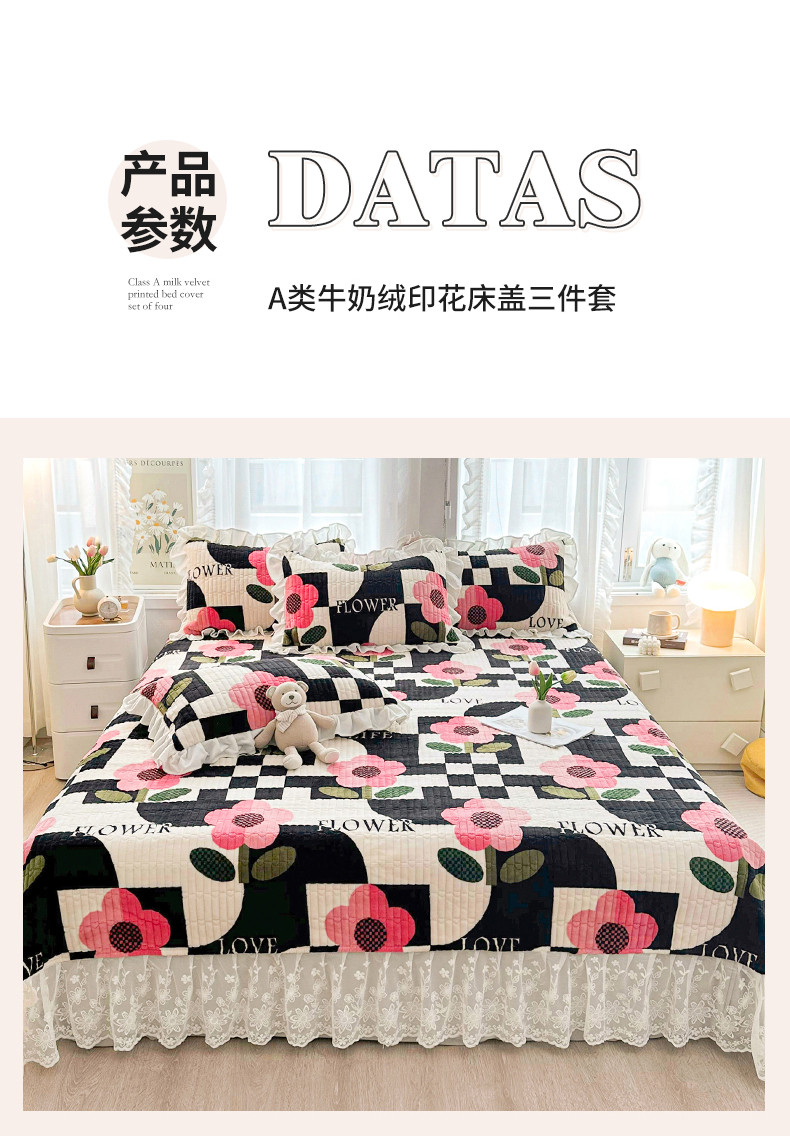 宜凡家纺 2023新款牛奶绒印花夹棉被套床盖三件套 巴黎春天