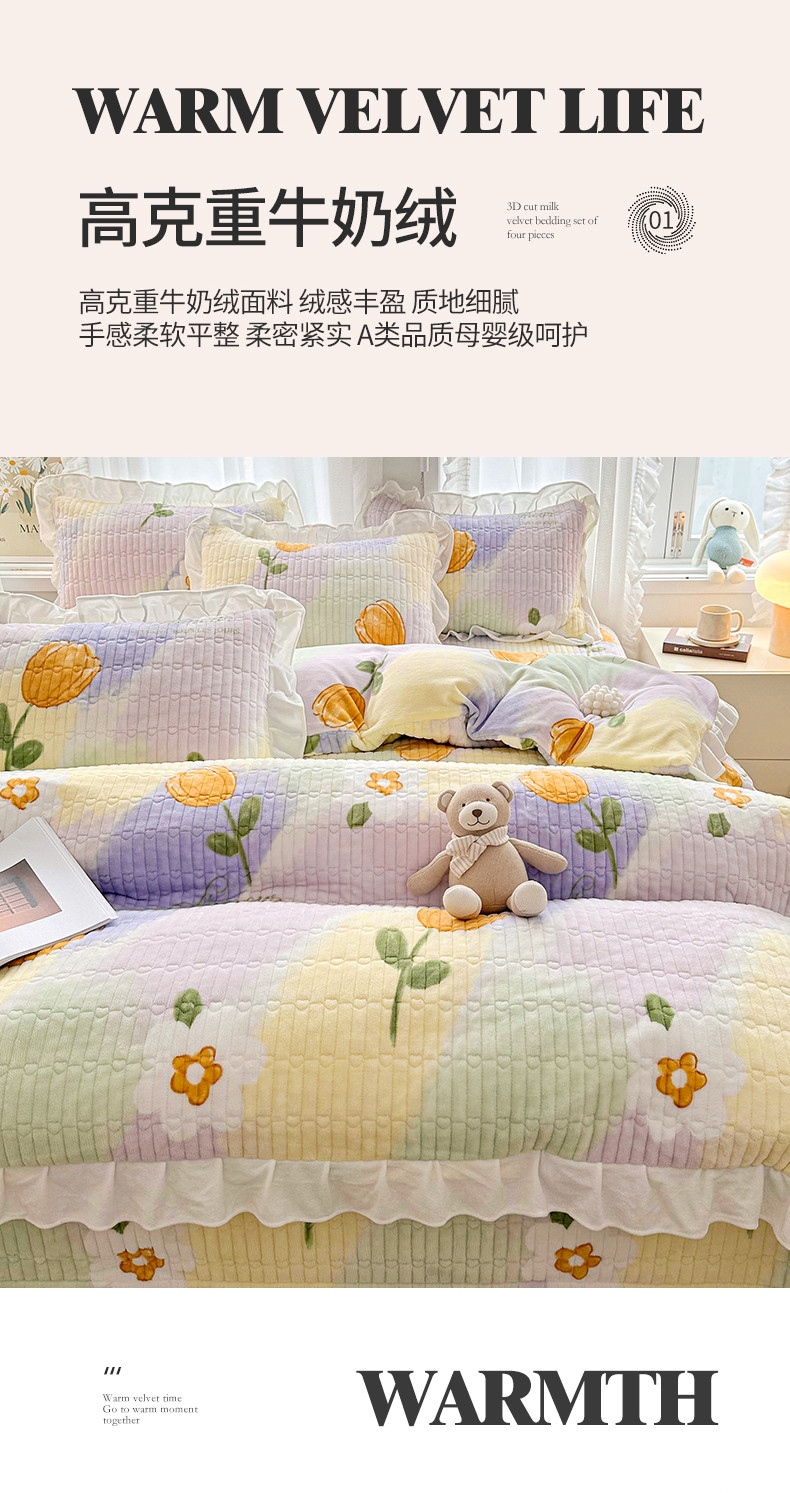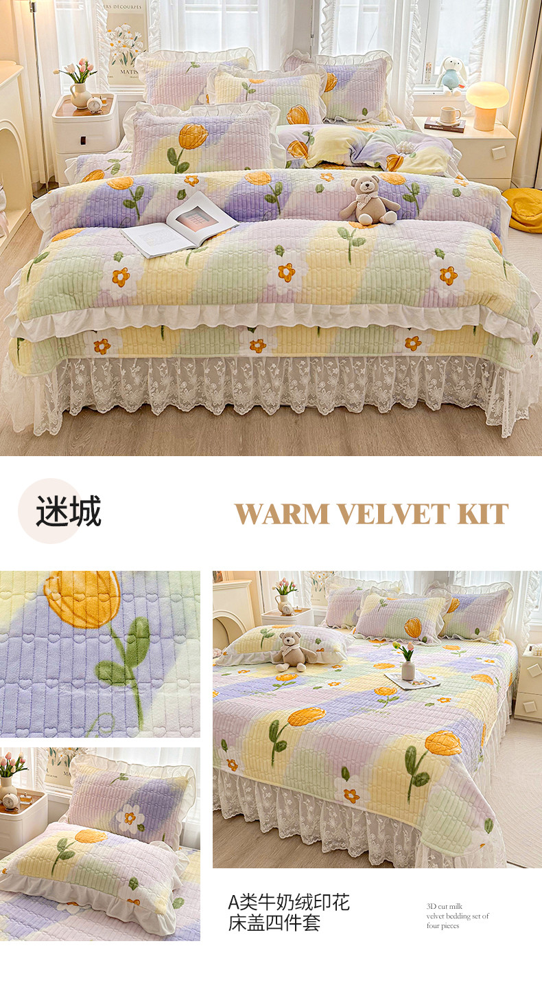 当前位置: 91家纺网 > 商品网购 > 床品套件 > 四件套 > 牛奶绒四件套 > 宜凡家纺 2023新款牛奶绒印花夹棉被套床盖四件套 迷城