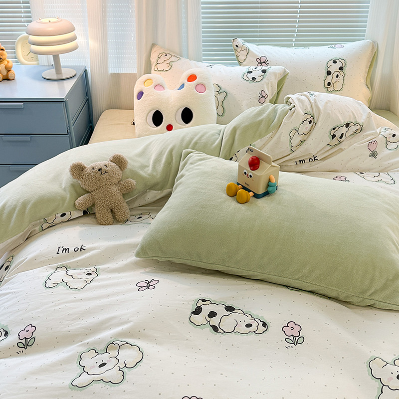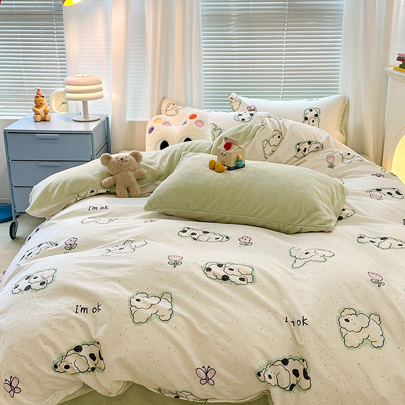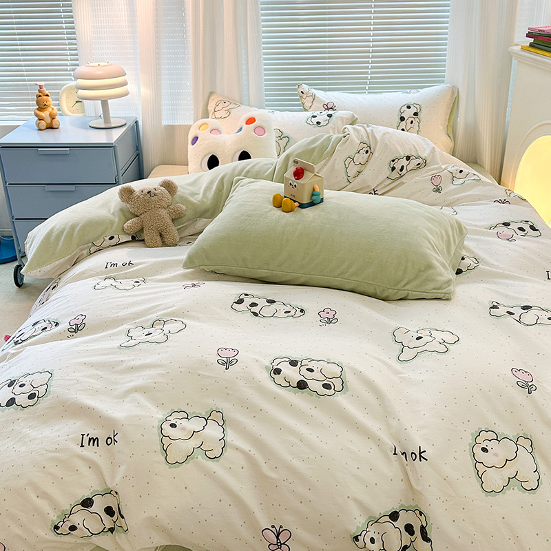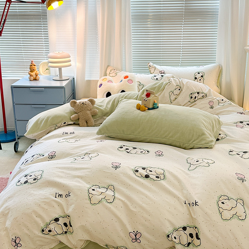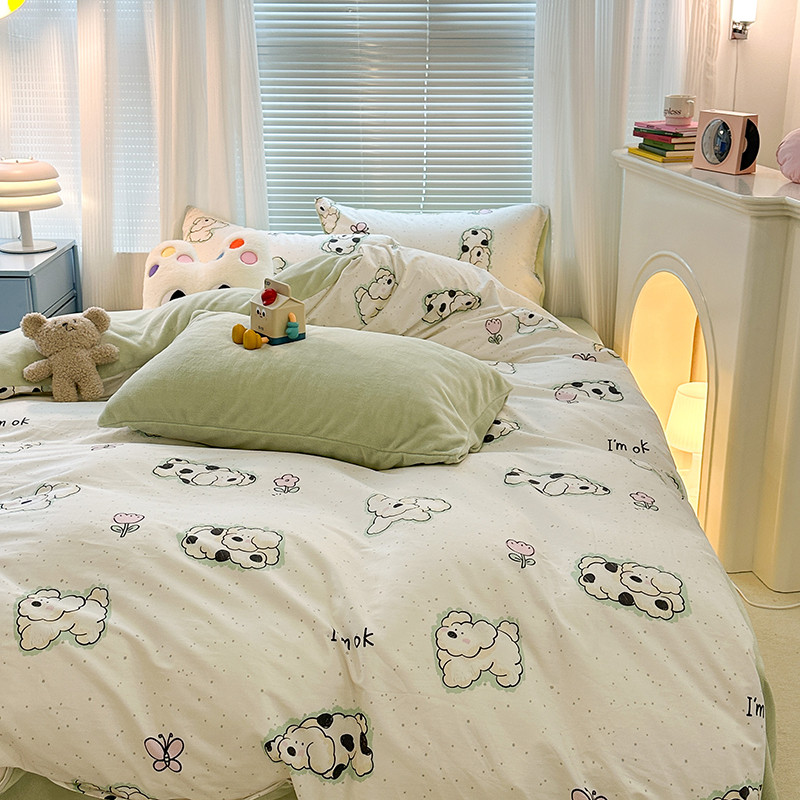 昔可 2023新款亲肤柔软棉加绒四件套 斑点饼干狗