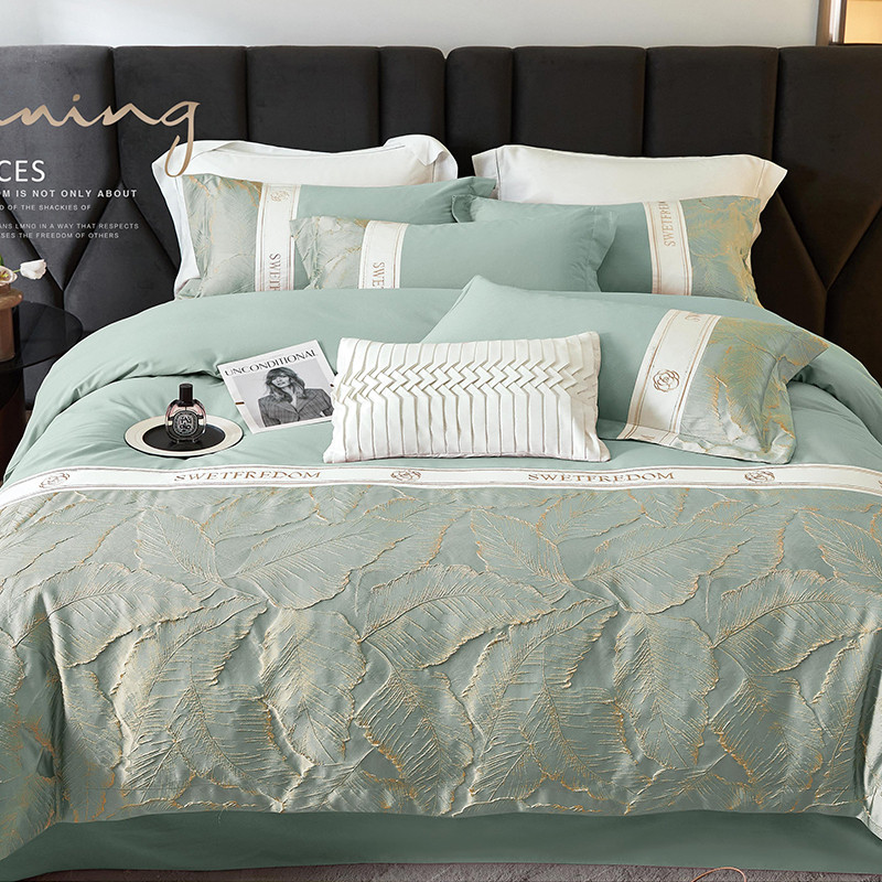 惠居家 2023新款浮雕全棉长绒棉磨毛刺绣四件套-诺曼 轻羽(浅绿)