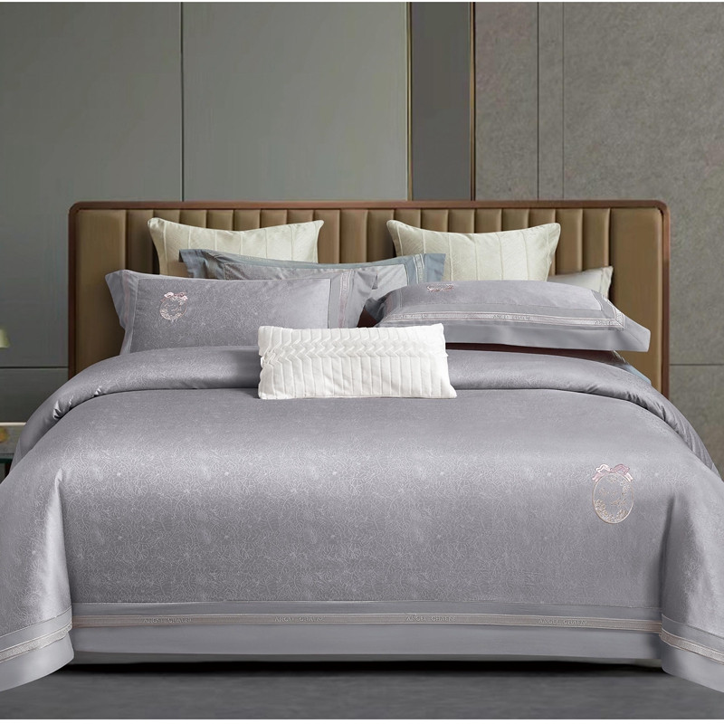 (总)惠居家 2023新款120支长绒棉刺绣四件套希曼系列,薄荷绿,宾利兰,豆沙,灰色