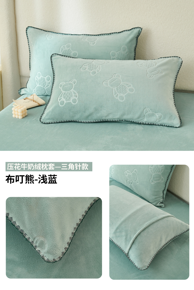 21度C 2023新款布叮熊云朵压花绒包边三角针枕套 布叮熊三角针浅蓝