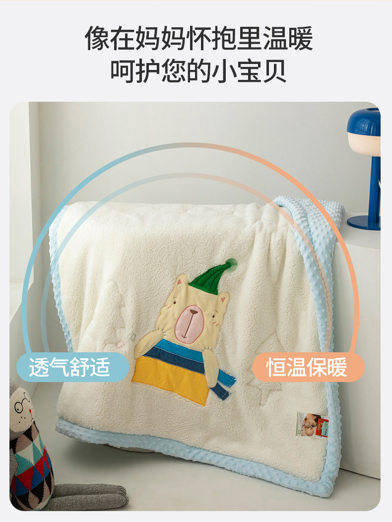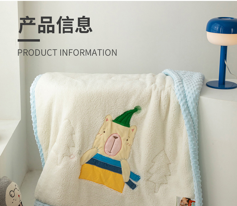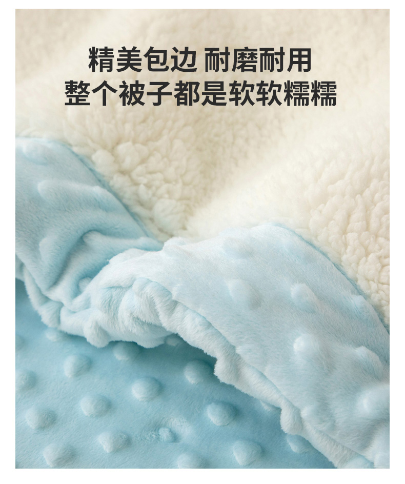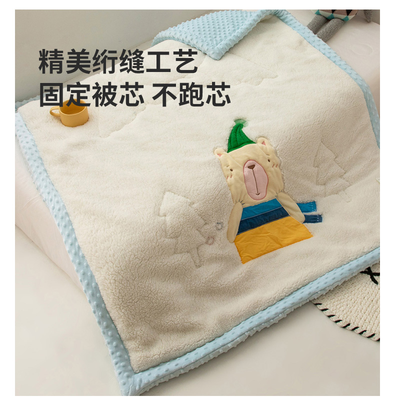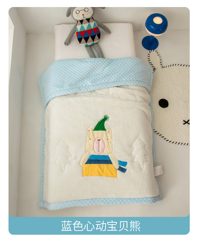 商品名称:喜多兔儿童家纺 2023新款羊羔绒3D抗菌豆豆绒毯 蓝色心动宝贝熊