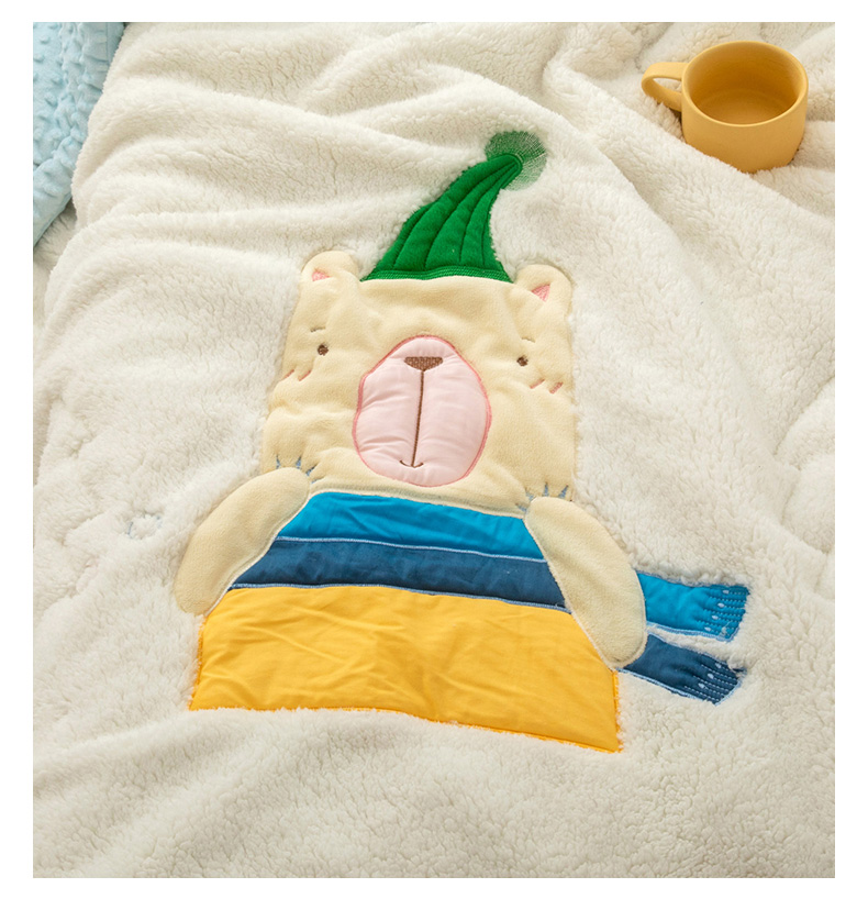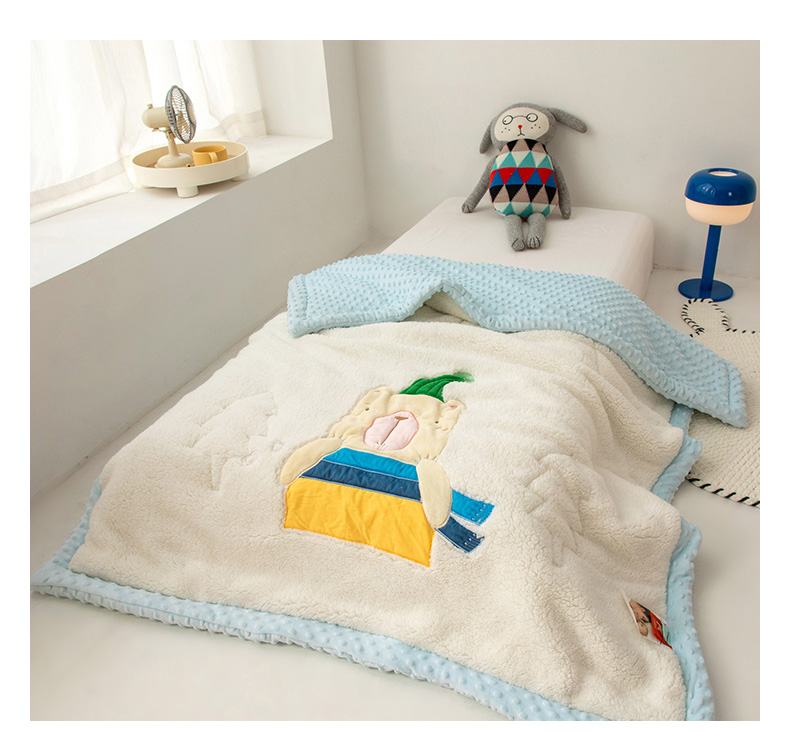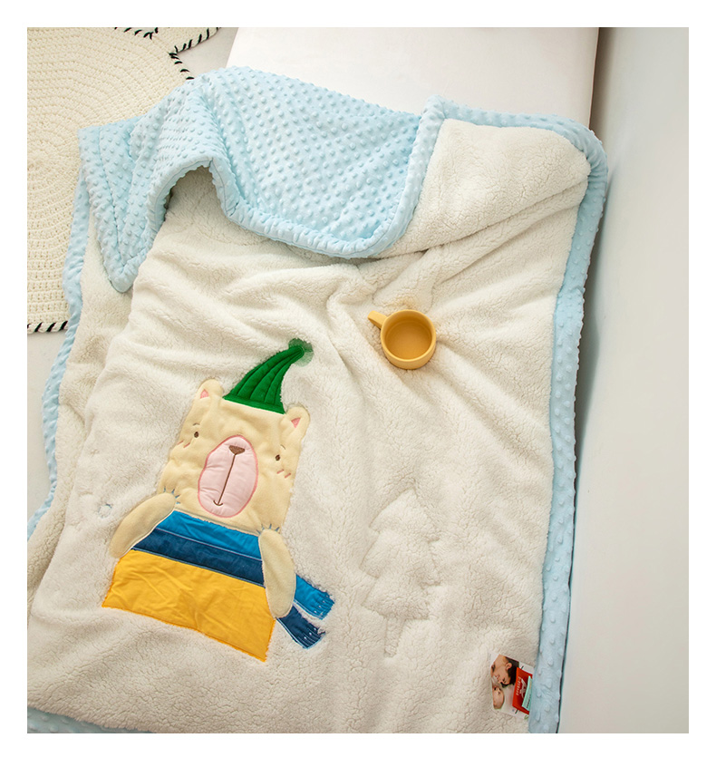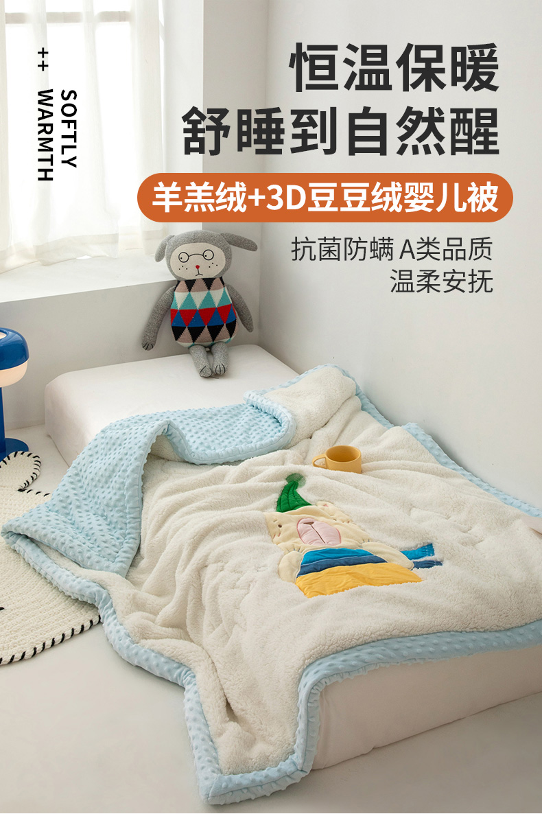商品名称:喜多兔儿童家纺 2023新款羊羔绒3D抗菌豆豆绒毯 蓝色心动宝贝熊