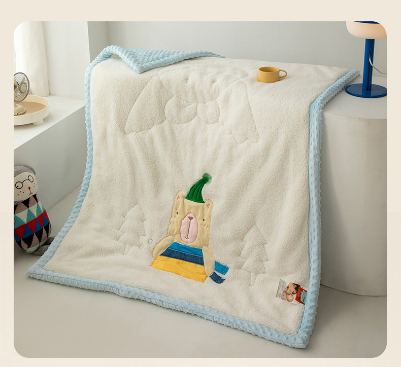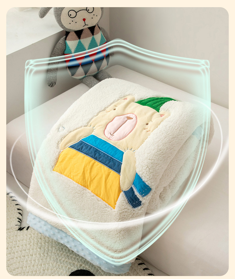 喜多兔儿童家纺 2023新款羊羔绒3D抗菌豆豆绒毯 蓝色心动宝贝熊