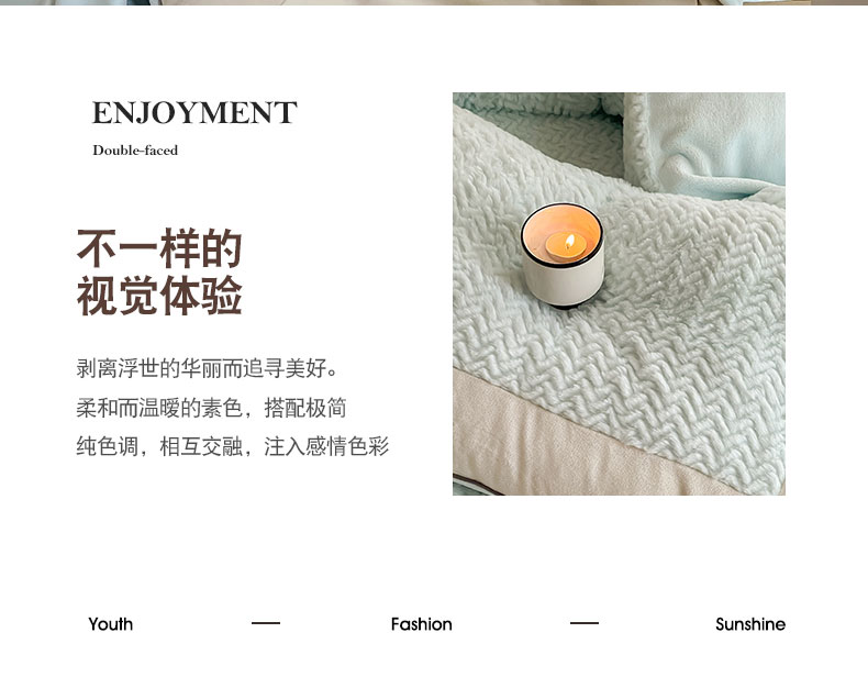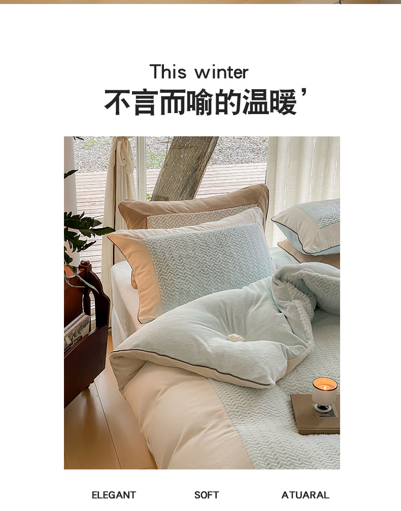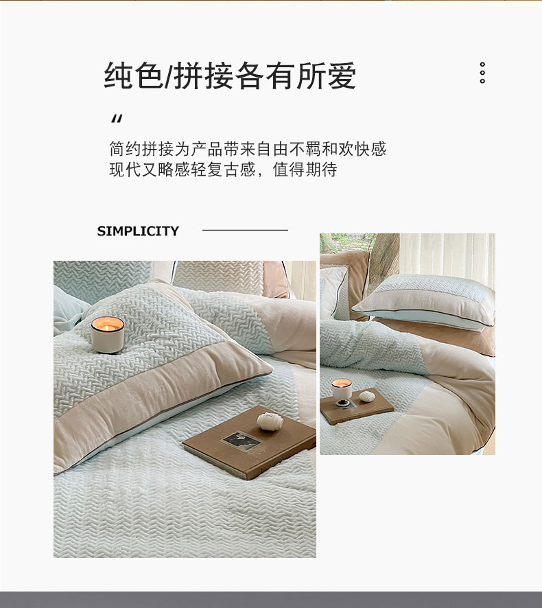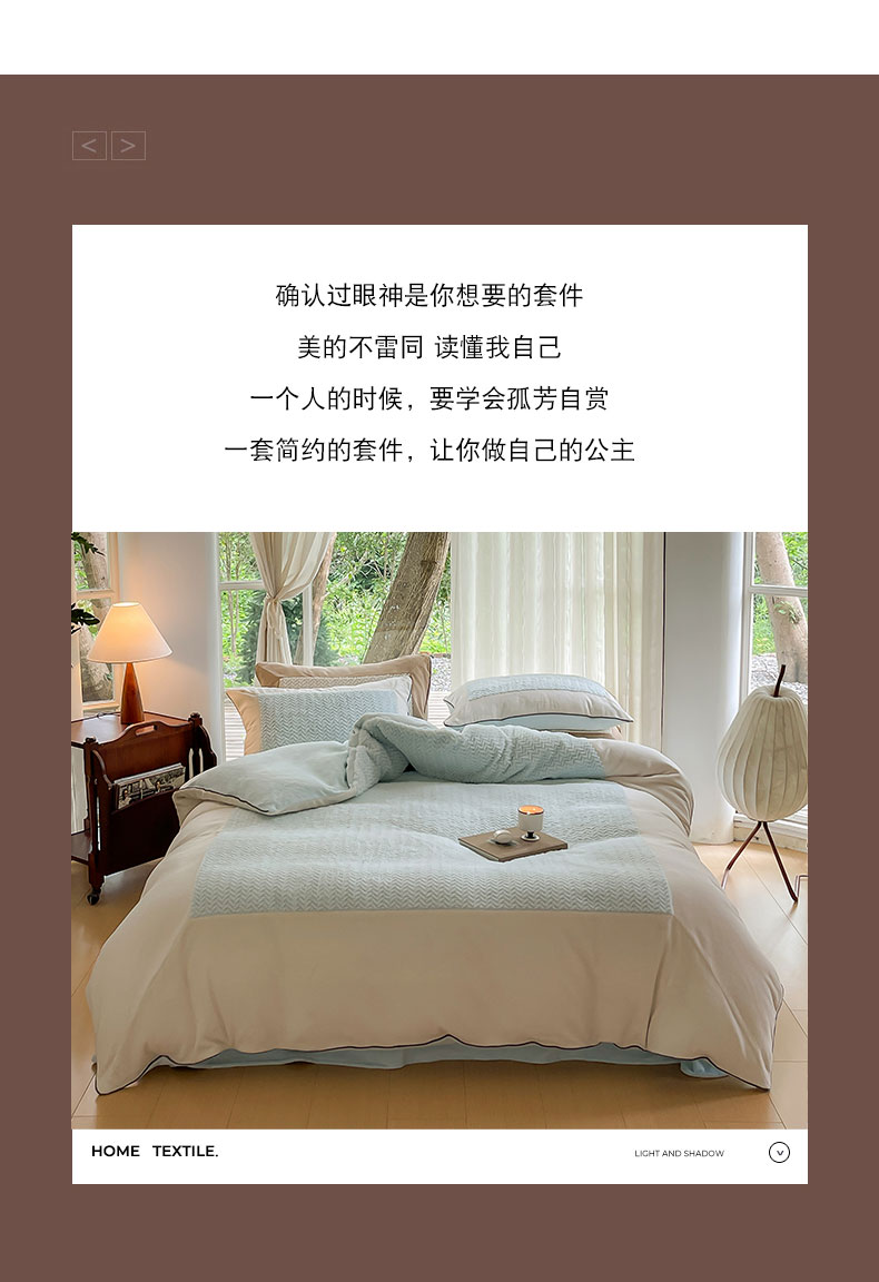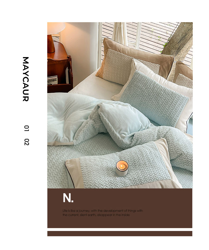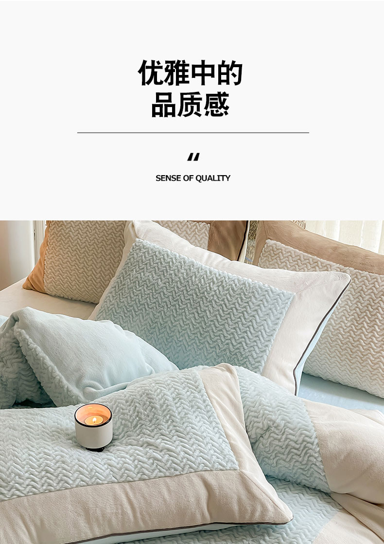 商品名称:FOR TWO家纺 2023新款兔毛拼接嵌线系列四件套 焦糖-浅蓝