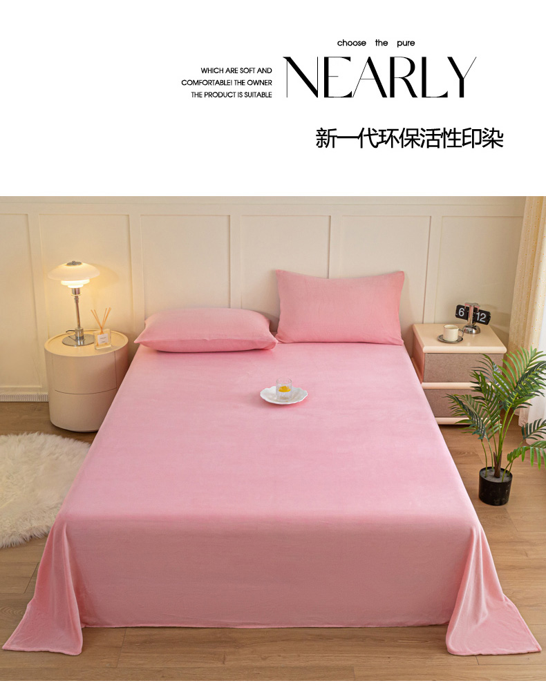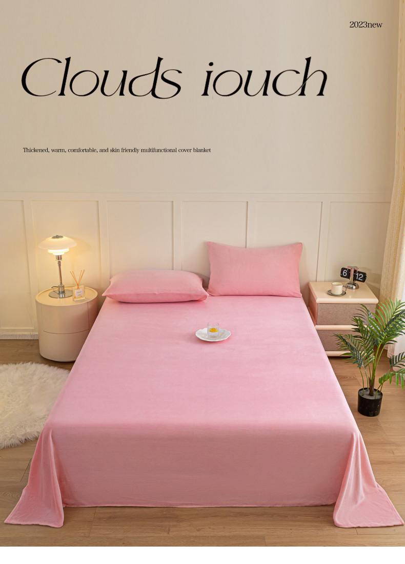 慕澄家纺 2023新款纯色牛奶绒加厚保暖多功能床单盖毯 床单-桃粉