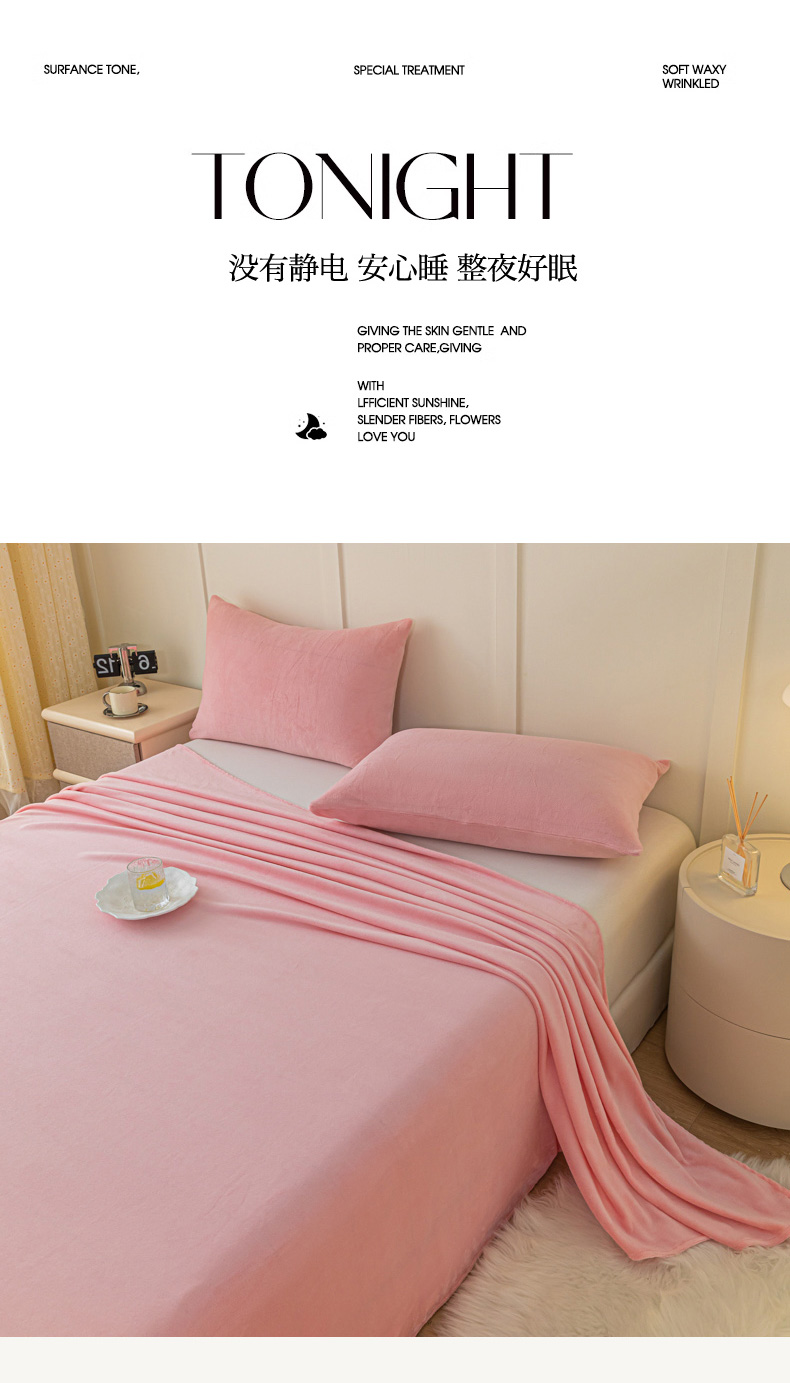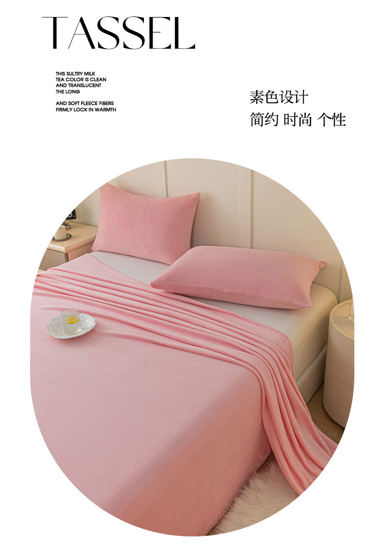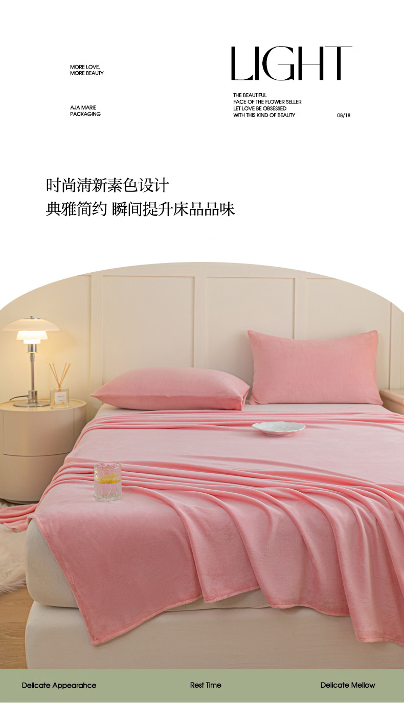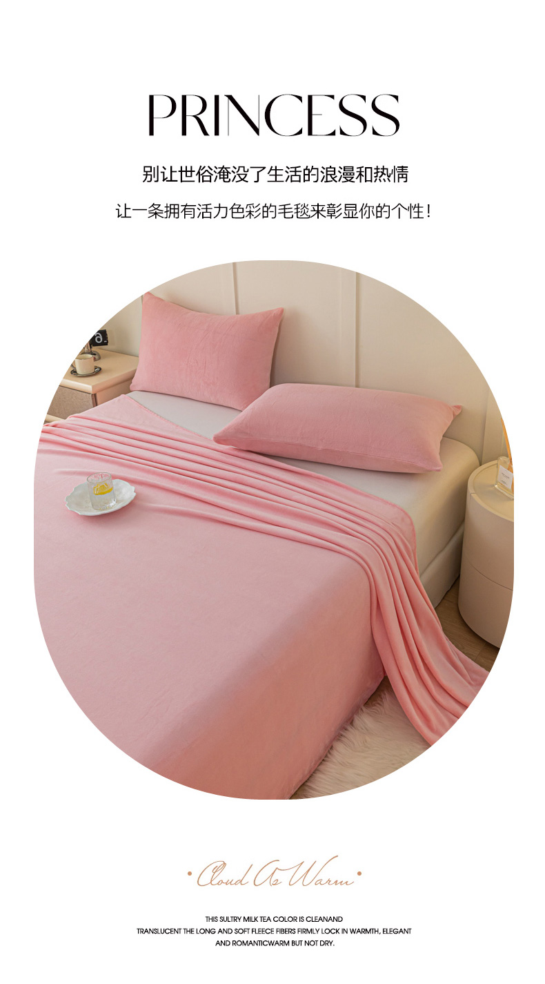 • 91家纺网 家纺一手货源 找家纺 慕澄家纺 2023新款纯色牛奶绒加厚保暖多功能床单盖毯 床单-桃粉
