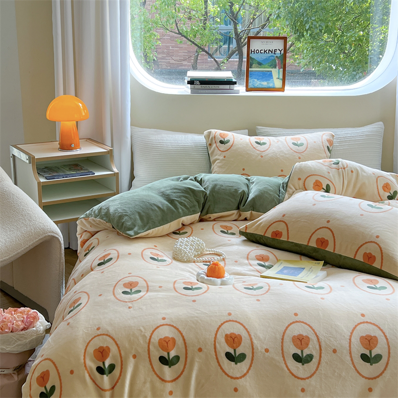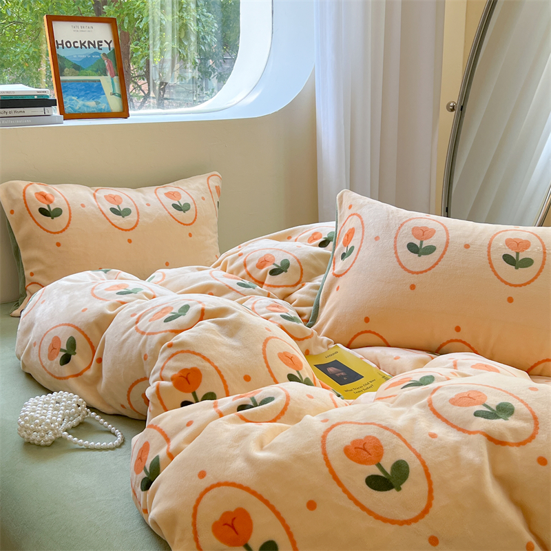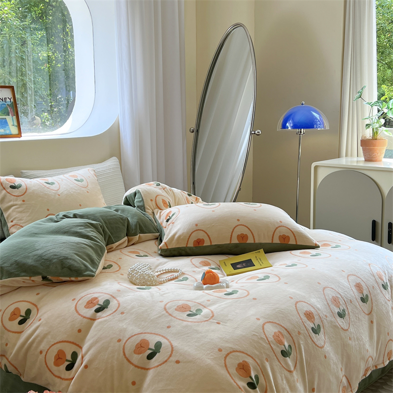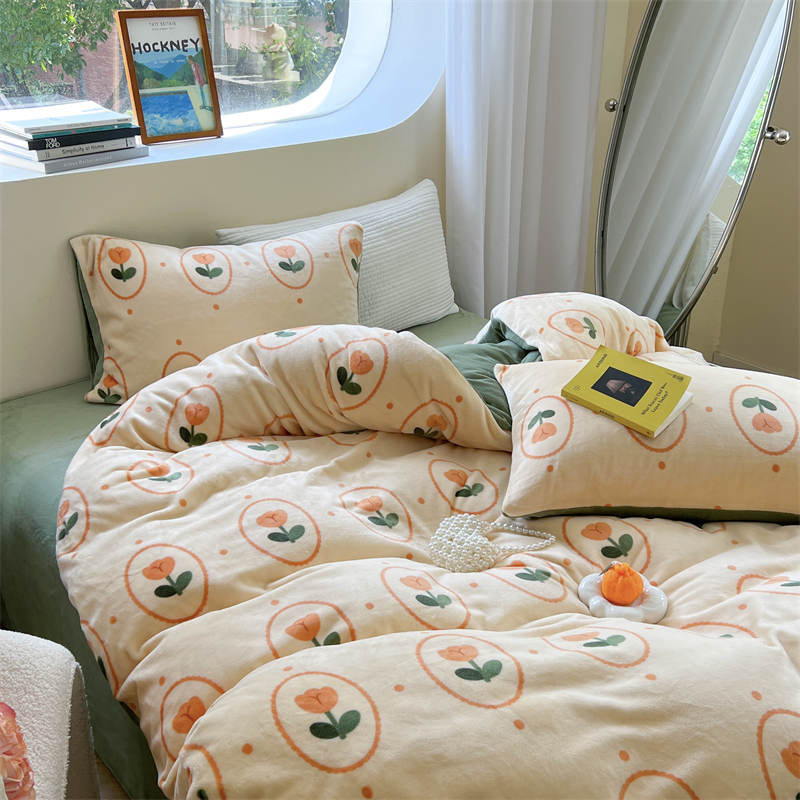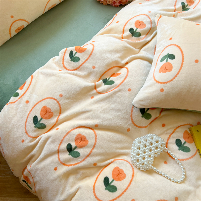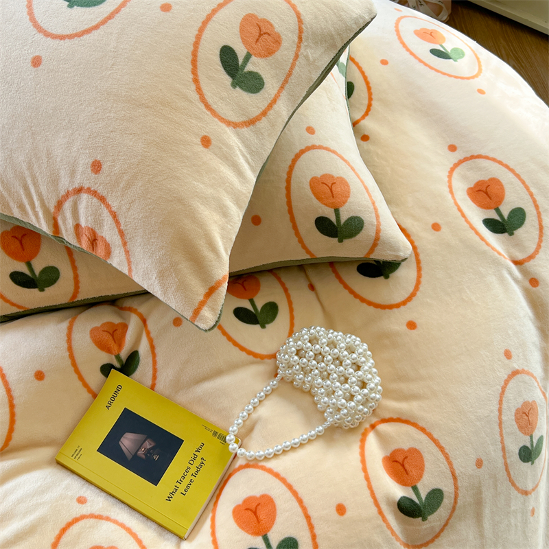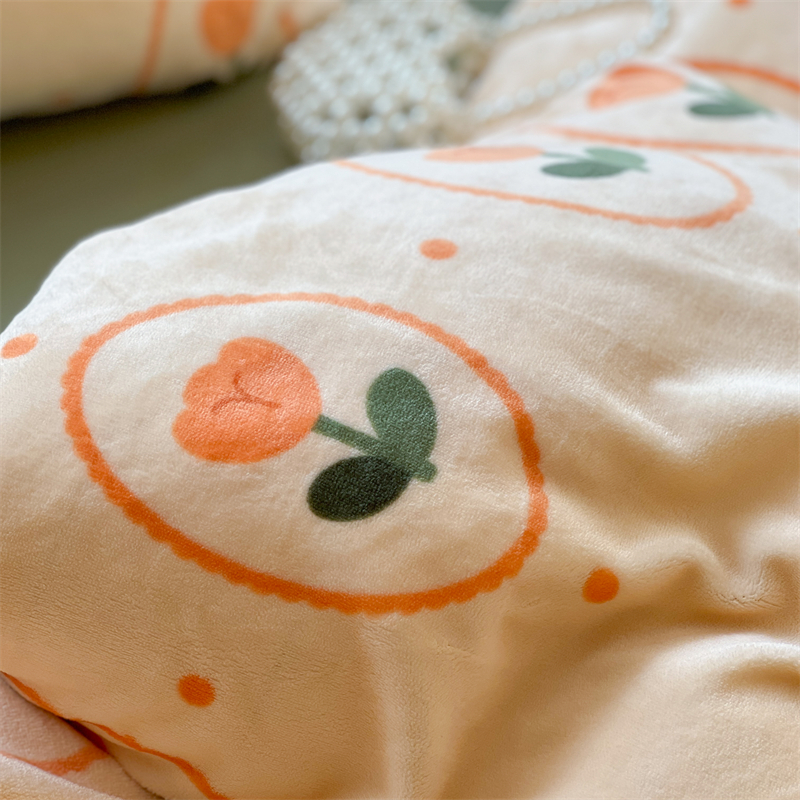 2023新款牛奶绒印花系列套件 花卉风格 波点小花-咖
