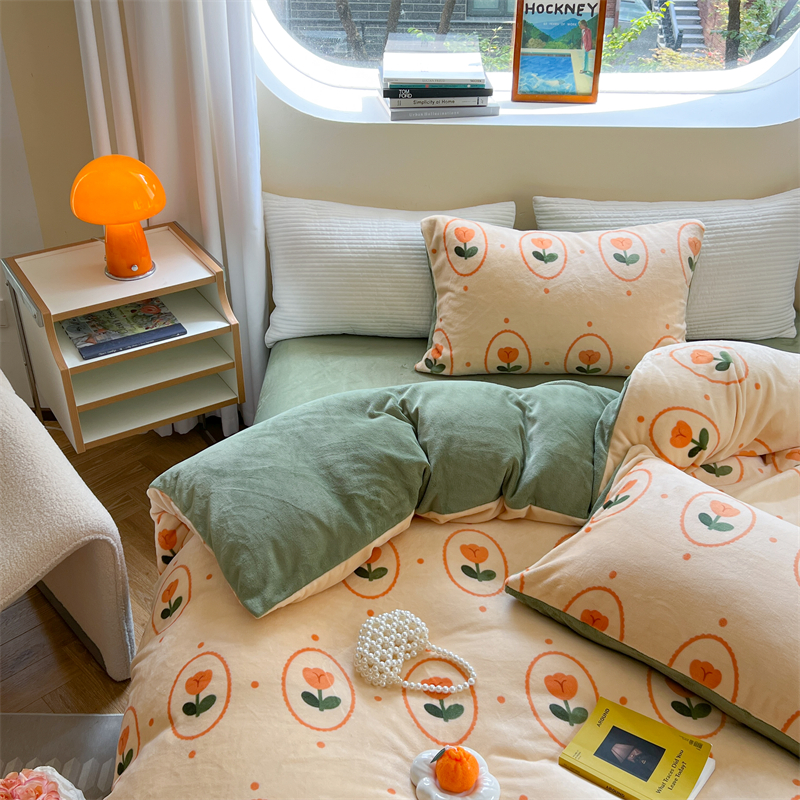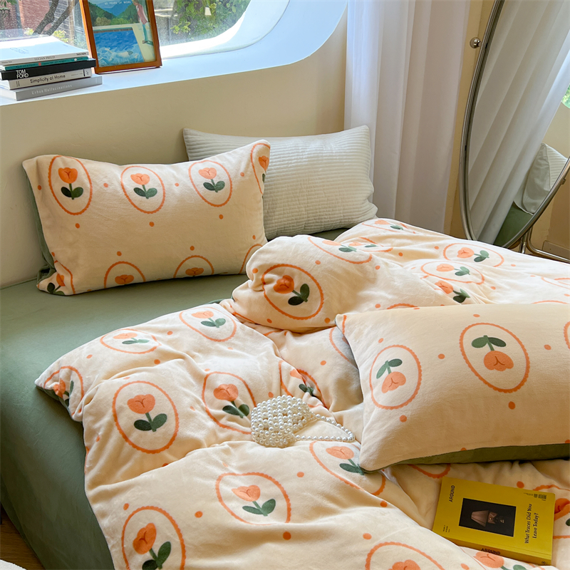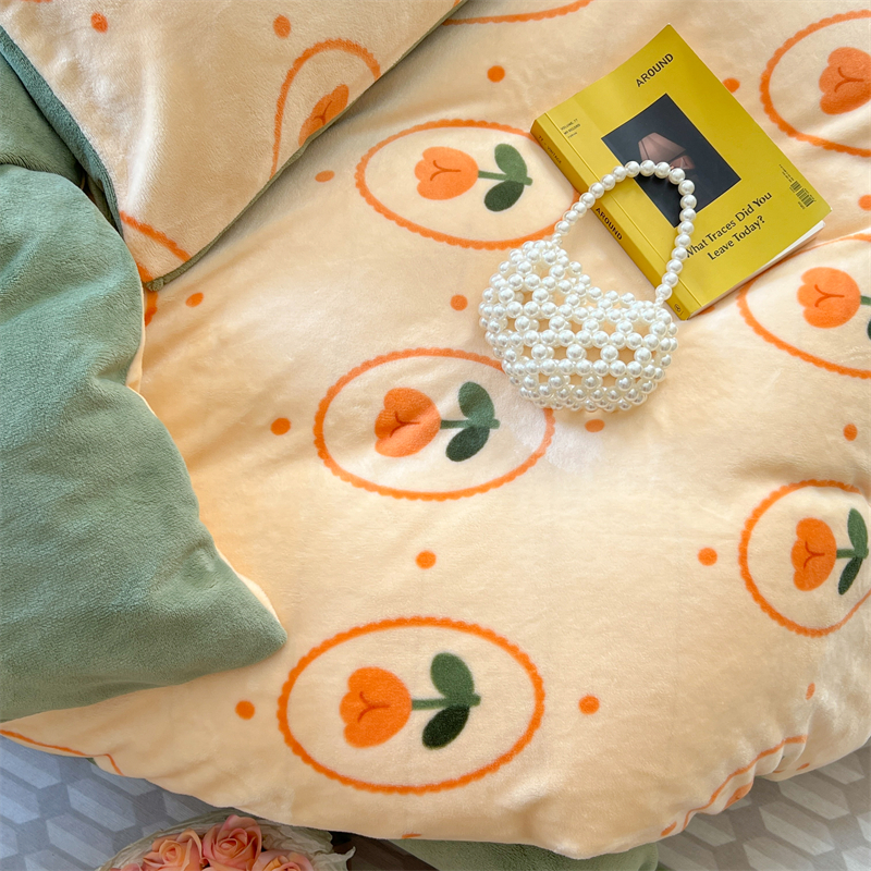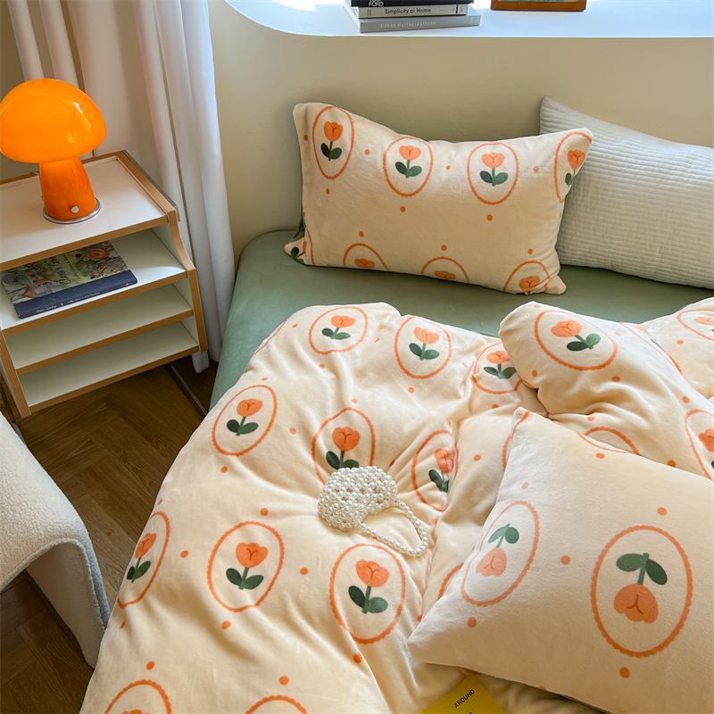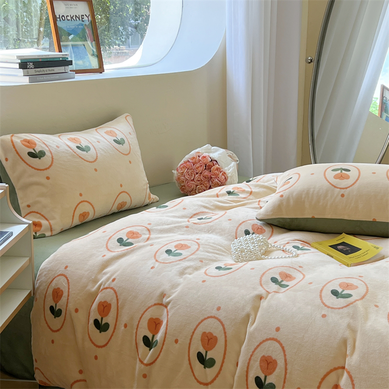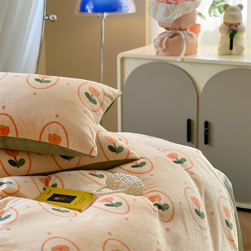 2023新款牛奶绒印花系列套件 花卉风格 波点小花-咖