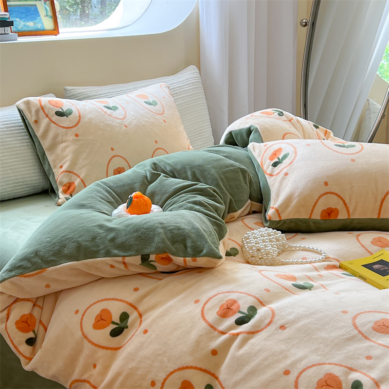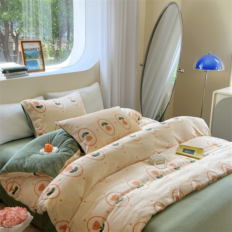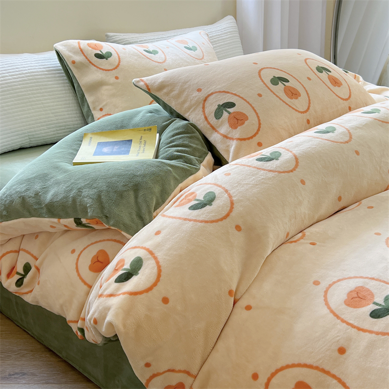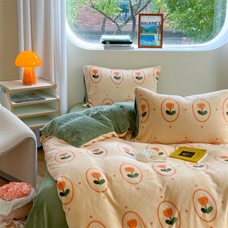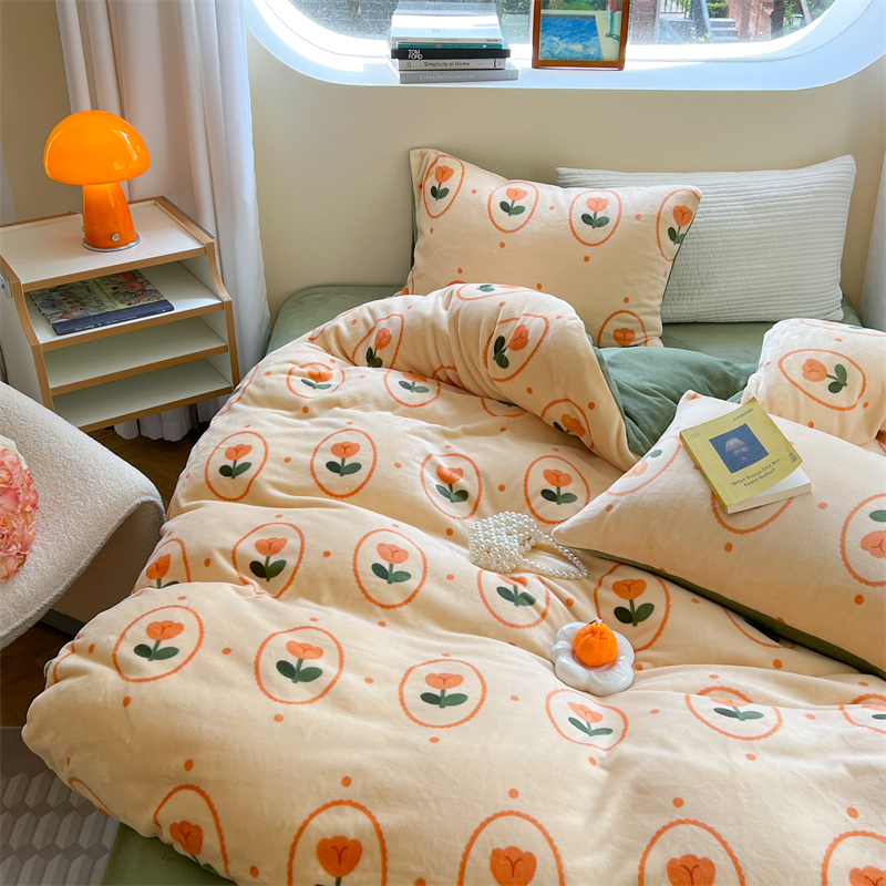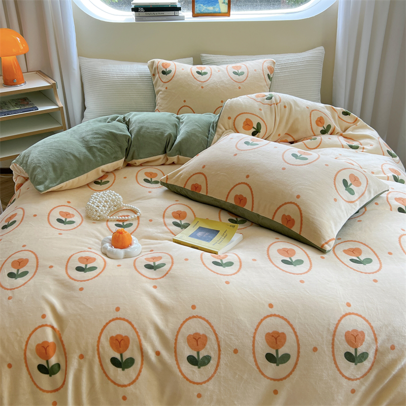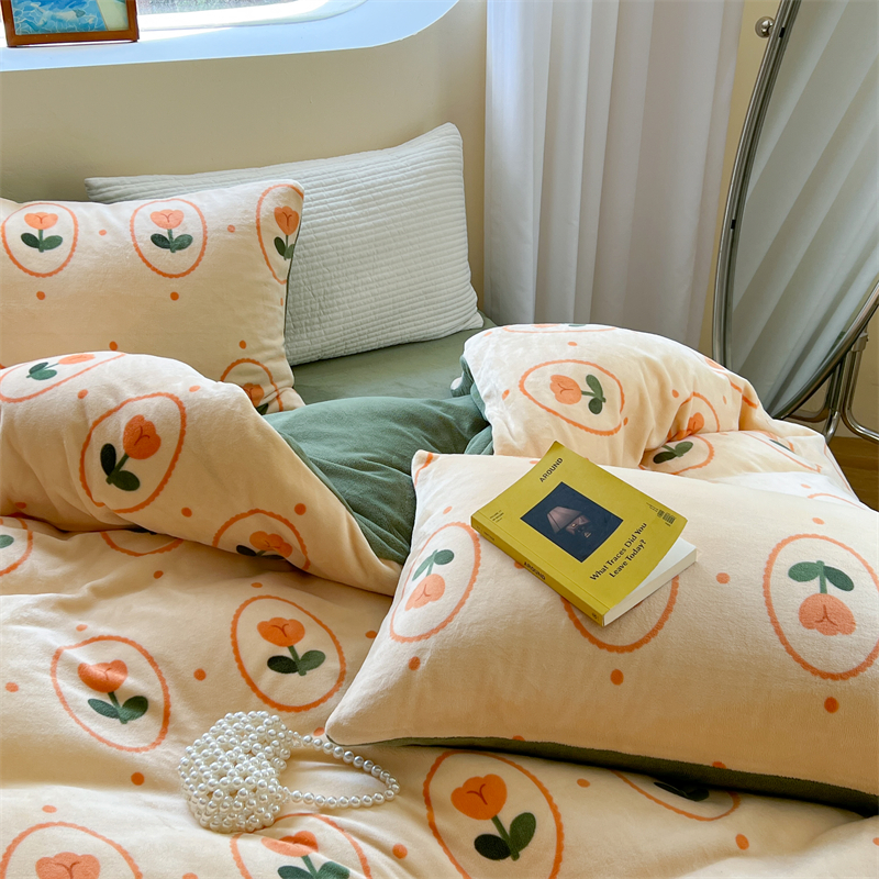 2023新款牛奶绒印花系列套件 花卉风格 波点小花-咖