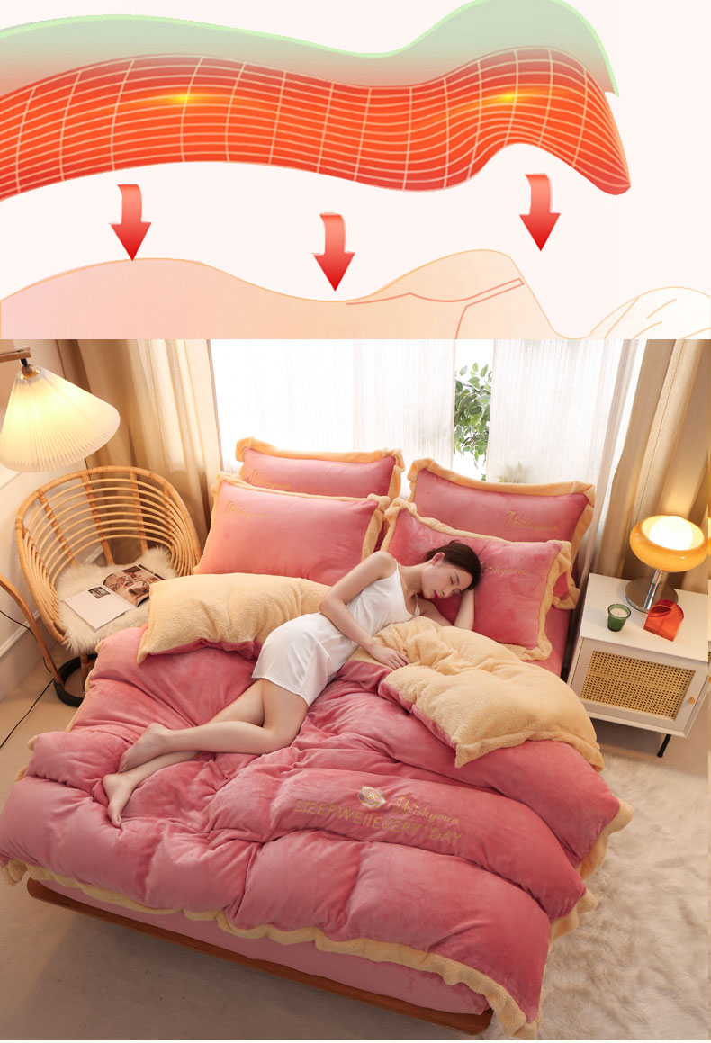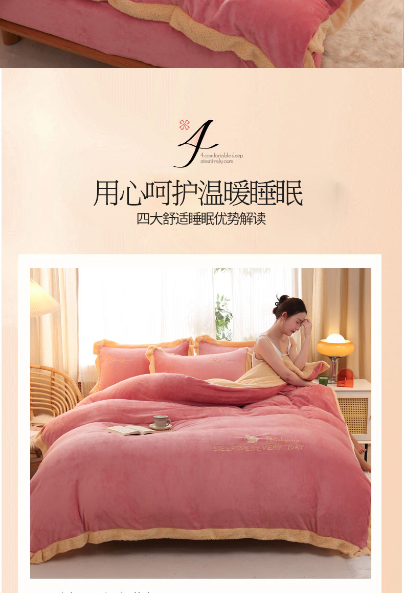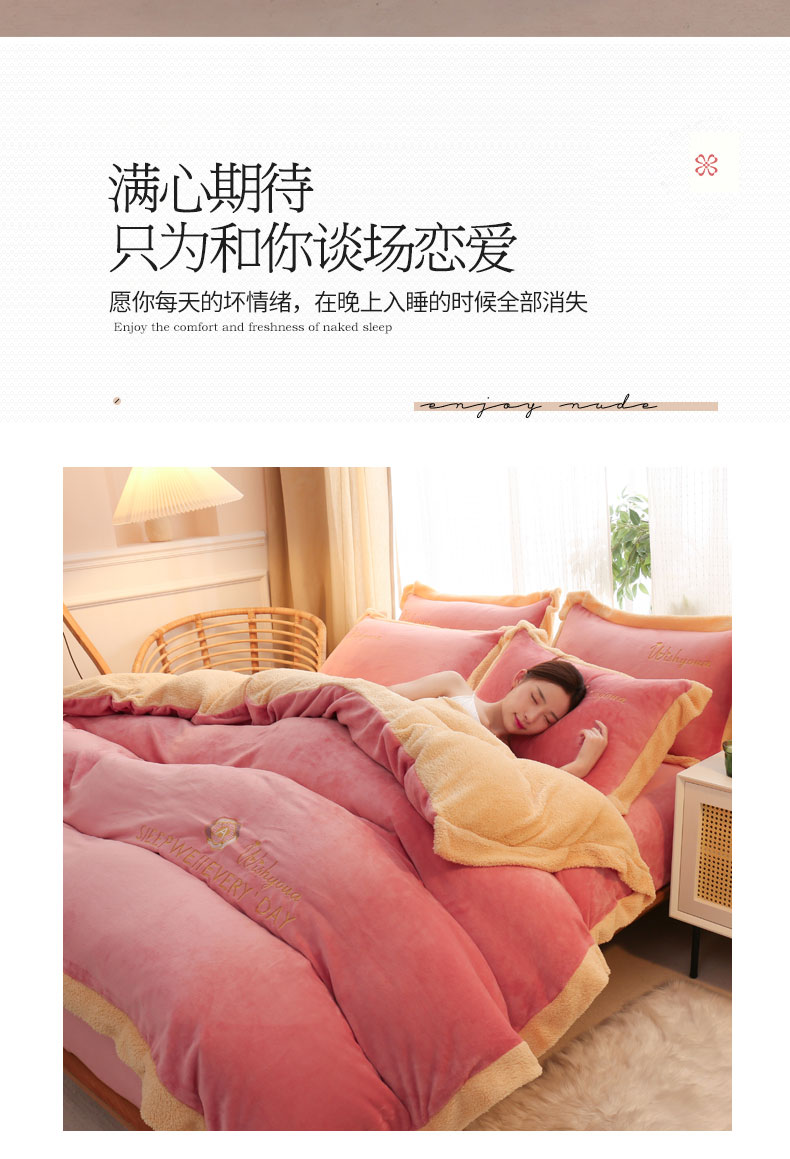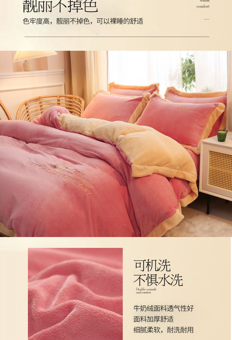 当前位置: 91家纺网 > 商品网购 > 床品套件 > 四件套 > 牛奶绒四件套 > 啊雅家居 2026新款绣花牛奶绒加羊羔绒四件套 玫红加米黄
