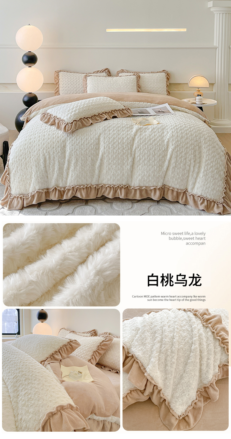 (总) 小主驾到 2023新款白桃乌龙兔兔绒牛奶绒花边款四件套