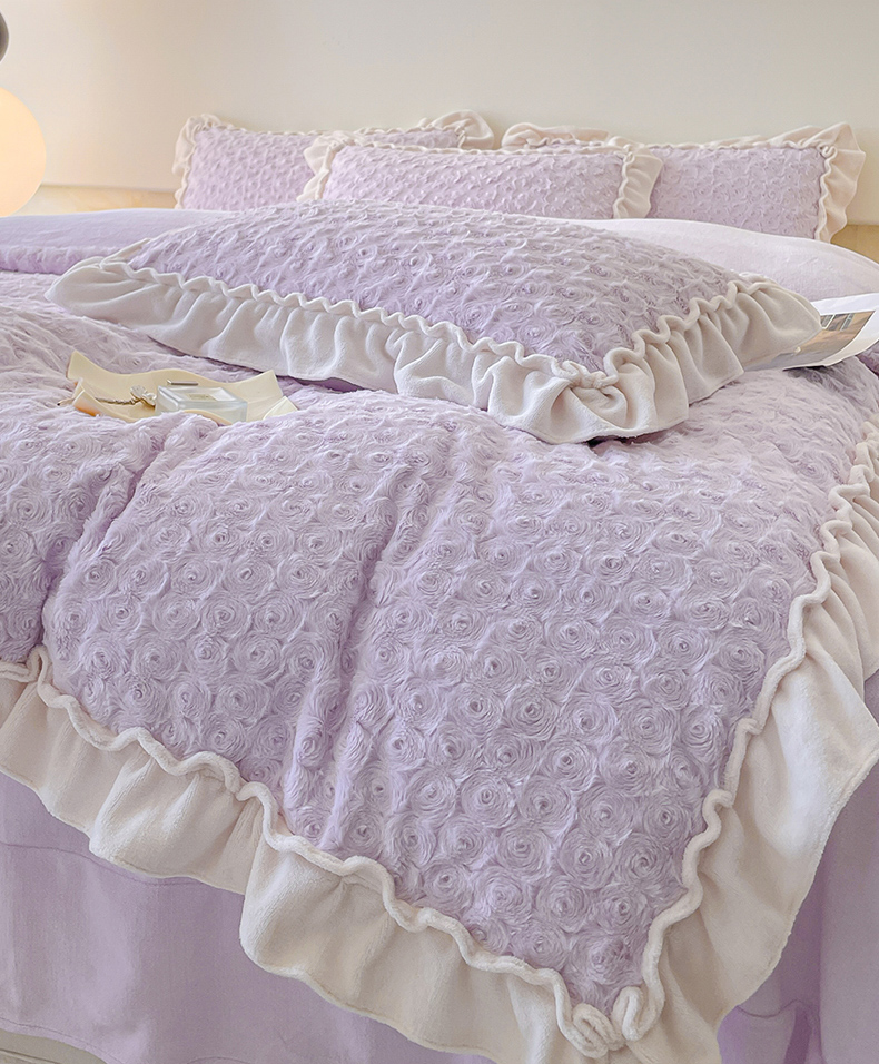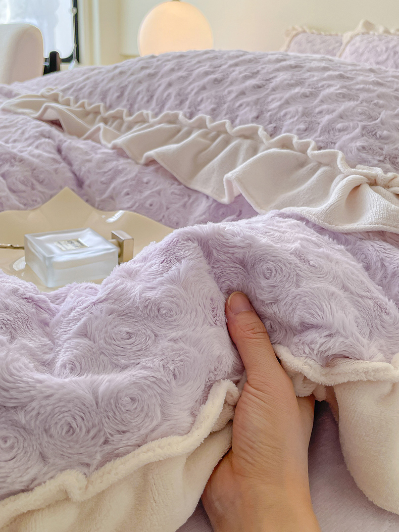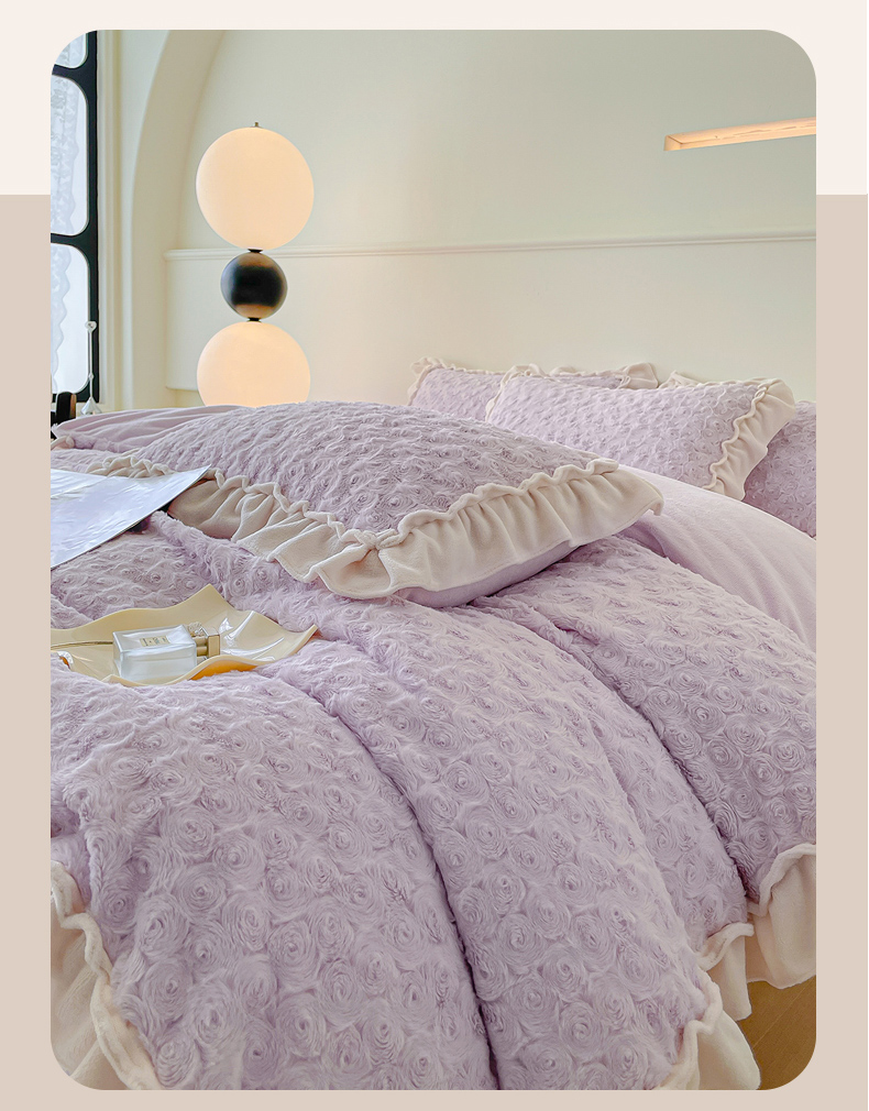 (总)小主驾到 2025新款高克重雕花牛奶绒花边款床单床盖款四件套,洛薇 粉,洛薇 灰紫,洛薇 蓝,洛薇 米白