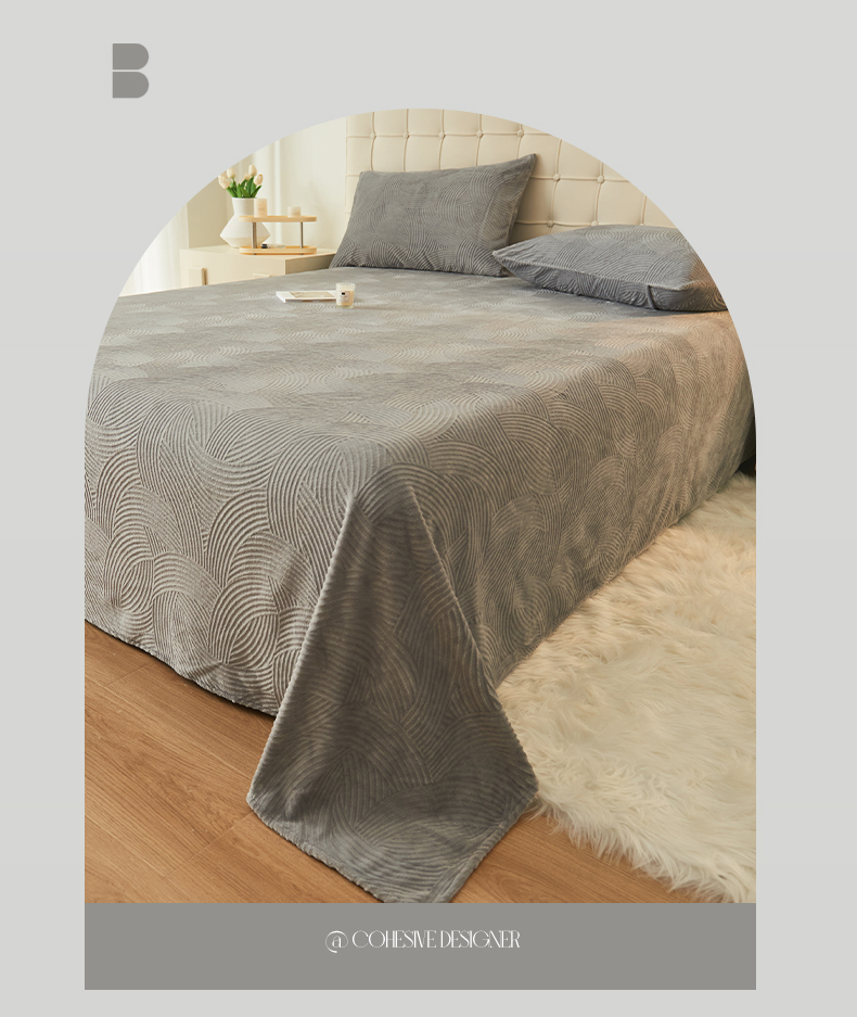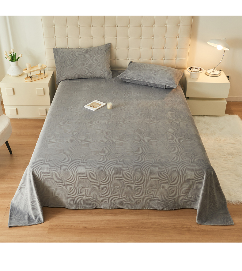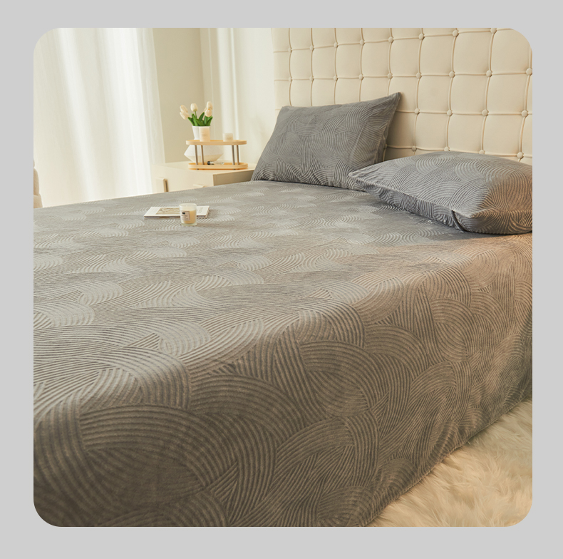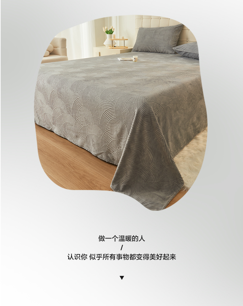 吾诺家居 2023新款230克立体雕花牛奶绒床单可配三件套 线条-灰