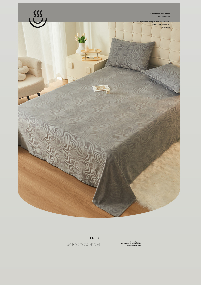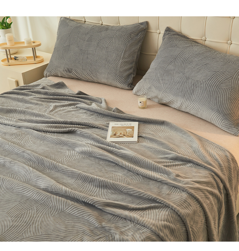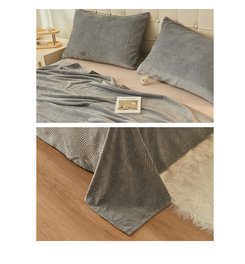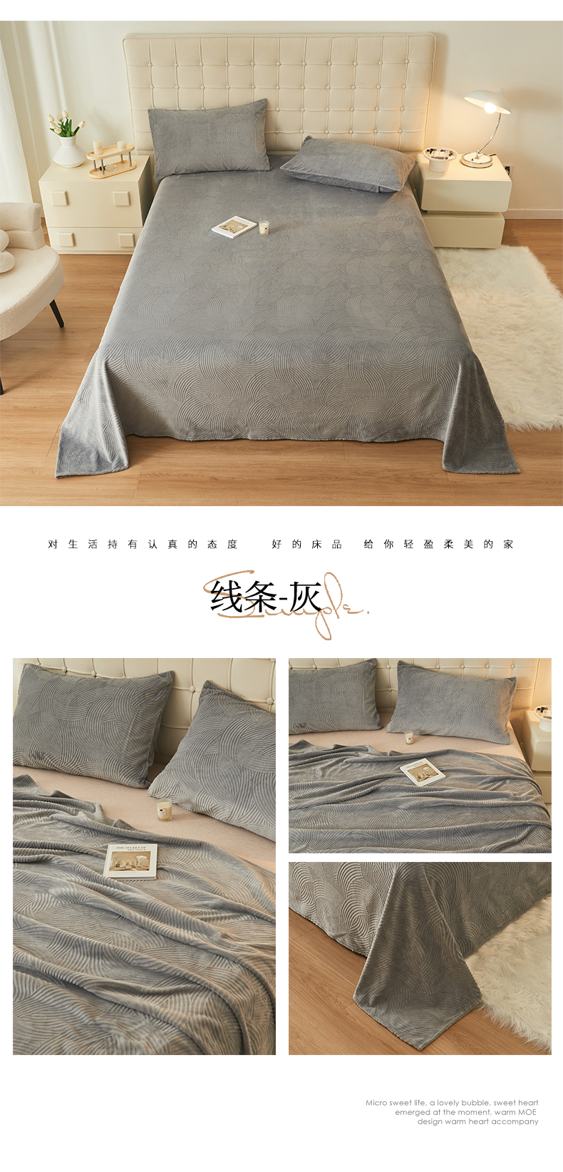 商品名称:吾诺家居 2023新款230克立体雕花牛奶绒床单可配三件套 线条-灰