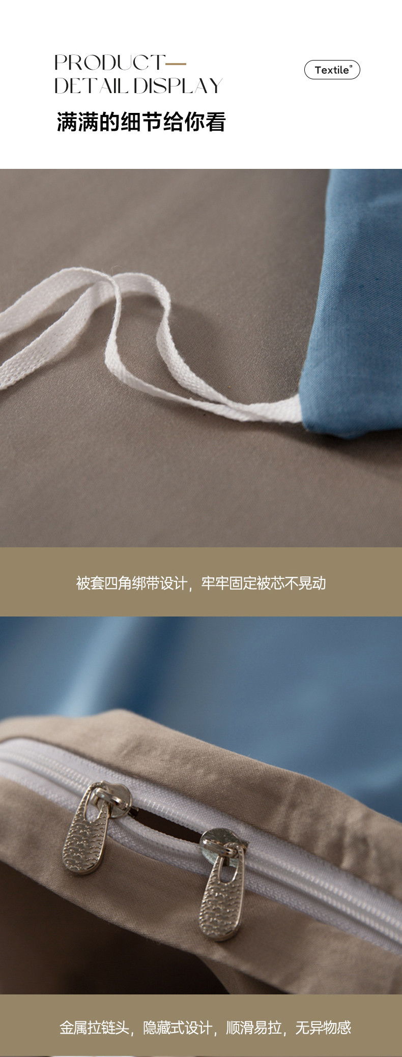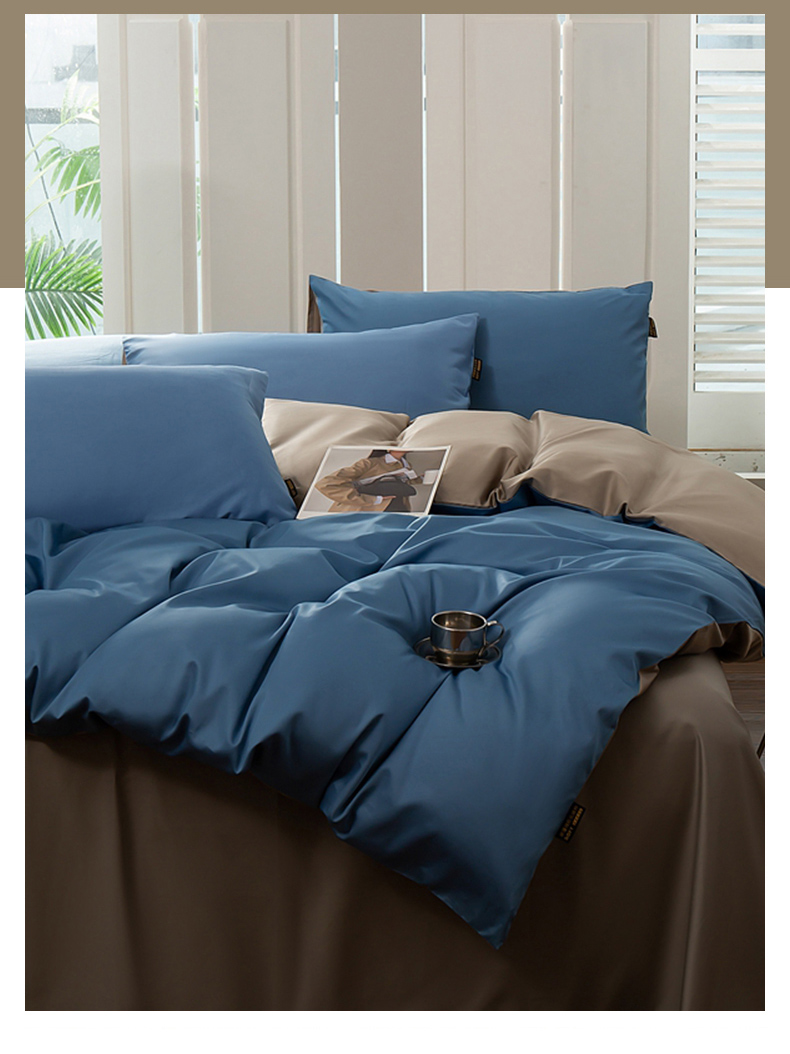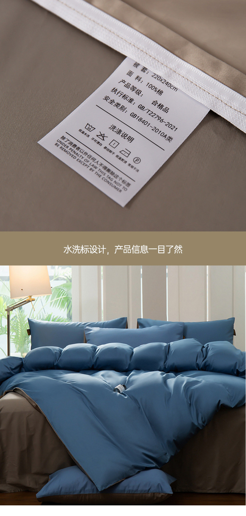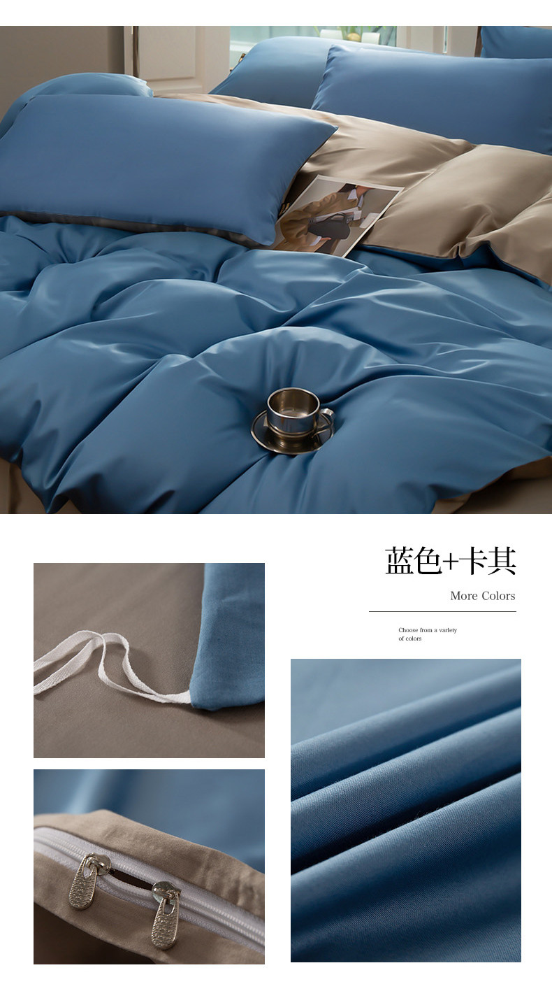 商品名称:莱阁亿 2023新款长绒棉纯色双面四件套 蓝色+卡其