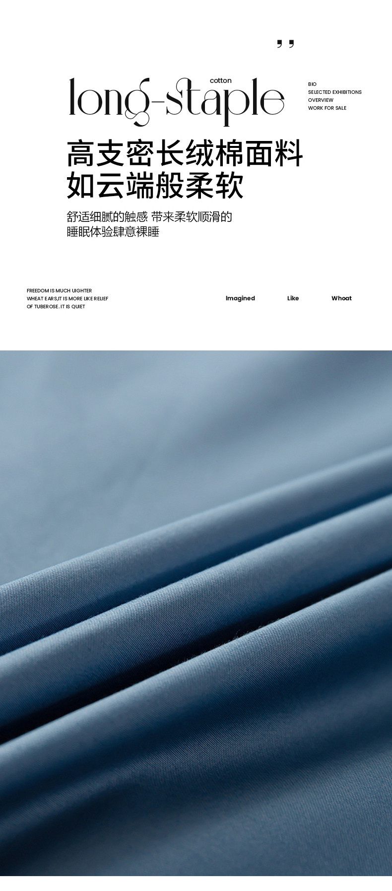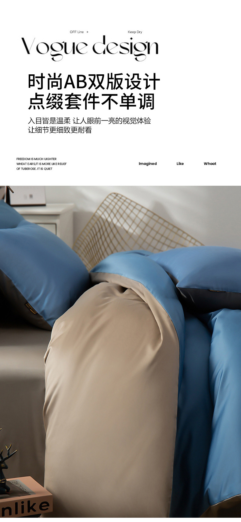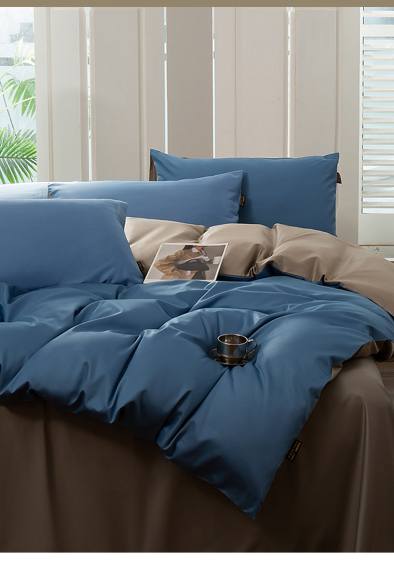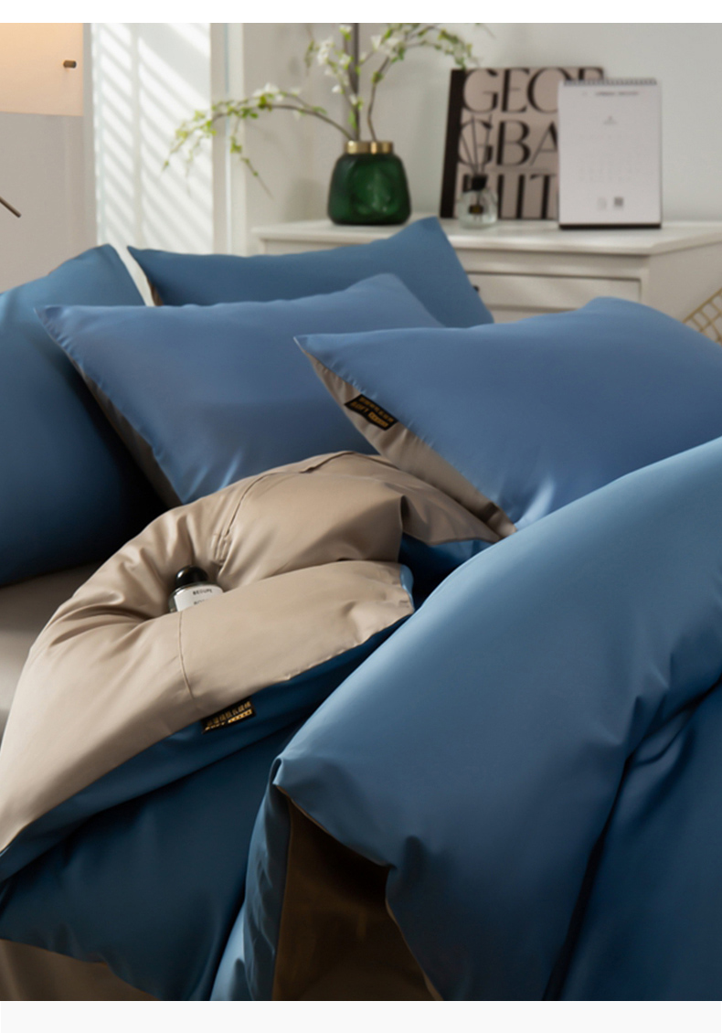 商品名称:莱阁亿 2023新款长绒棉纯色双面四件套 蓝色+卡其
