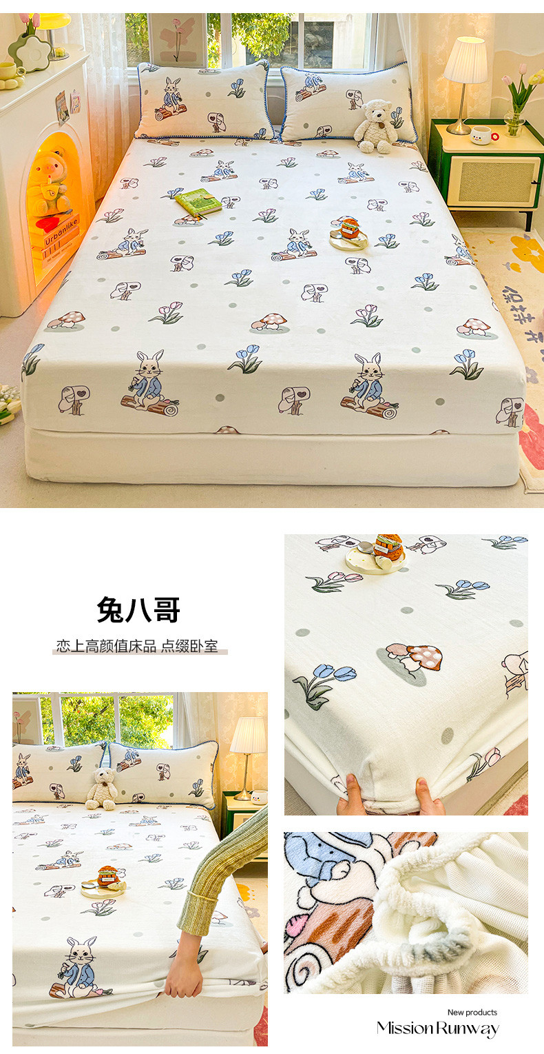 总 安哆啦家纺 2024新款高克重牛奶绒印花单床笠