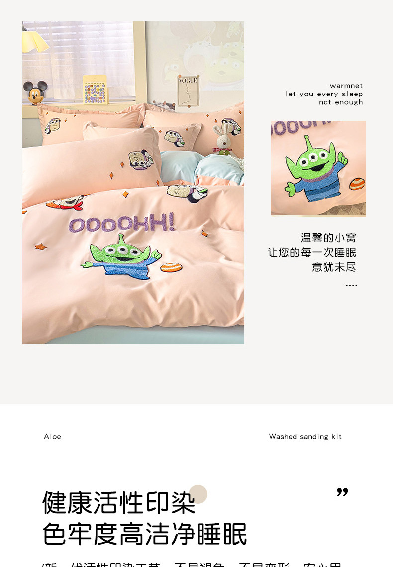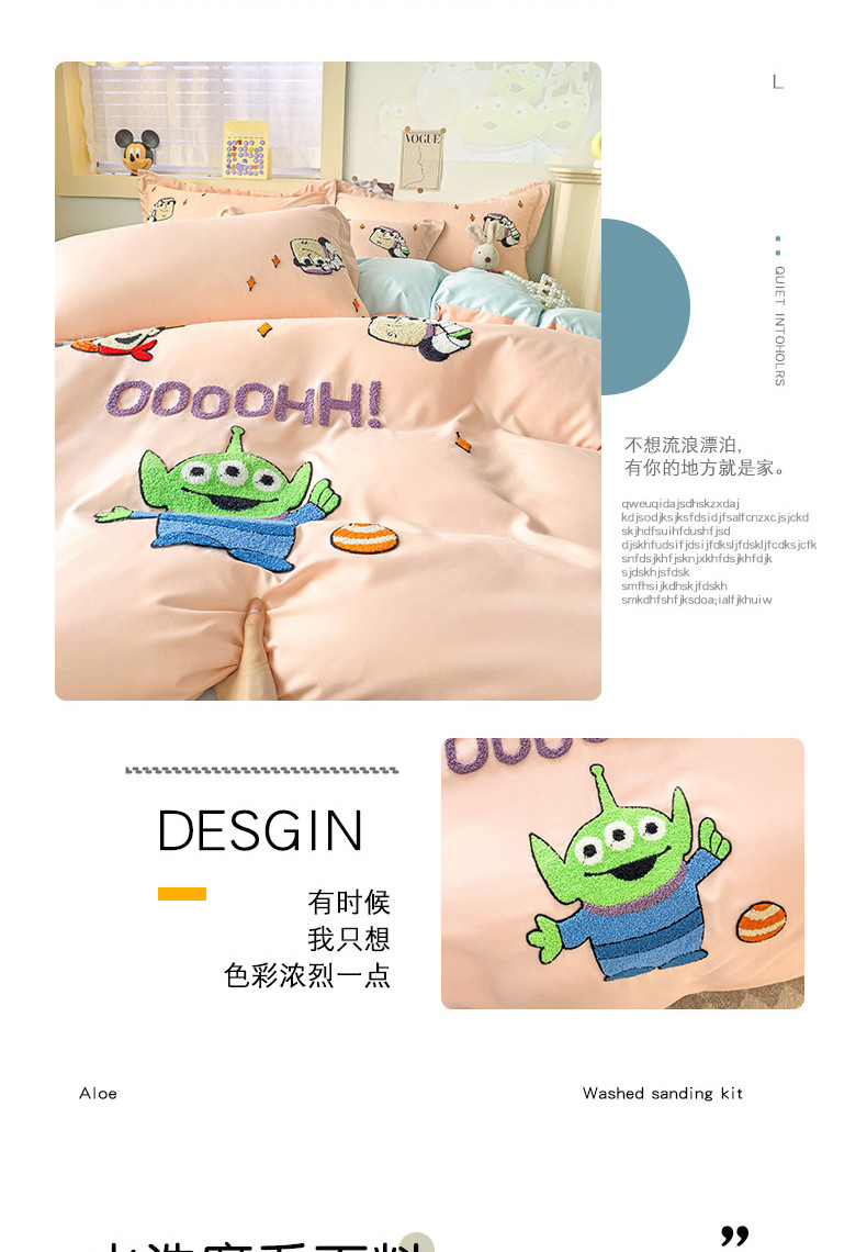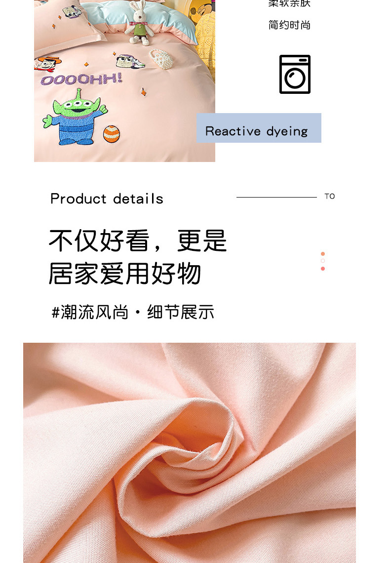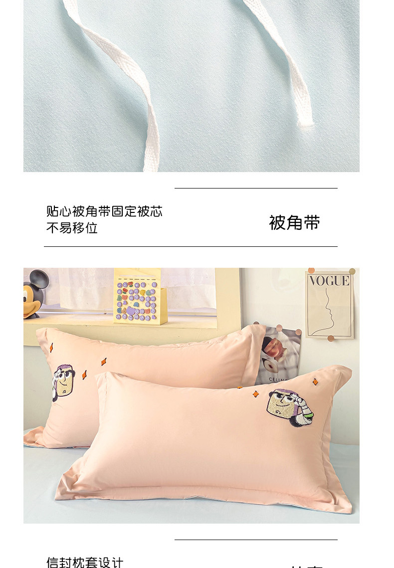 商品名称:娜娜 2023新款水洗磨毛毛巾绣四件套 胡迪和巴斯藕粉+蓝