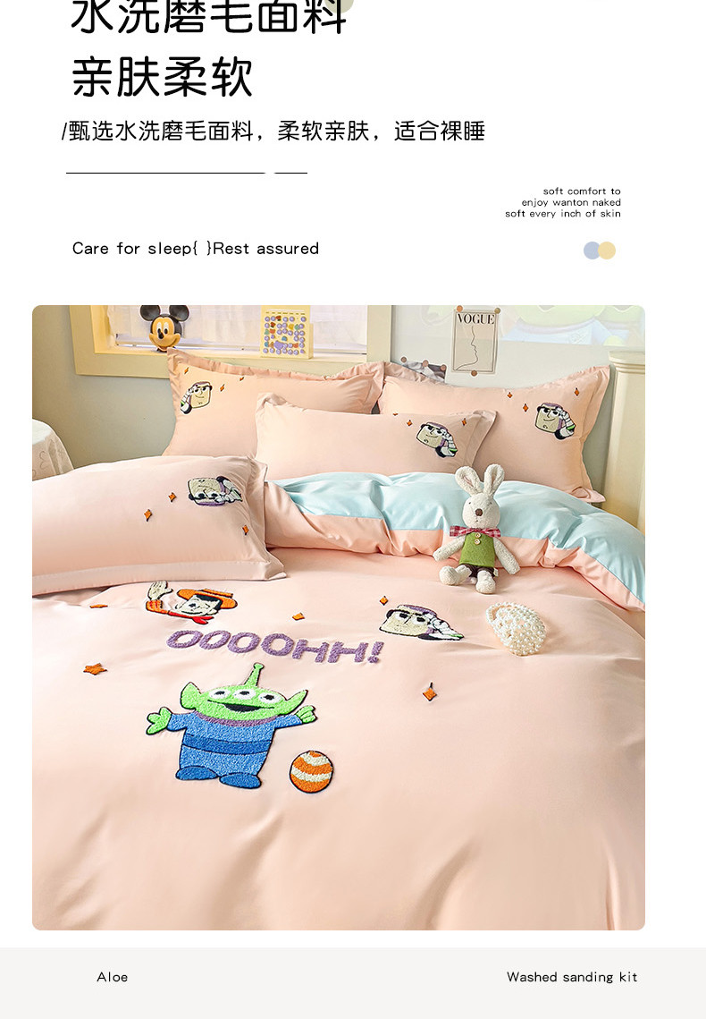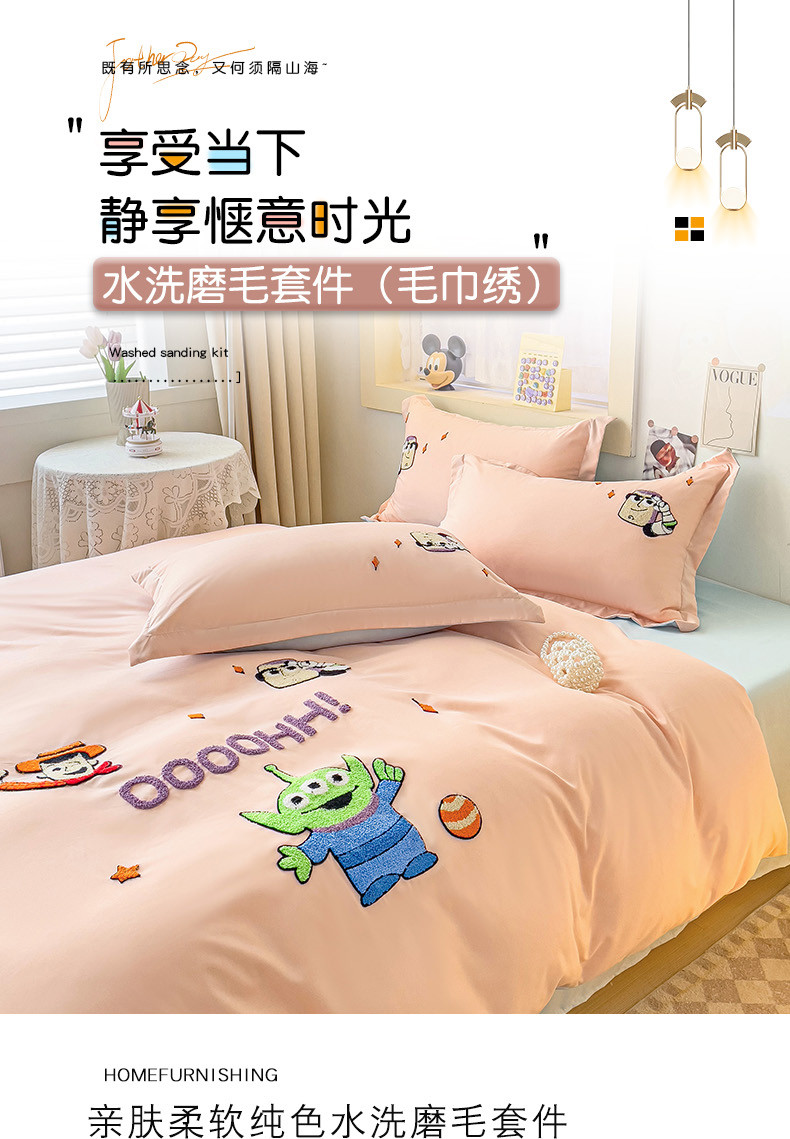 娜娜 2023新款水洗磨毛毛巾绣四件套 胡迪和巴斯藕粉+蓝