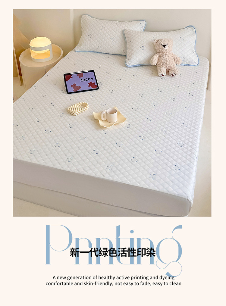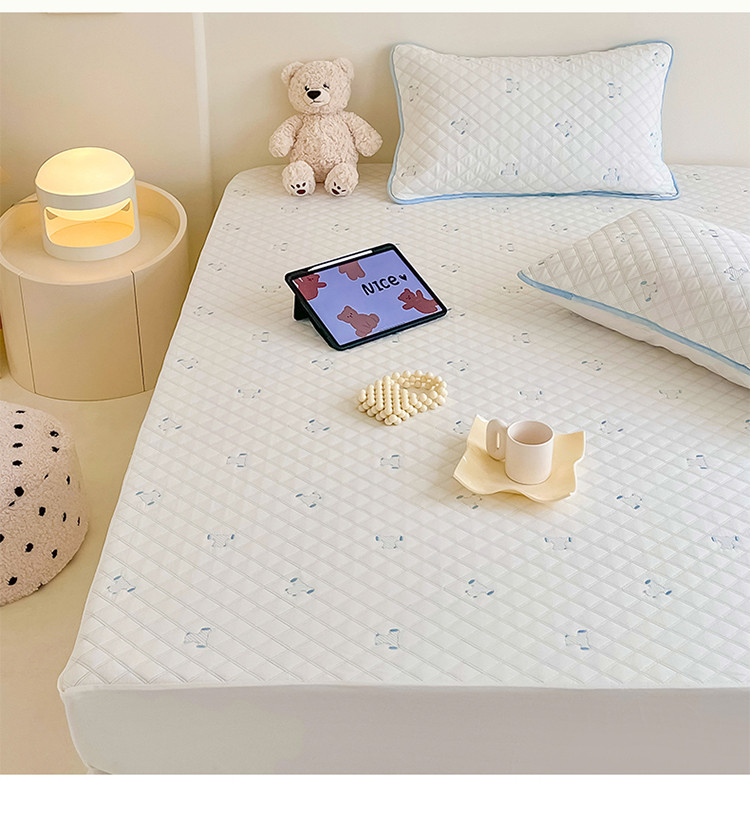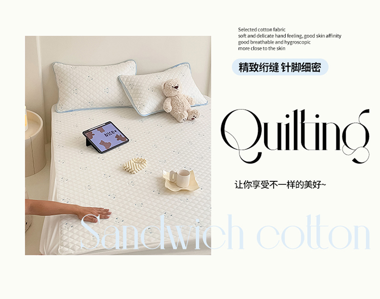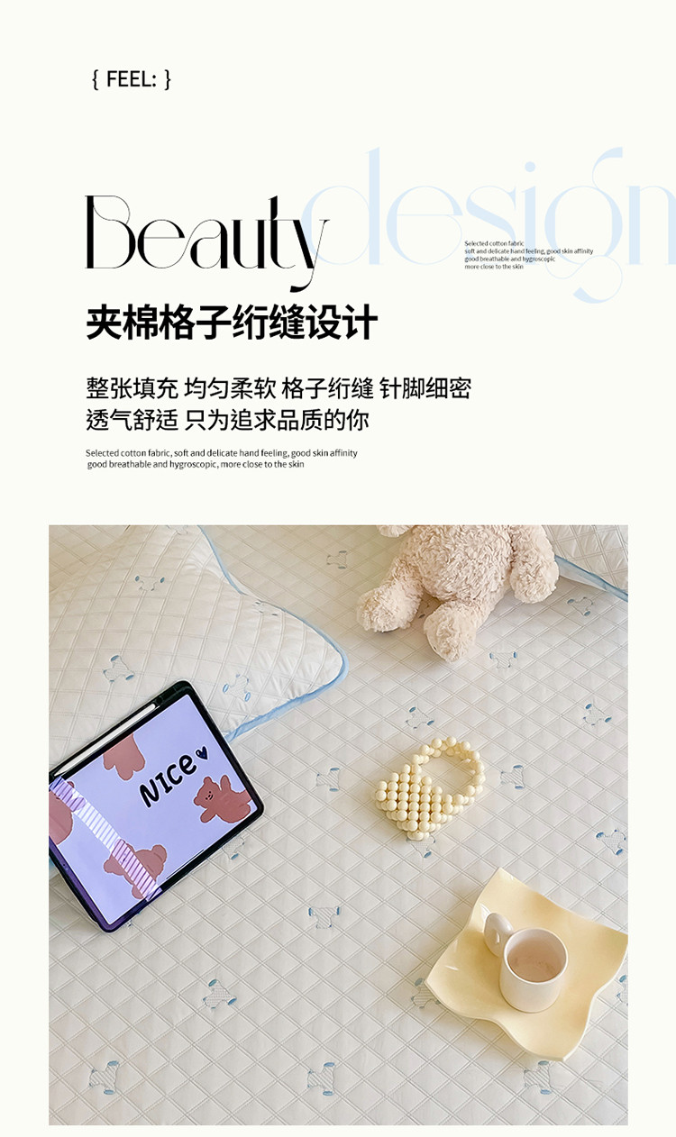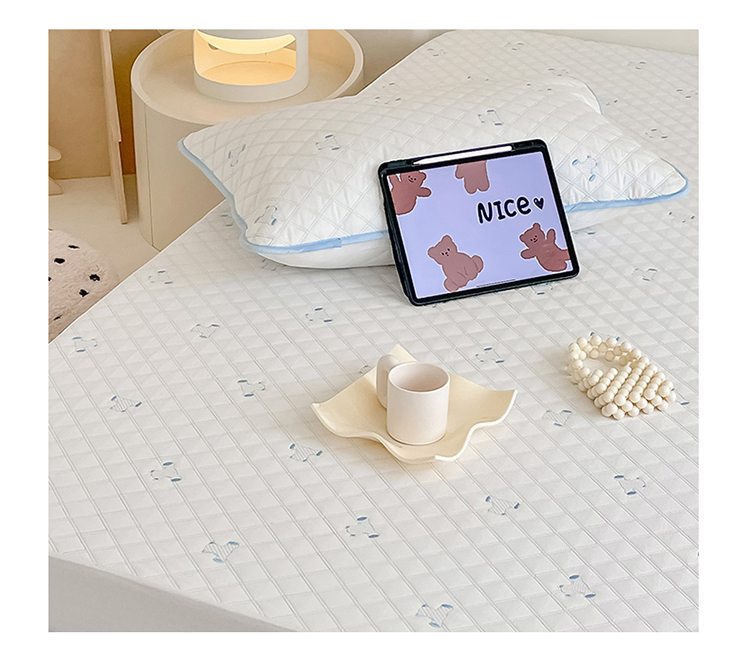 商品名称:漫调 2023新款全棉绗缝床笠格子小熊刺绣 床笠晴空蓝