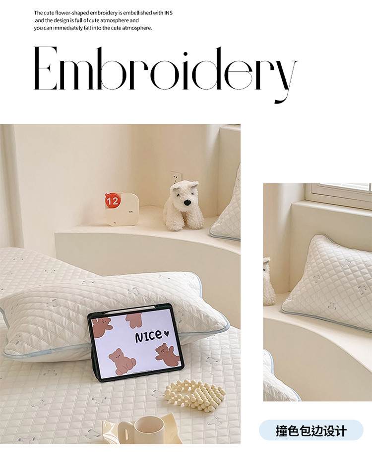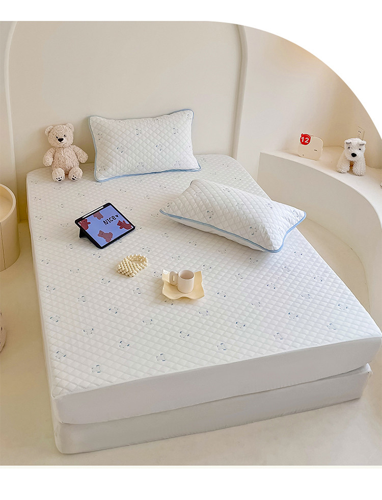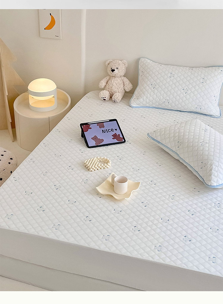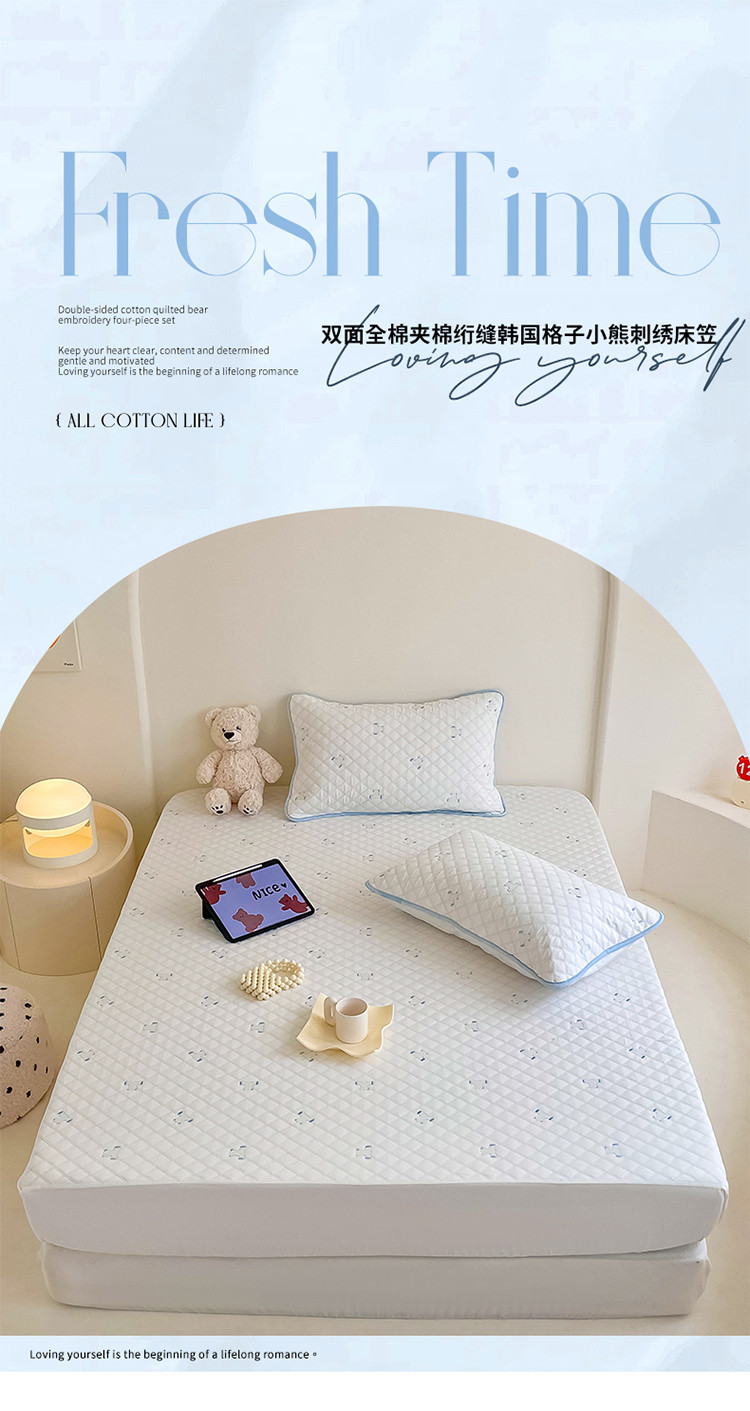 漫调 2023新款全棉绗缝床笠格子小熊刺绣 床笠晴空蓝