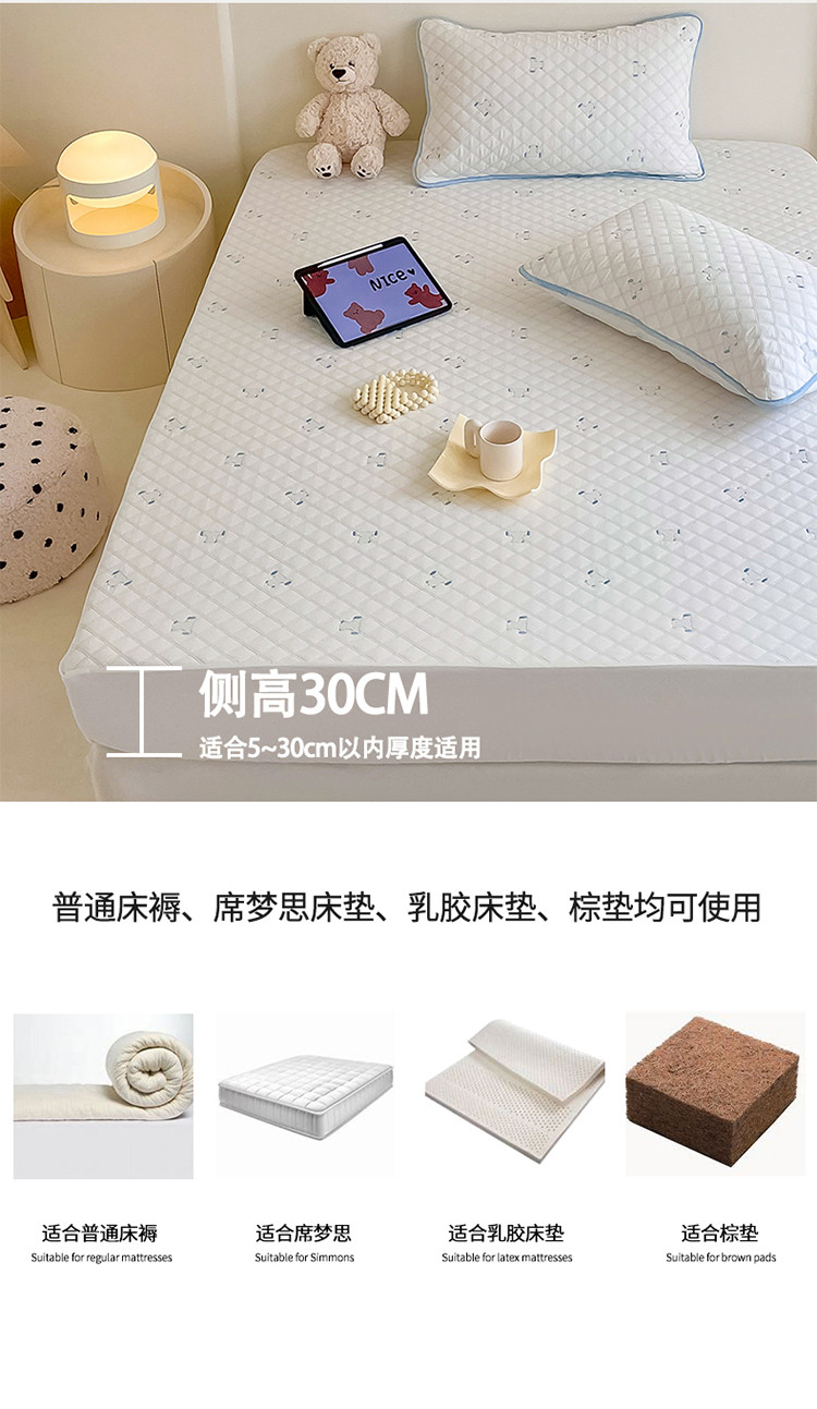 (总)漫调2025新款全棉星星床垫保护套夹棉床笠-繁星,组合图仅供参考,繁星白,繁星粉,繁星灰,繁星咖,繁星绿,繁星杏