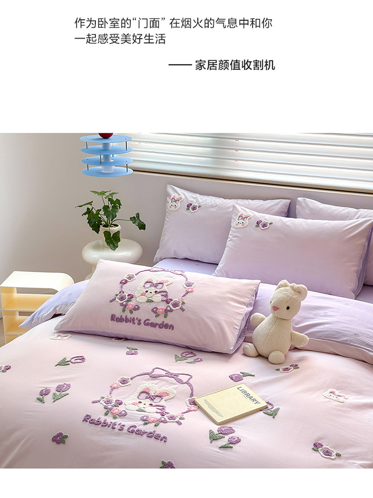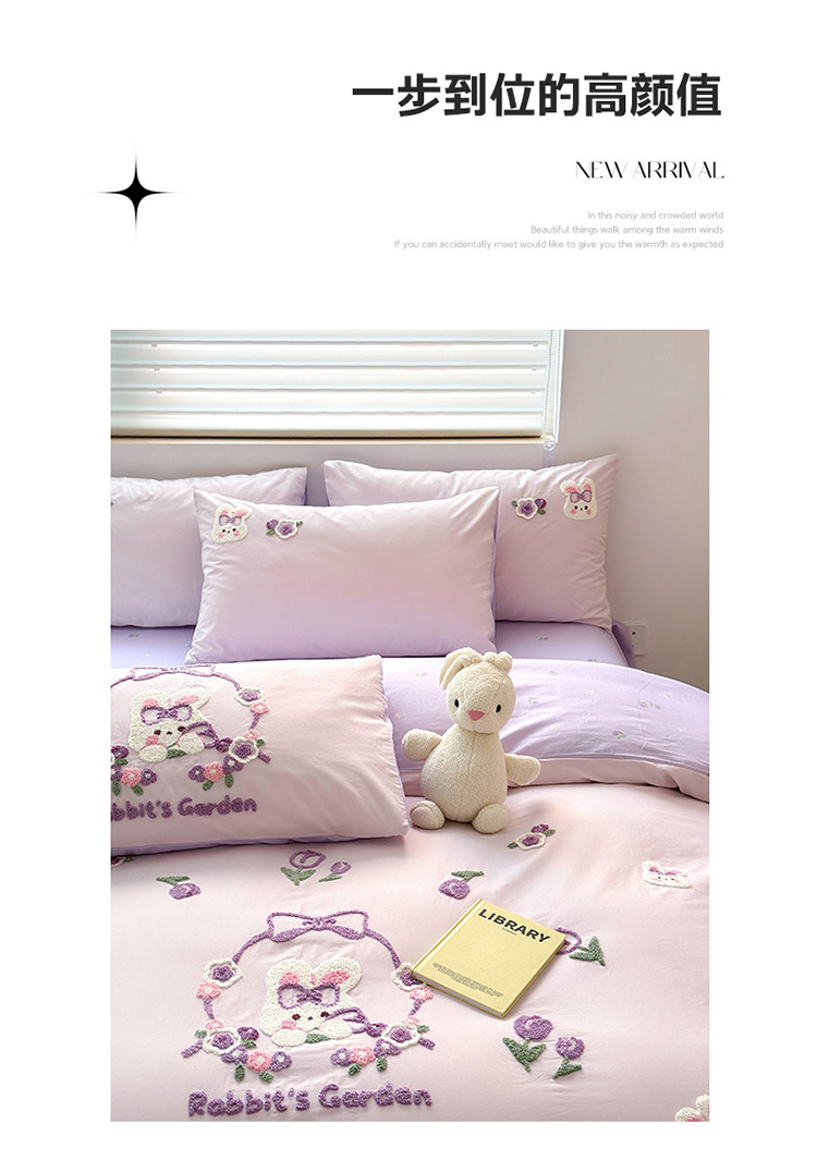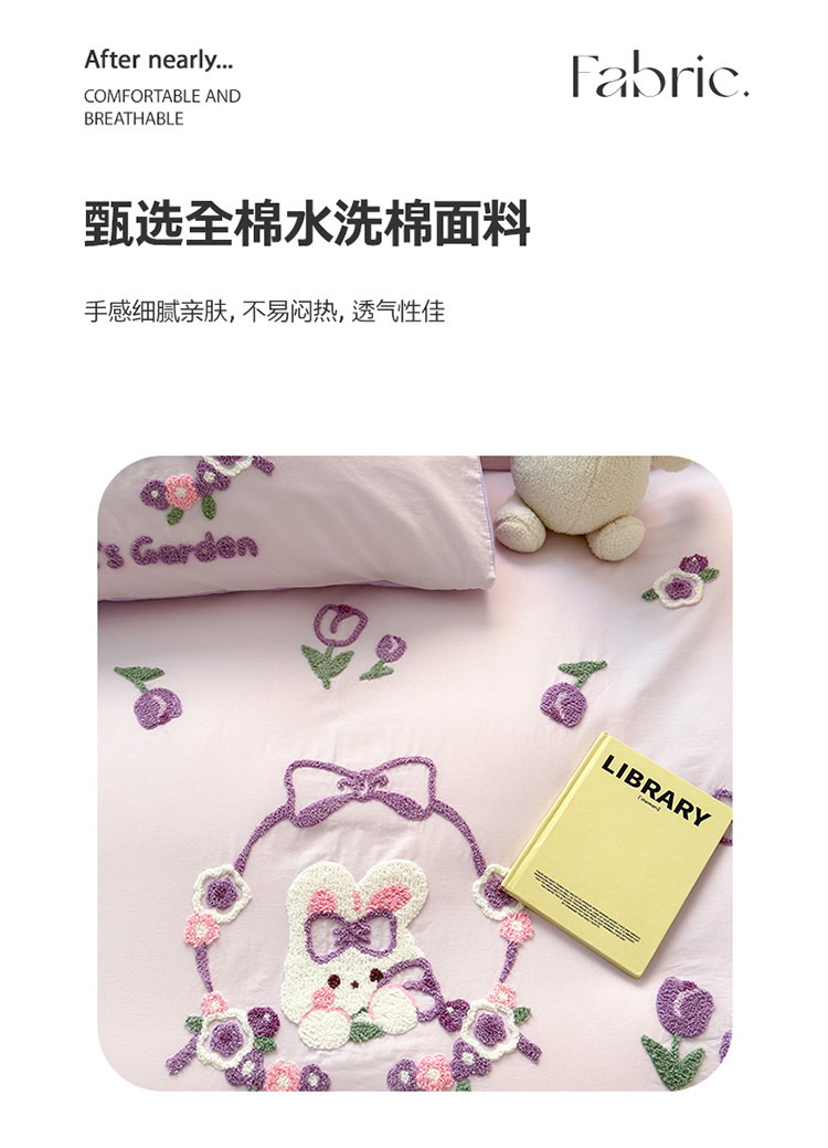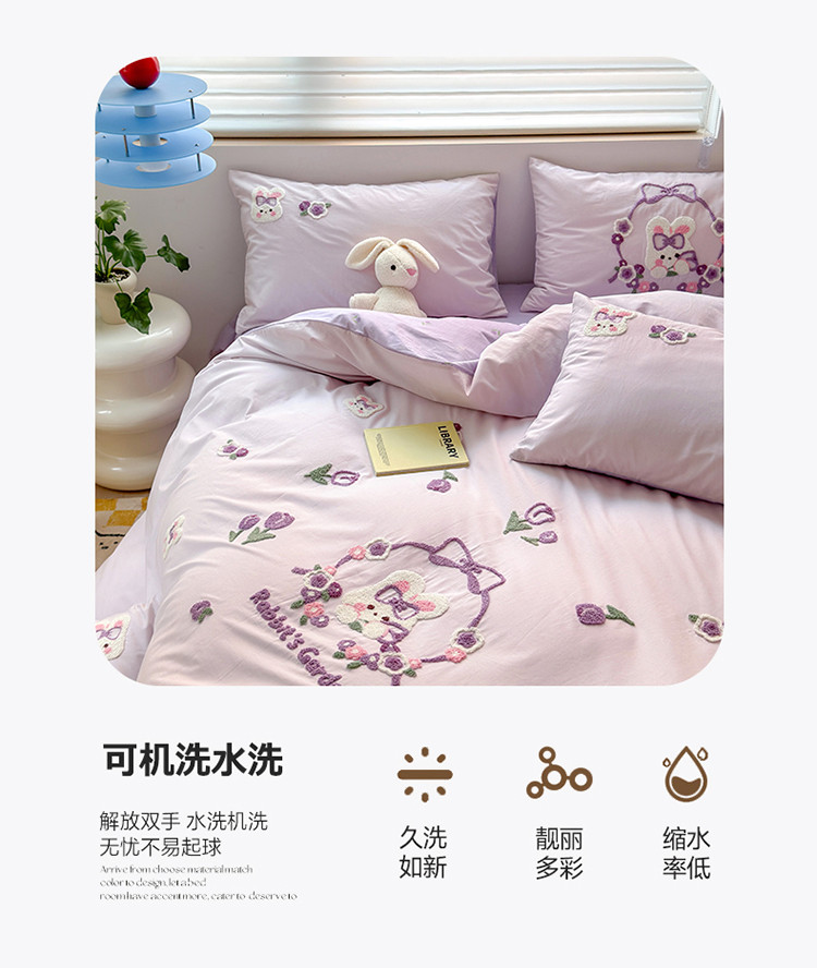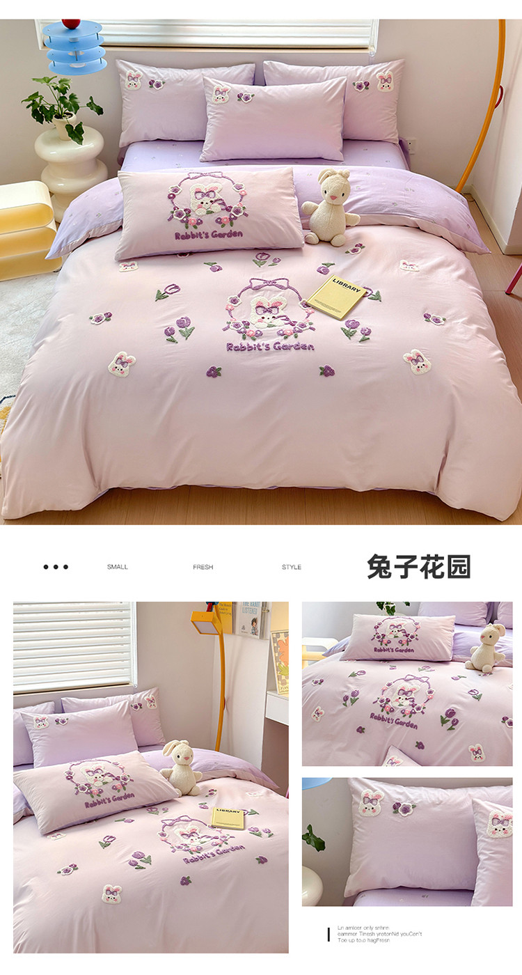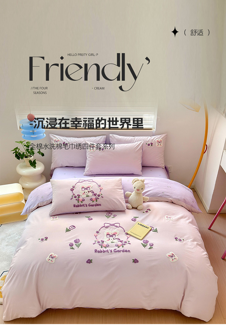 商品名称:眠屿 2023新款A类水洗棉毛巾绣四件套 兔子花园