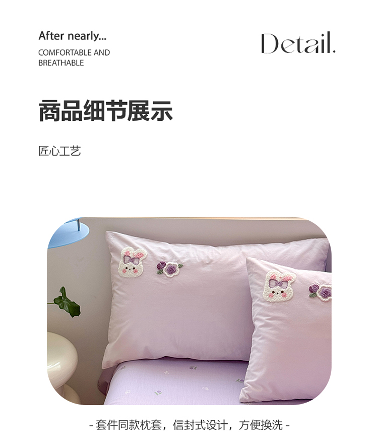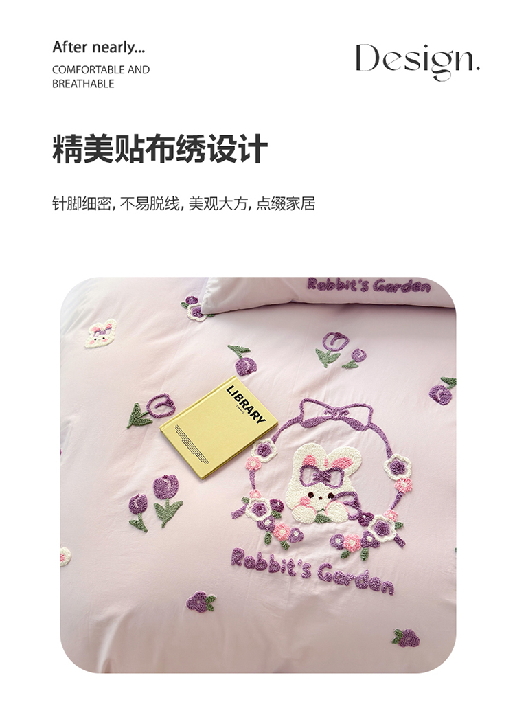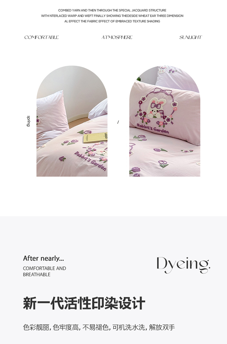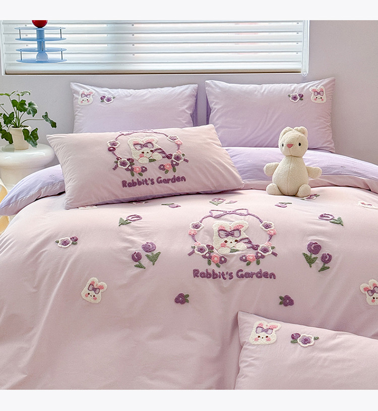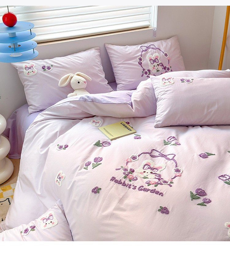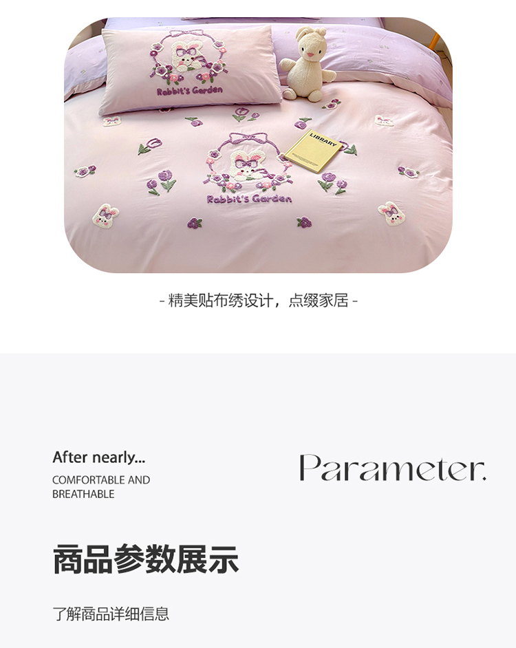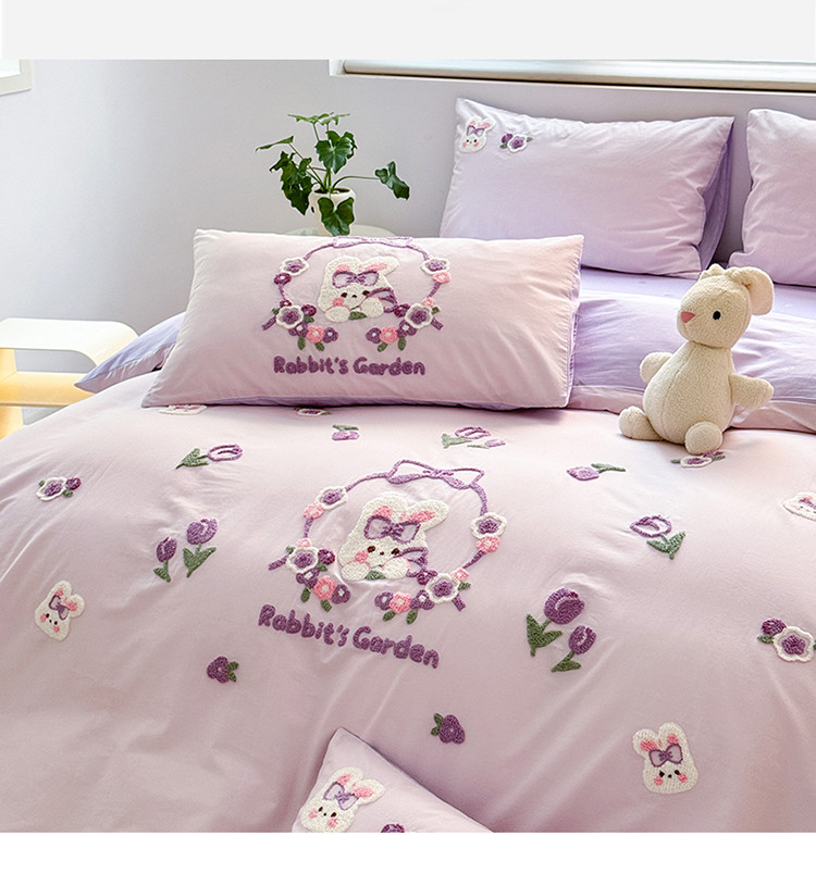 商品名称:眠屿 2023新款A类水洗棉毛巾绣四件套 兔子花园