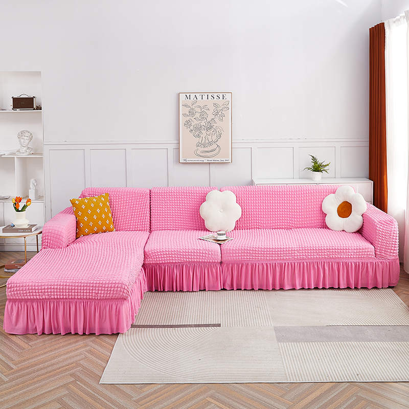 丝绮鹿 2023新款爆米花裙边贵妃沙发套 玫红