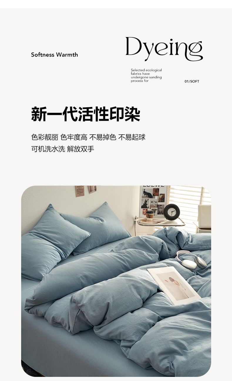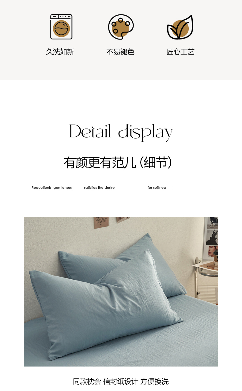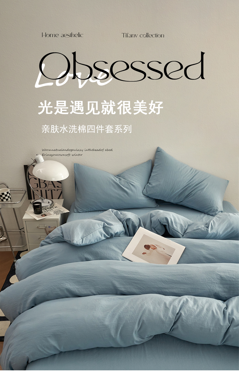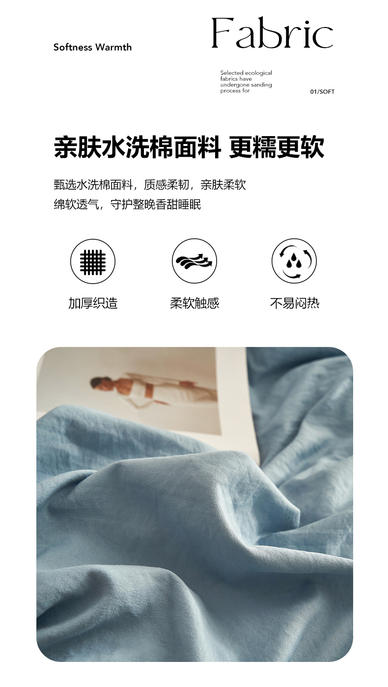 当前位置: 91家纺网 > 商品网购 > 床品套件 > 四件套 > 水洗棉四件套 > 卡迪熊家纺 2024新款ins风超柔褶皱亲肤磨毛水洗m四件套纯色系列 尼罗蓝