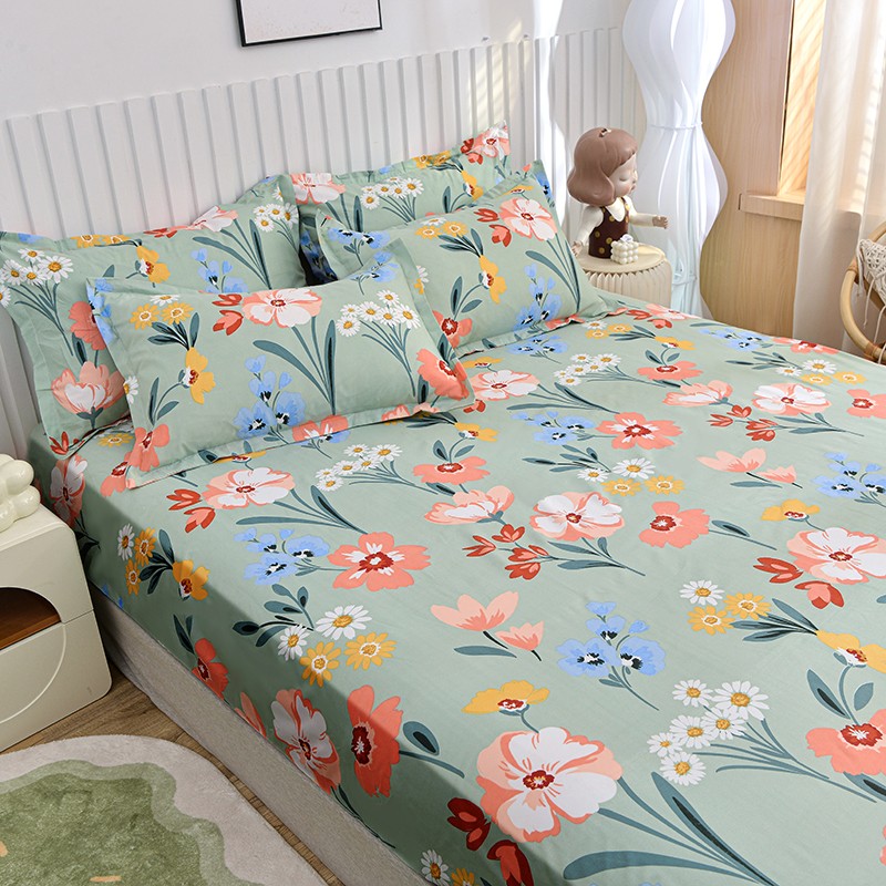 • 91家纺网 家纺一手货源 找家纺 小雨家纺 2026新款芦荟棉床笠 朝花夕拾绿