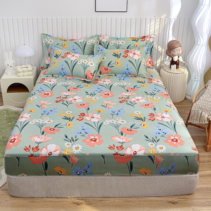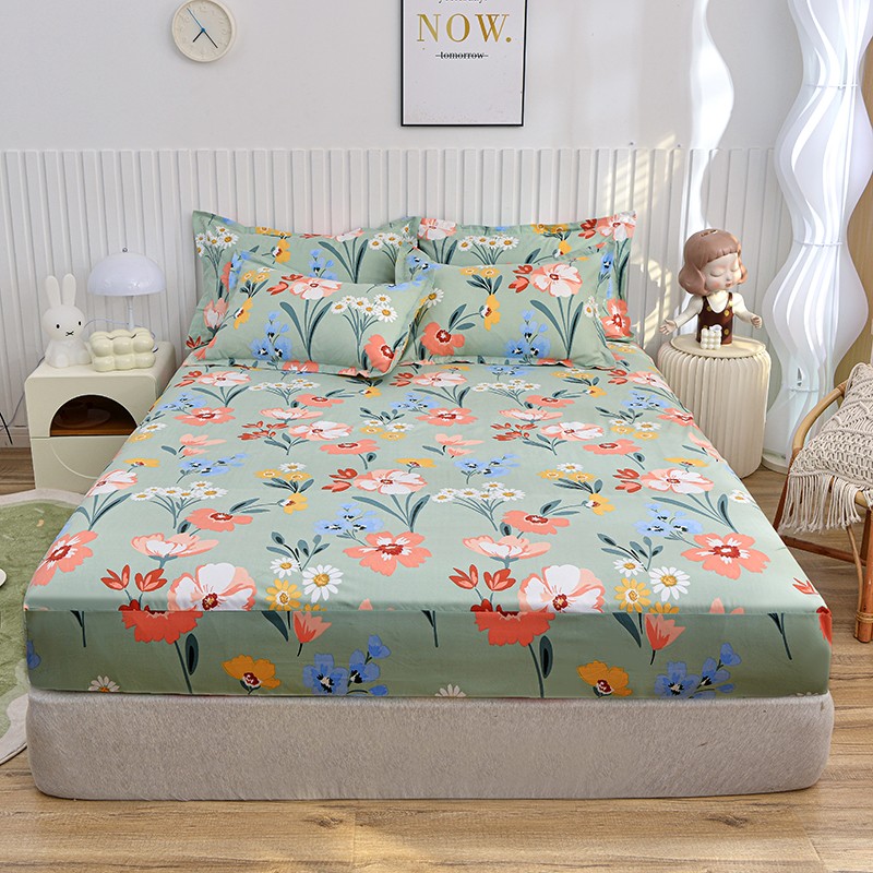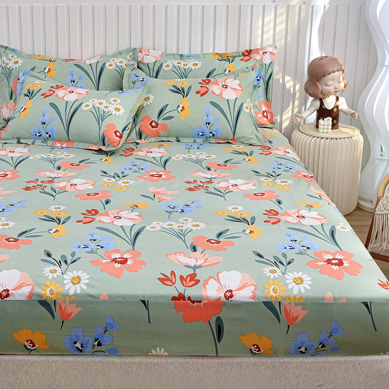小雨家纺 2026新款芦荟棉床笠 朝花夕拾绿