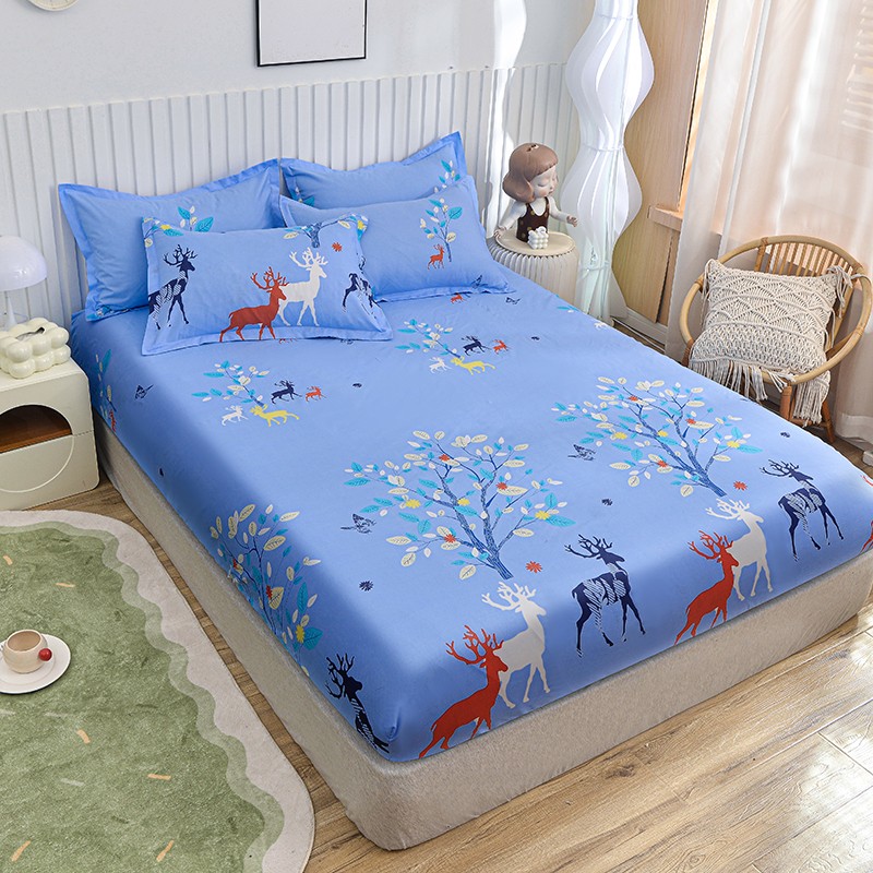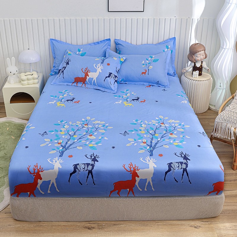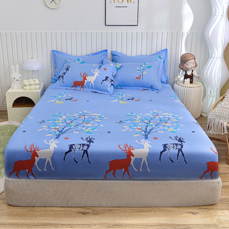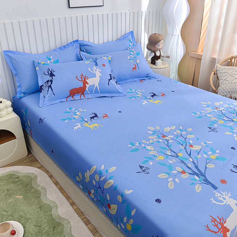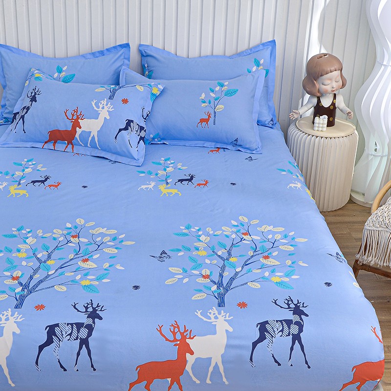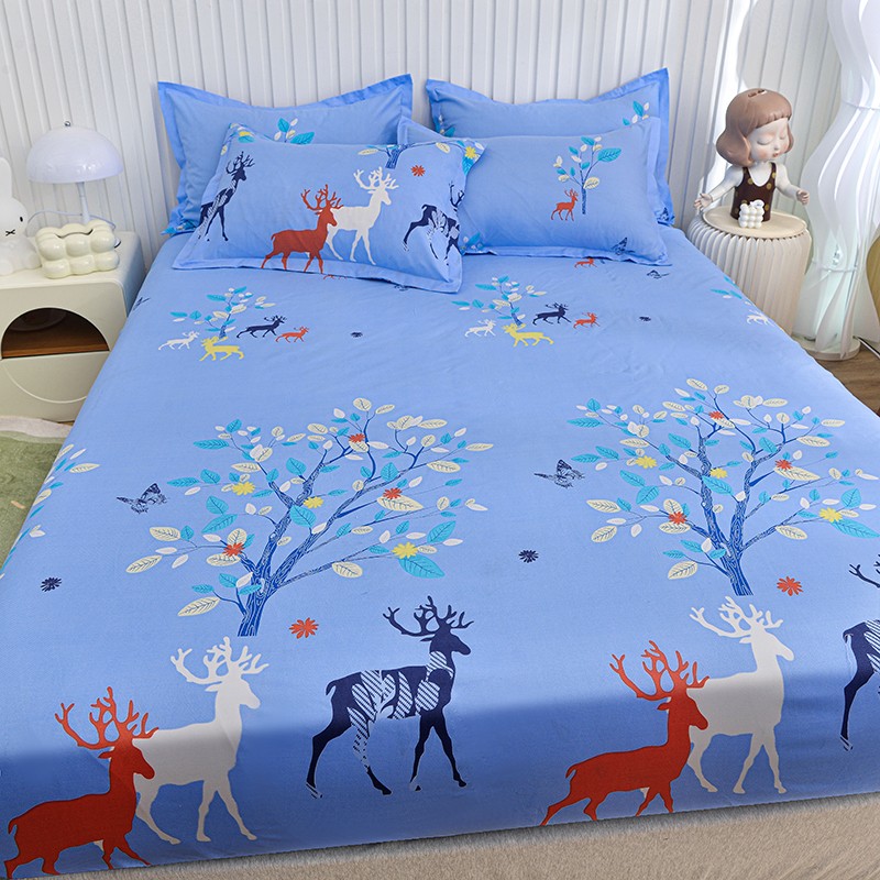 小雨家纺 2026新款芦荟棉床笠 麋鹿森林蓝
