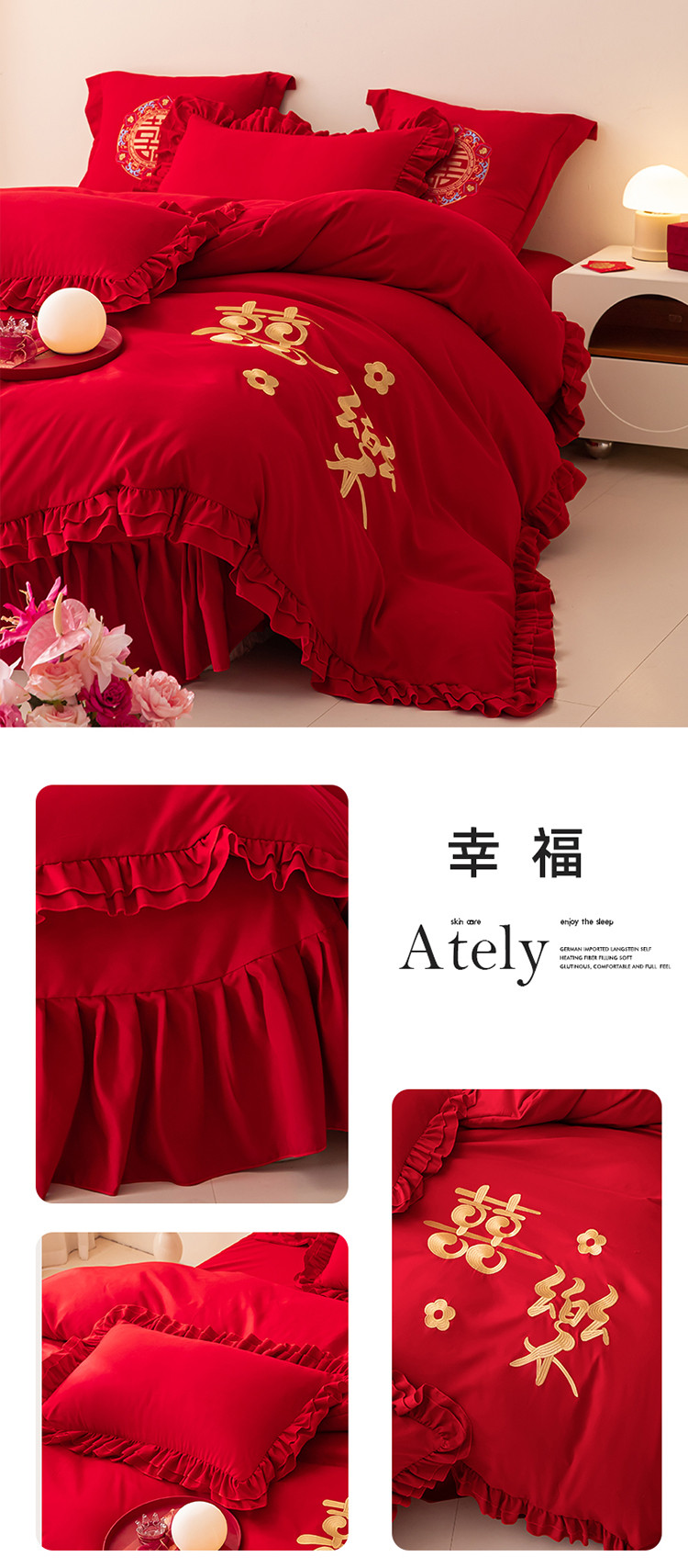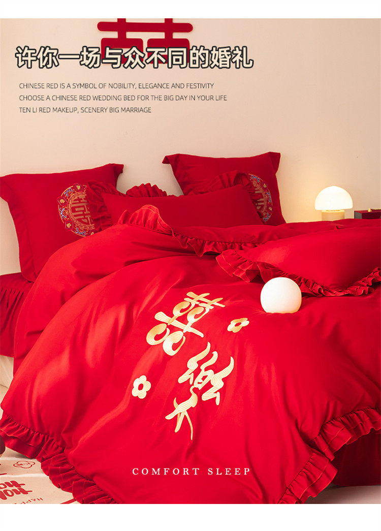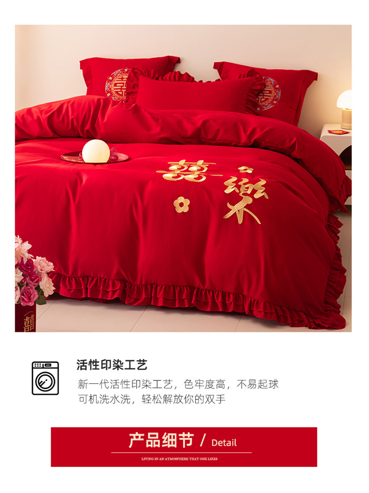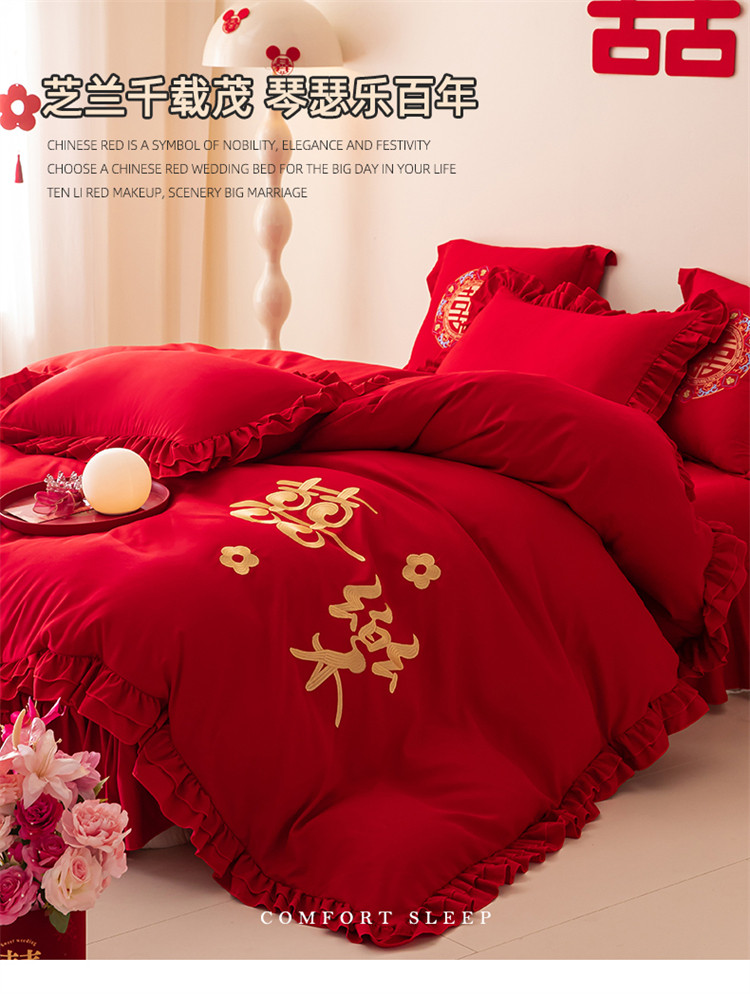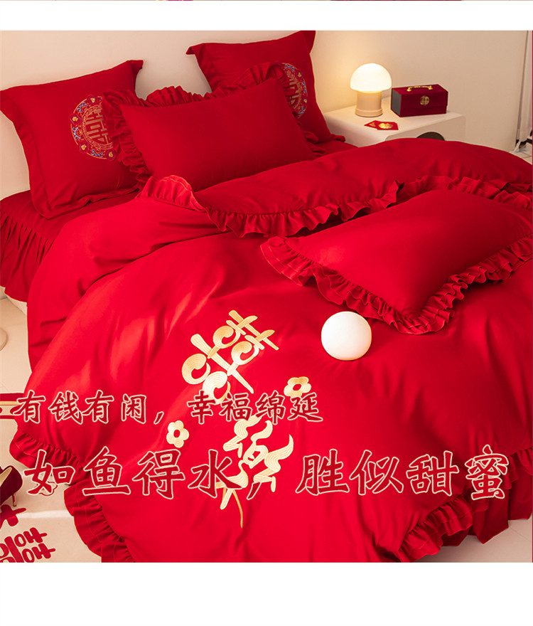 当前位置: 91家纺网 > 商品网购 > 床品套件 > 四件套 > 普通磨毛四件套 > 2025新款磨毛时尚花边款床裙婚庆四件套 花边款-幸福