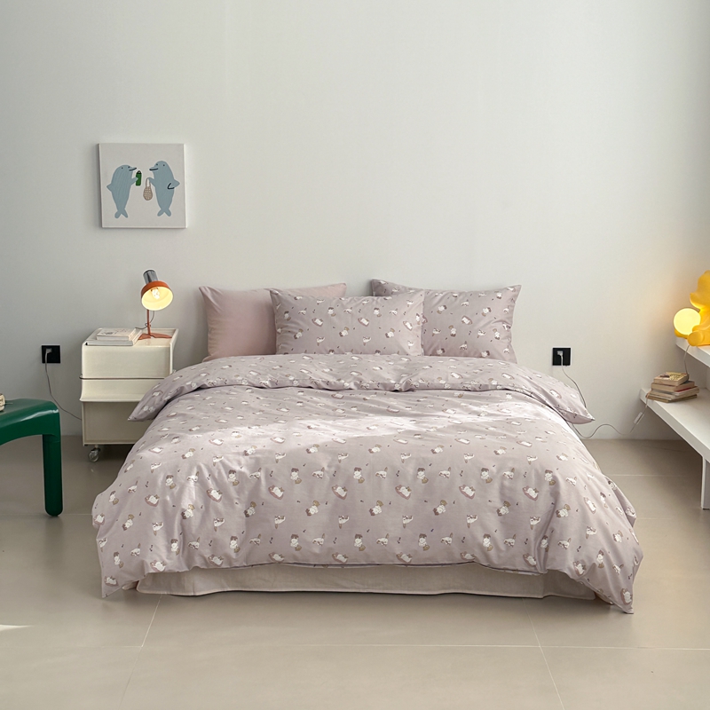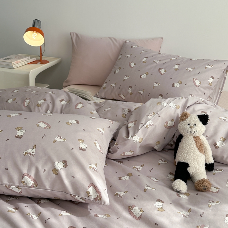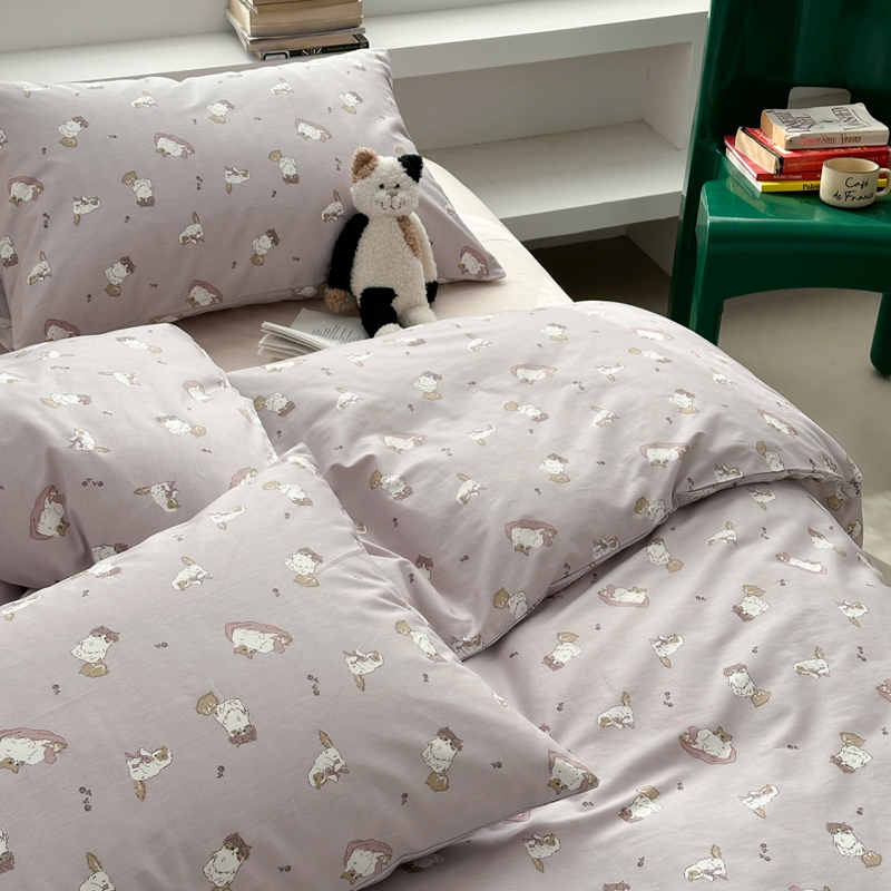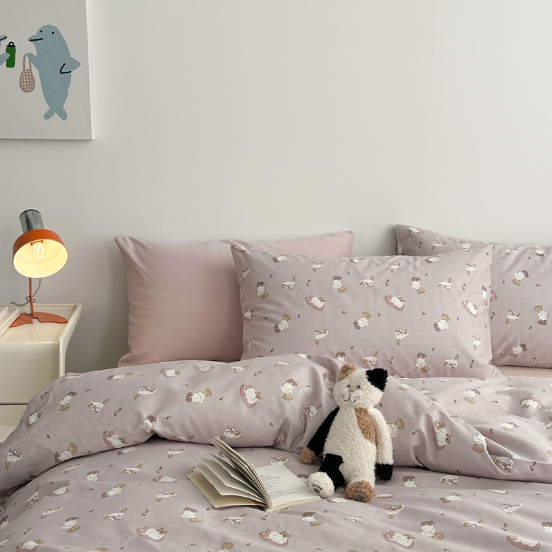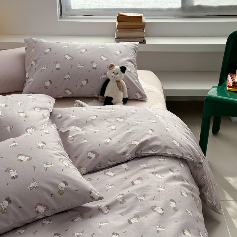 当前位置: 91家纺网 > 商品网购 > 床品套件 > 四件套 > 全棉普通四件套 > 棉眠 2024春季新款40支13070全棉卡通四件套 喵酱-紫