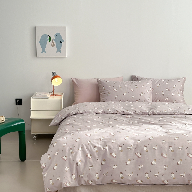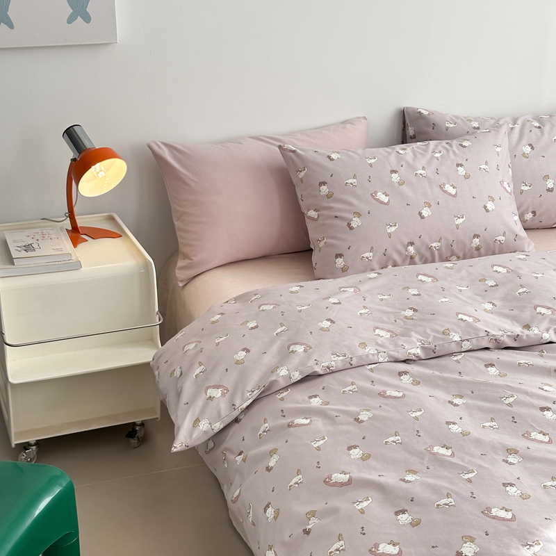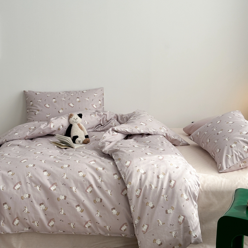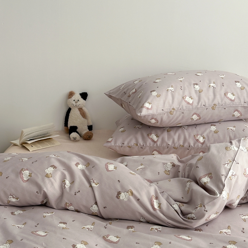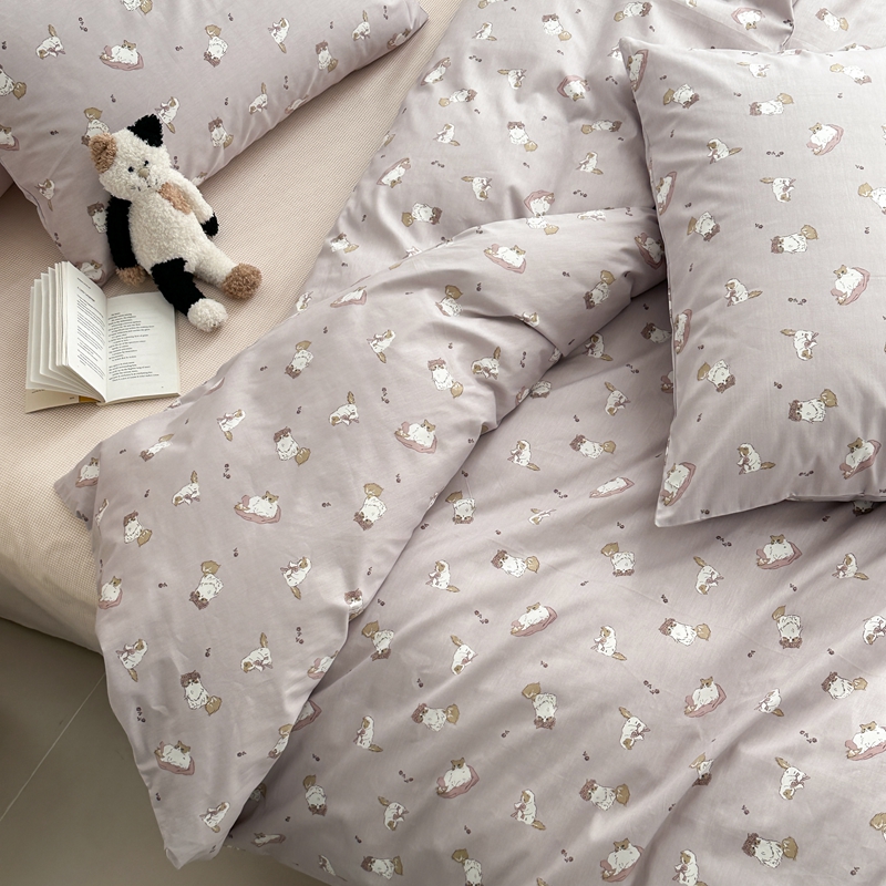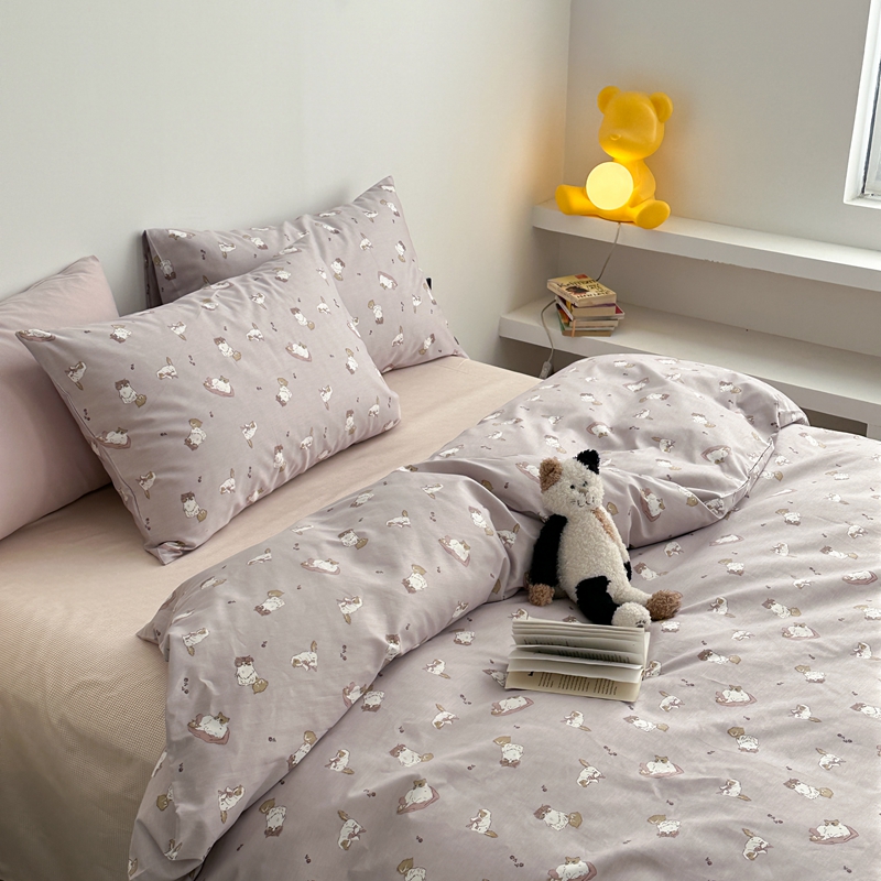 当前位置: 91家纺网 > 商品网购 > 床品套件 > 四件套 > 全棉普通四件套 > 棉眠 2024春季新款40支13070全棉卡通四件套 喵酱-紫
