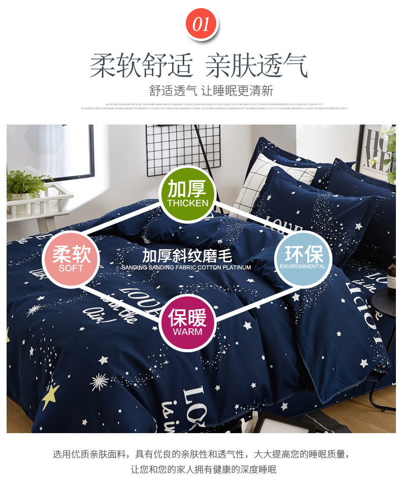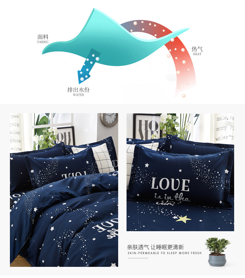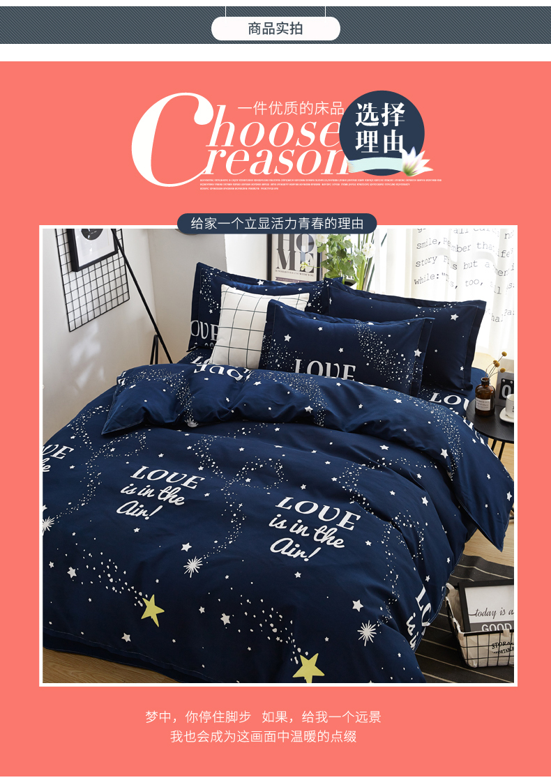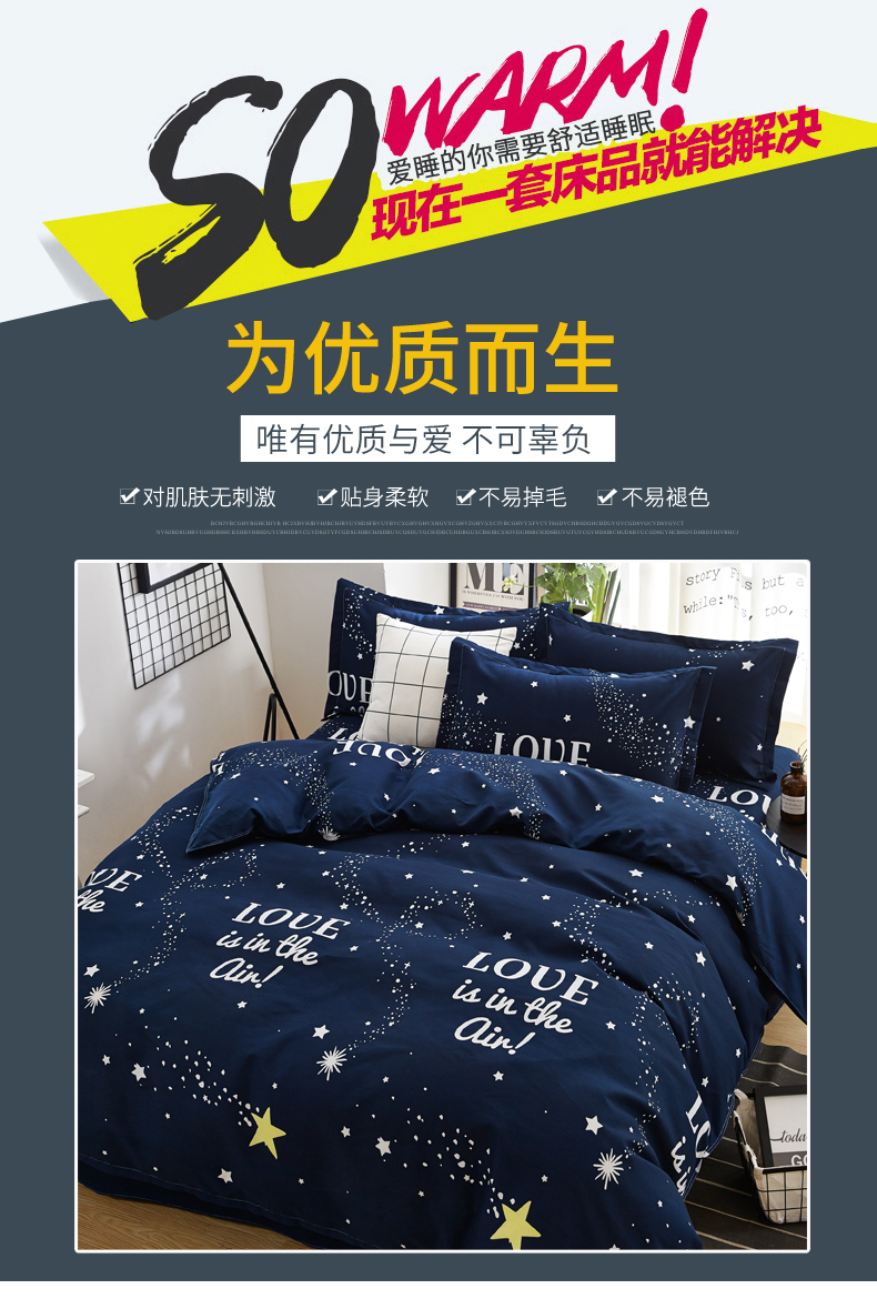商品名称:北部居 2024新款加厚化纤四件套 夜空love
