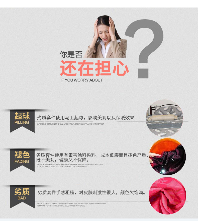 3、通州区市场监督局友情提醒,近期涉及到床上用品不褪色不掉毛不缩水的投诉和以世界知名品牌图案为面料的床品举报较多。请各商家自检自查,对照整改或进行下架处理。