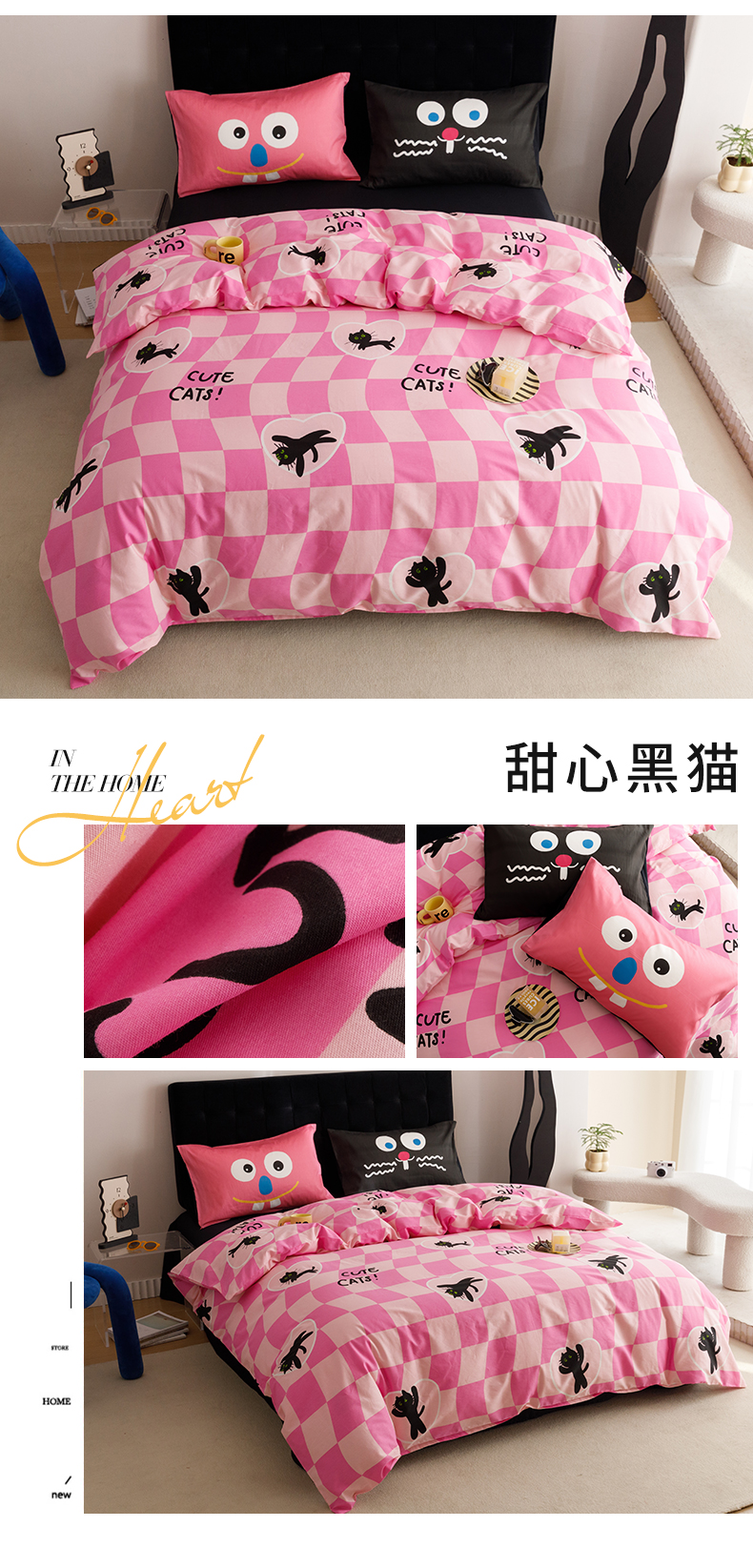 商品名称:珺柔家纺 2024年款13070全棉数码印花四件套 甜心黑猫
